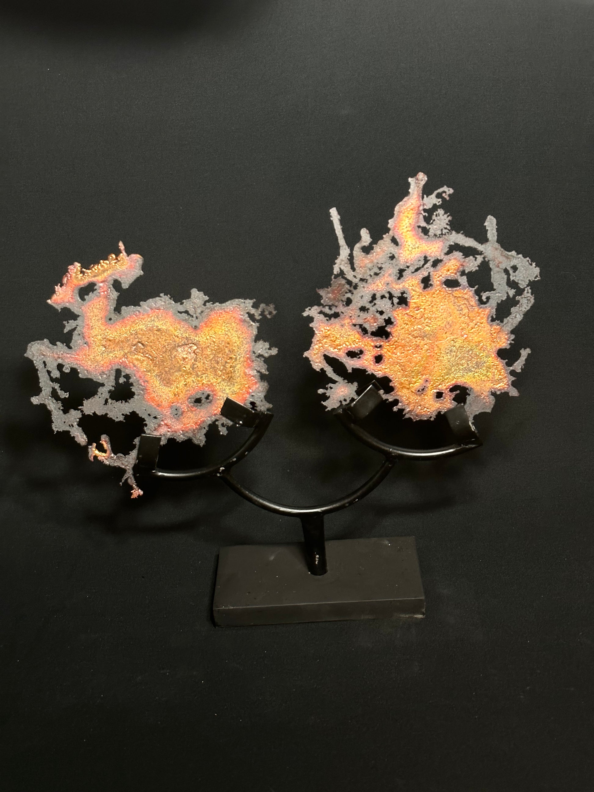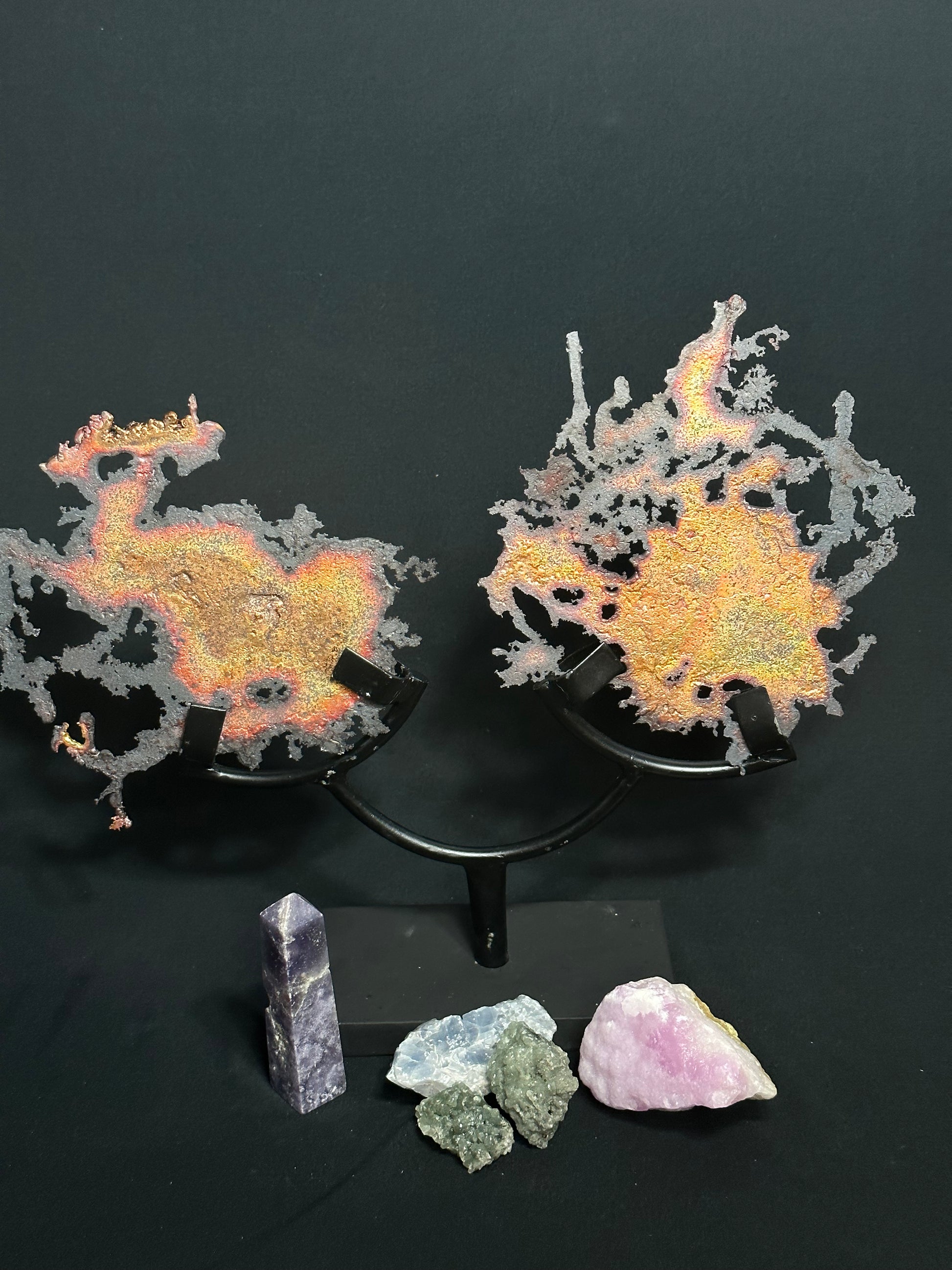 Splash Copper will look great pairing with our amethyst Cut Base, Towards, or even our Megalodon teeth! It complements everything! It's also just perfect for framing on it's own or to display in a stand.