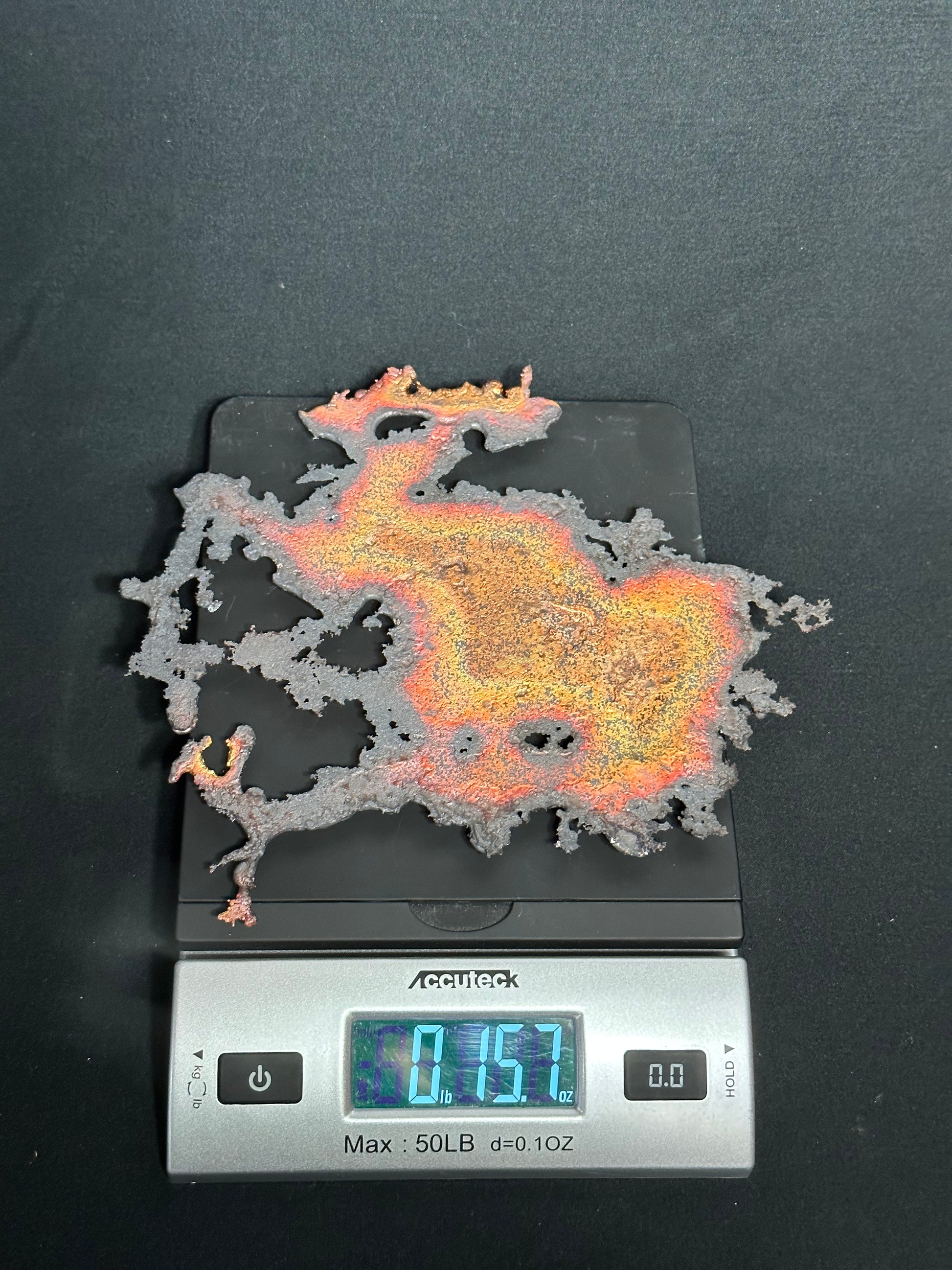 This spectacular specimen is pure copper and a unique piece of art. The bright red and orange coloring really pops!