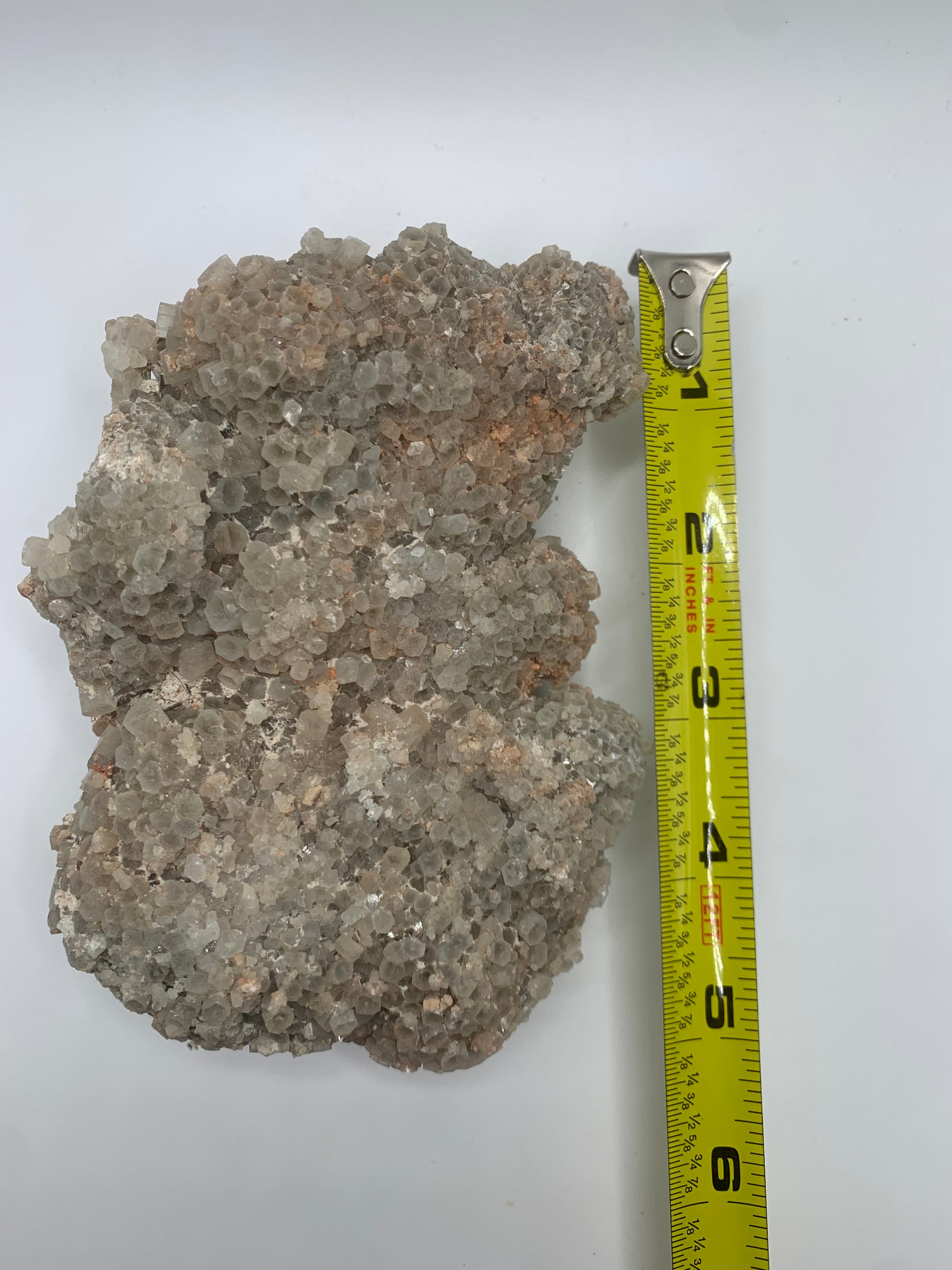 This Aragonite Cluster is 5 inches long. The translucent hexagon crystals on this specimen are easy on the eyes! Pair this with our blue aragonite, or our Azurmalachite, for a beautiful array on the coffee table!