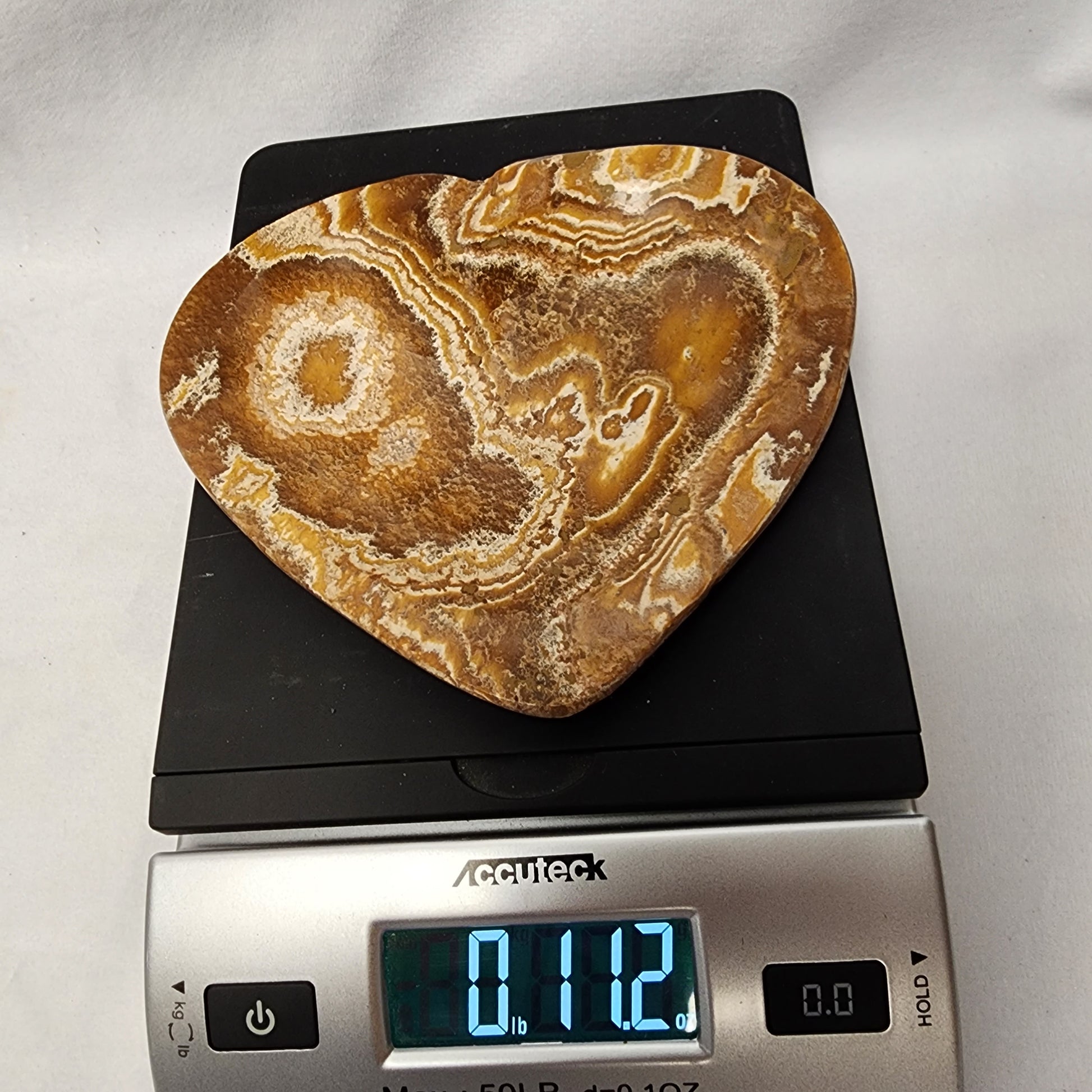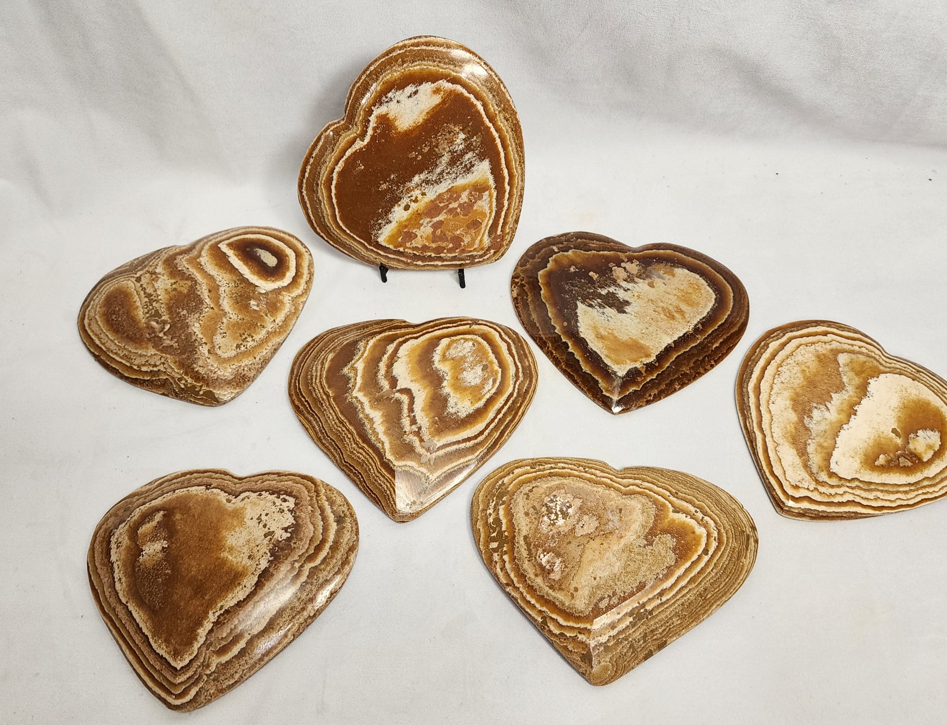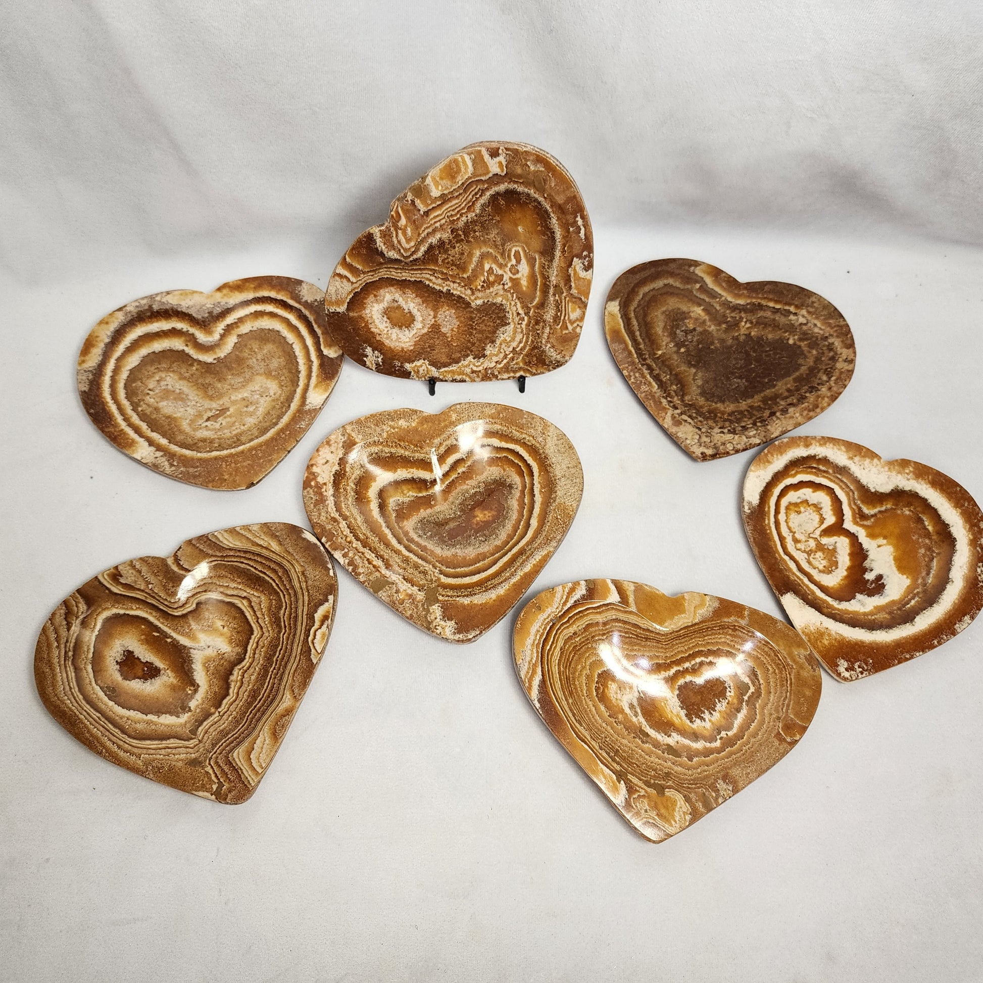 These Aragonite plates have been polished and formed into their heart shape each with their own unique designs!