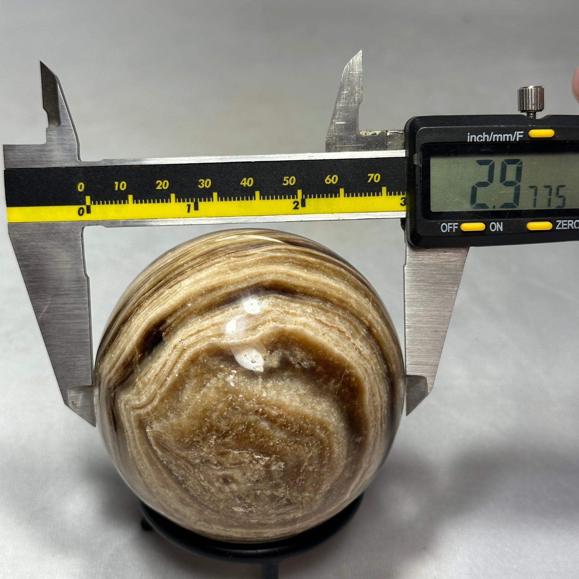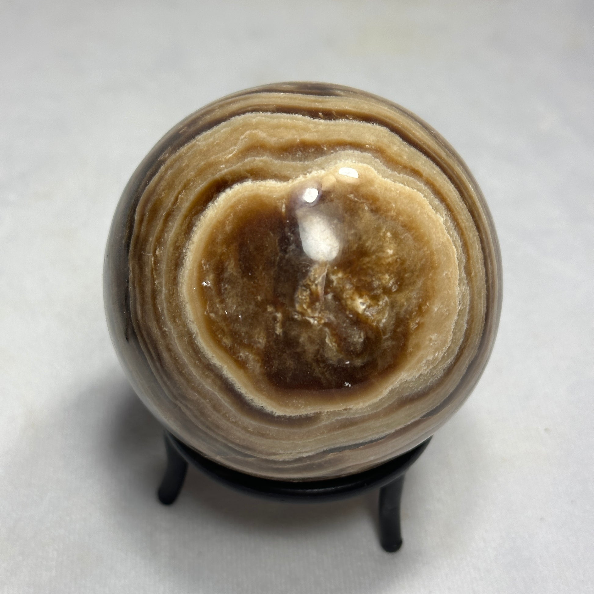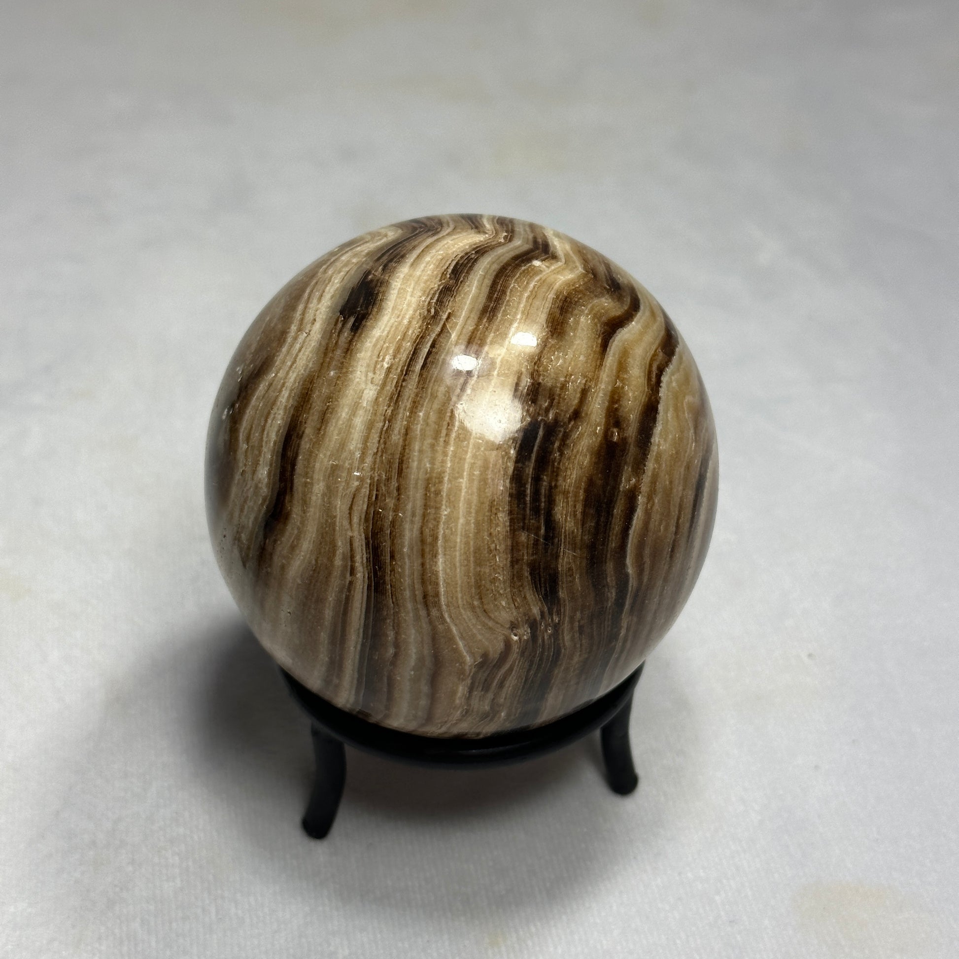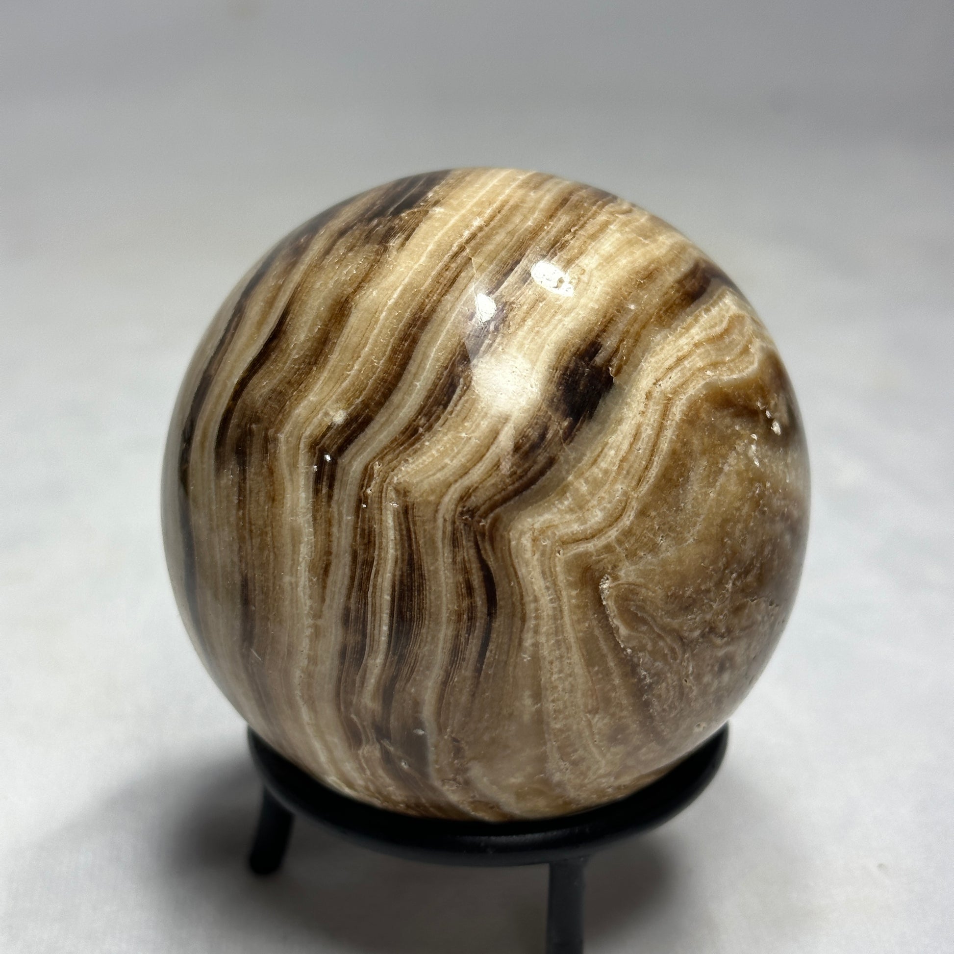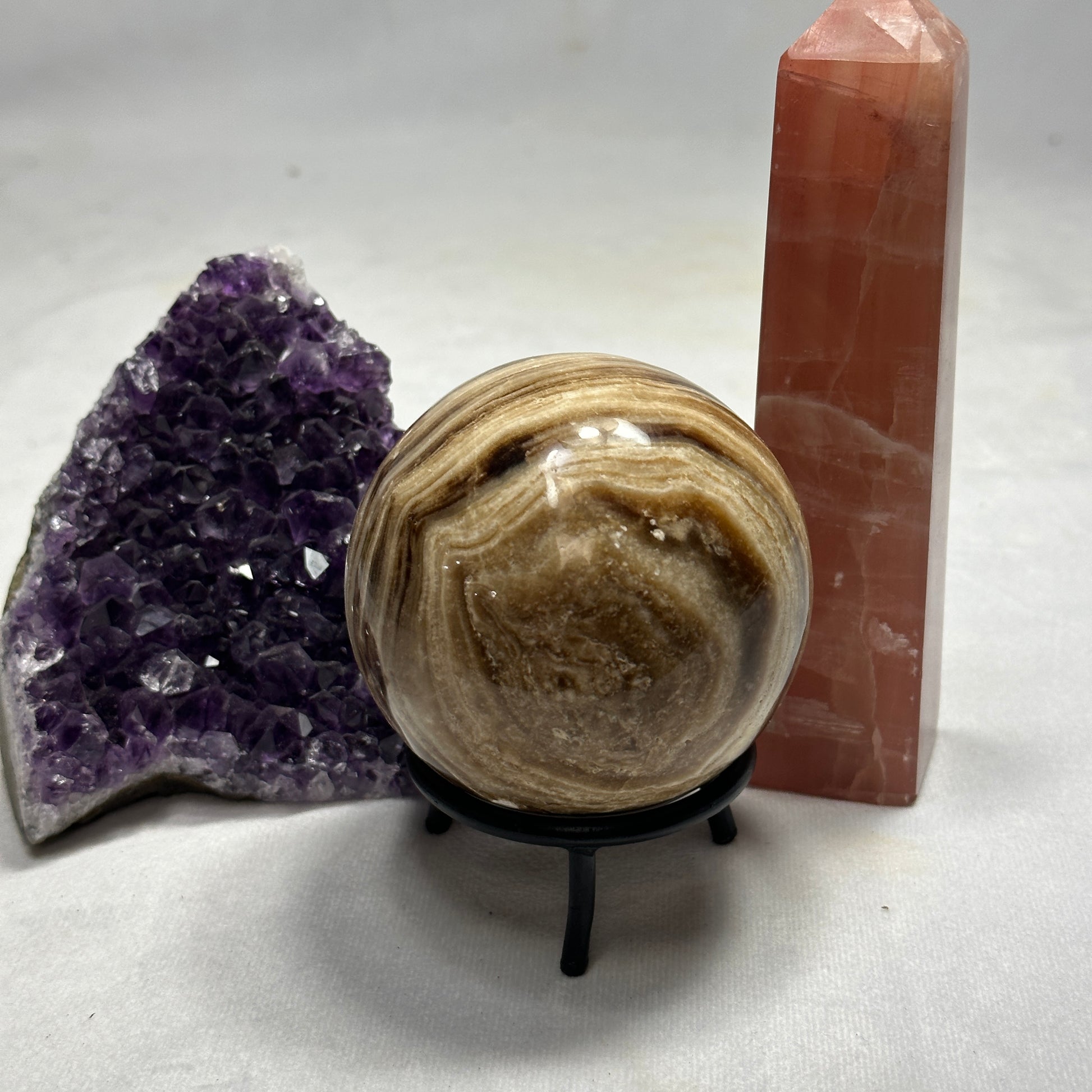 This Aragonite Sphere is perfect for adding an earthy, elegant look to the home! Just look at the gorgeous bands of brown of this Sphere! It looks perfect with our Amethysts and Calcite Towers also.