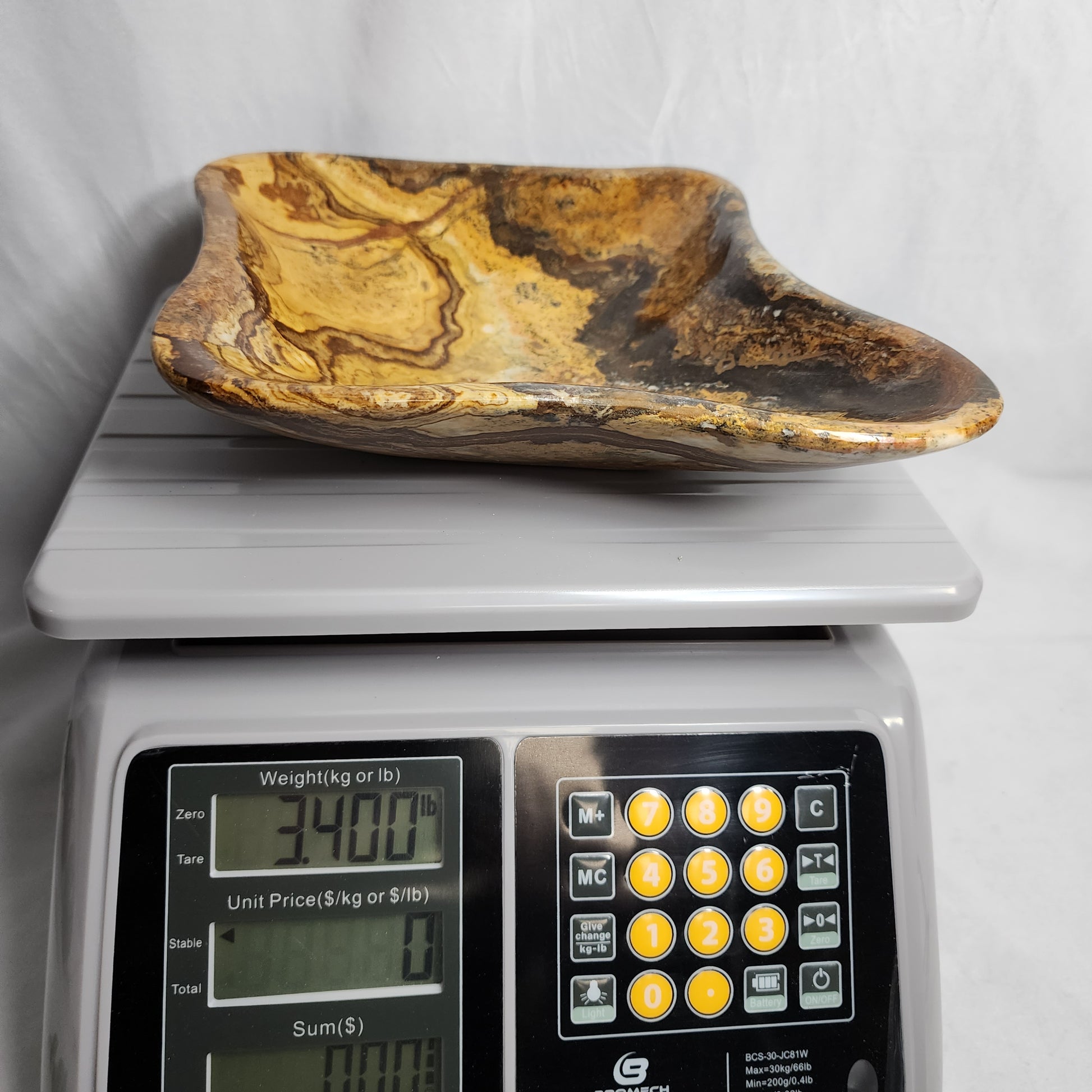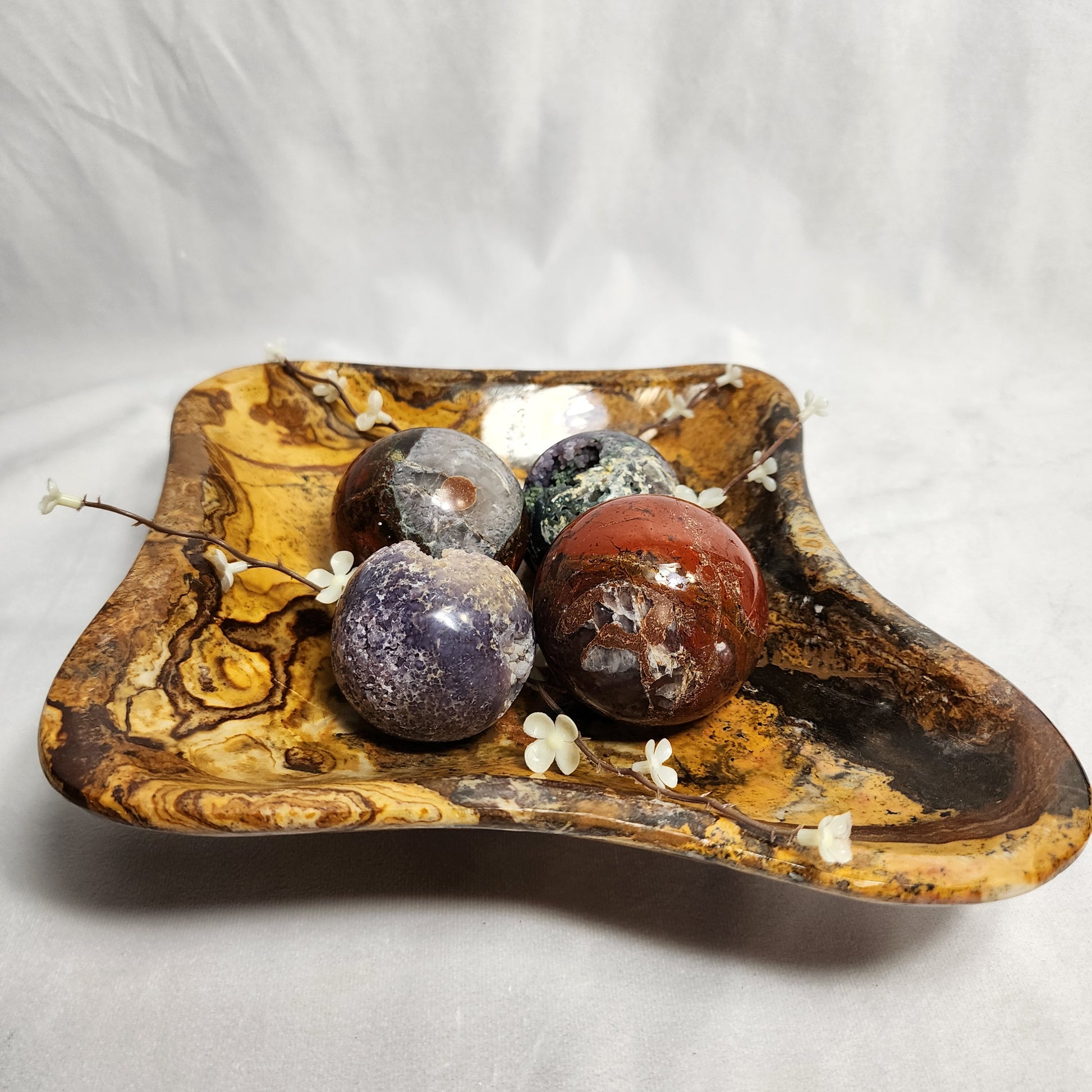 Needing new décor? This Aragonite bowl is the answer! Just look at the gorgeous brown shades, the curves and depth is perfect for our Spheres!