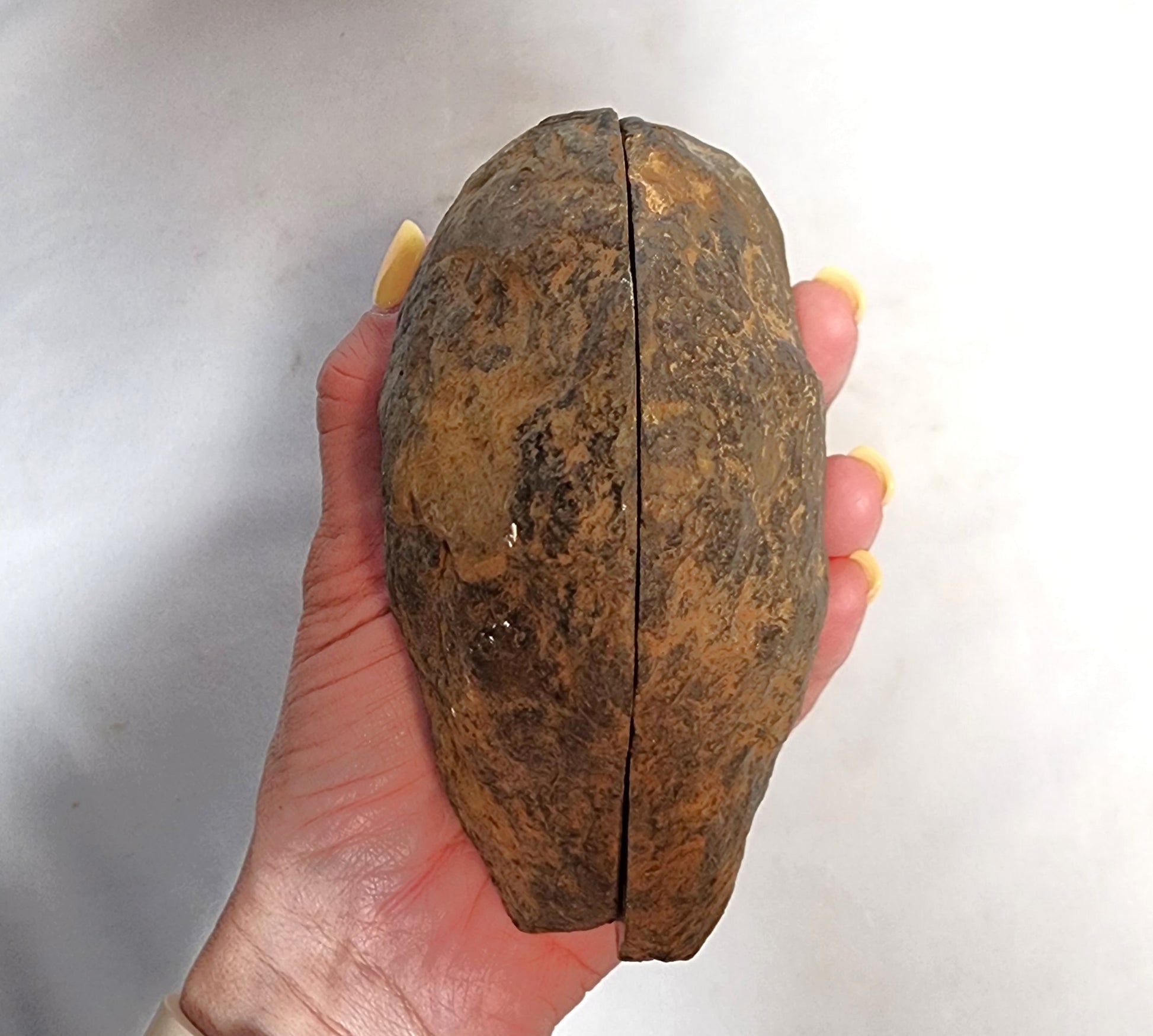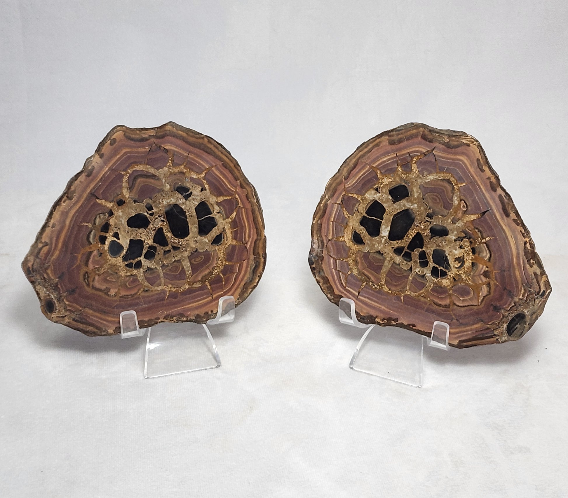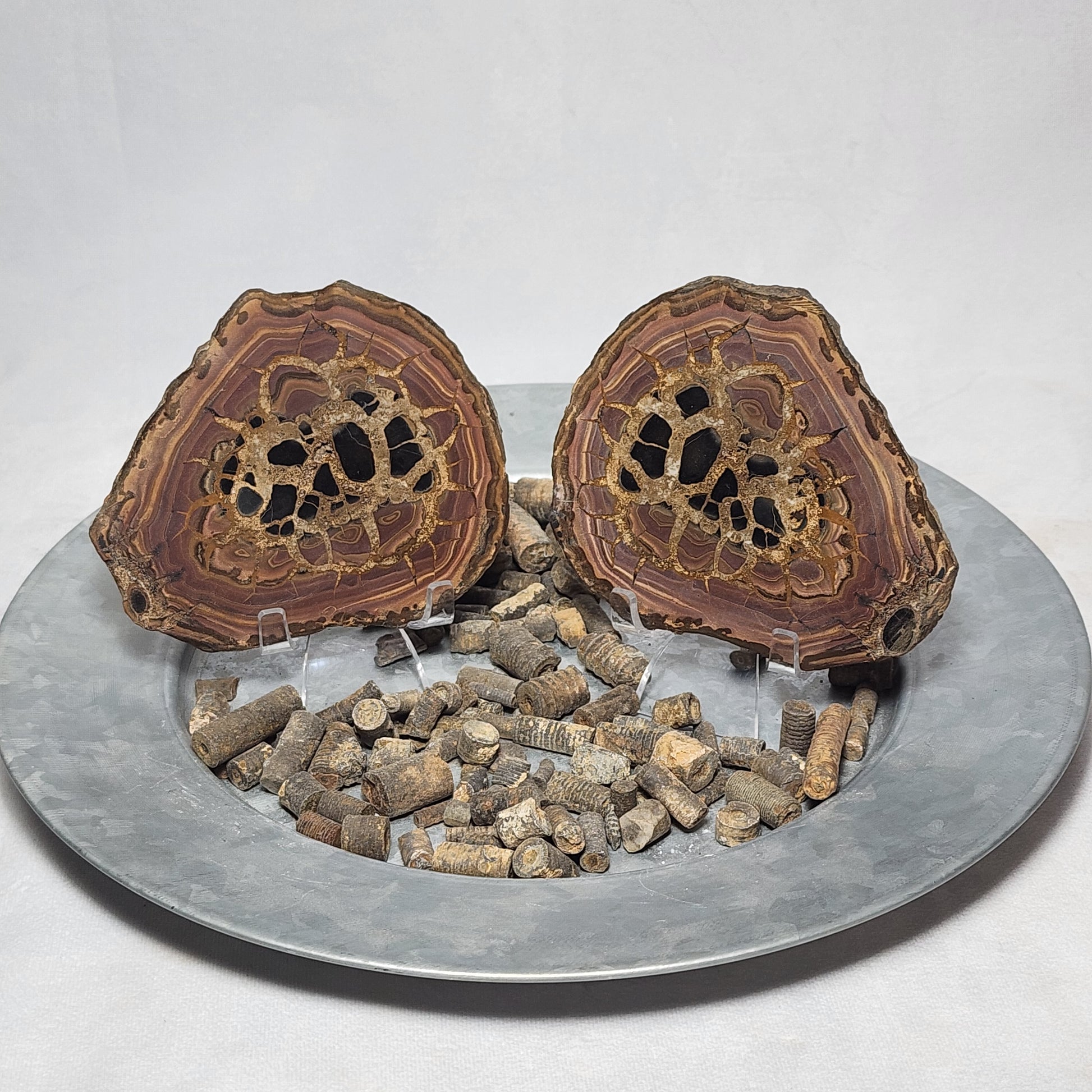 Split Polished Septarian Nodules make a very interesting display piece! Display them side by side for a great conversation starter! Pair with our Selenite Lamps, Aragonite bowls or even our Crinoids for a gorgeous display!