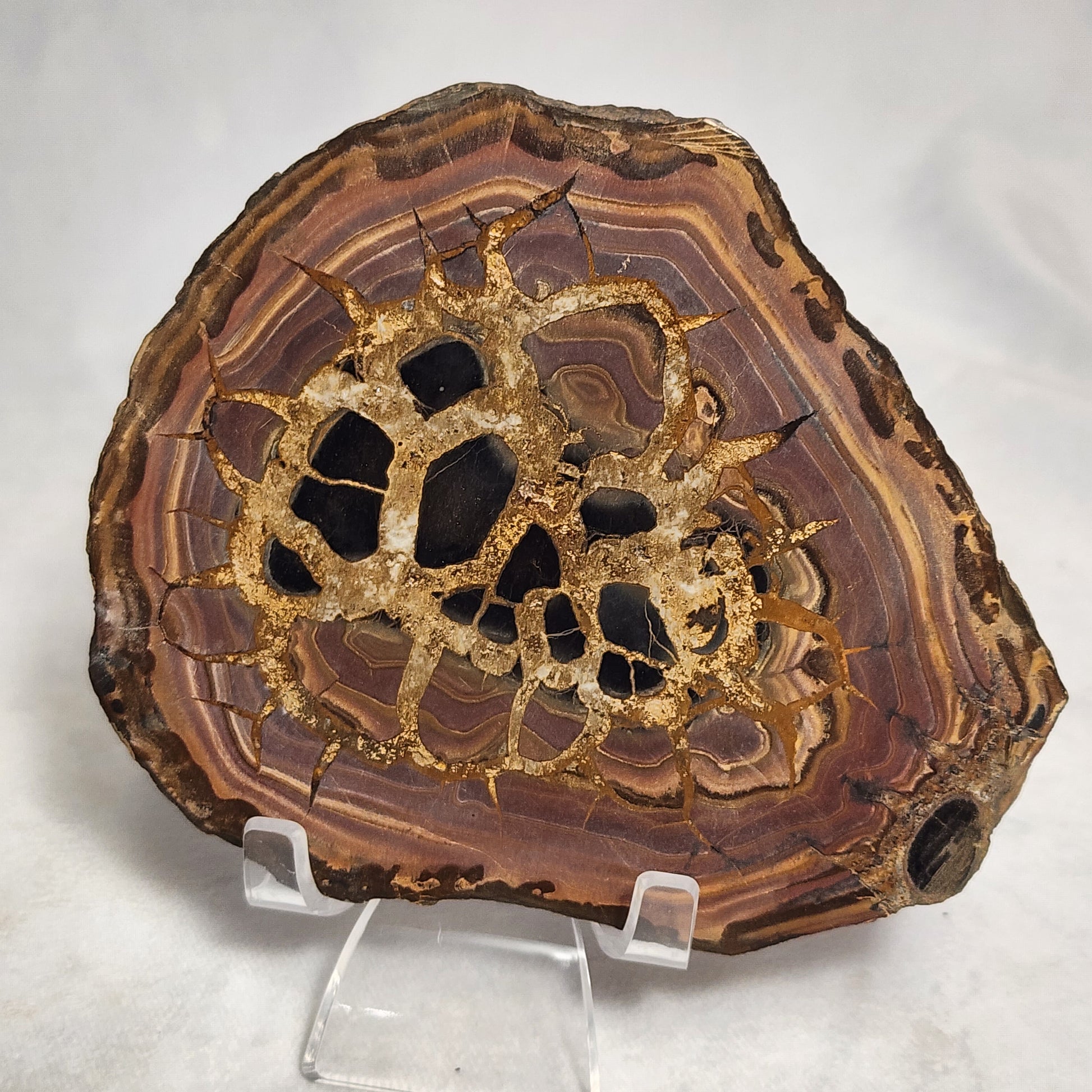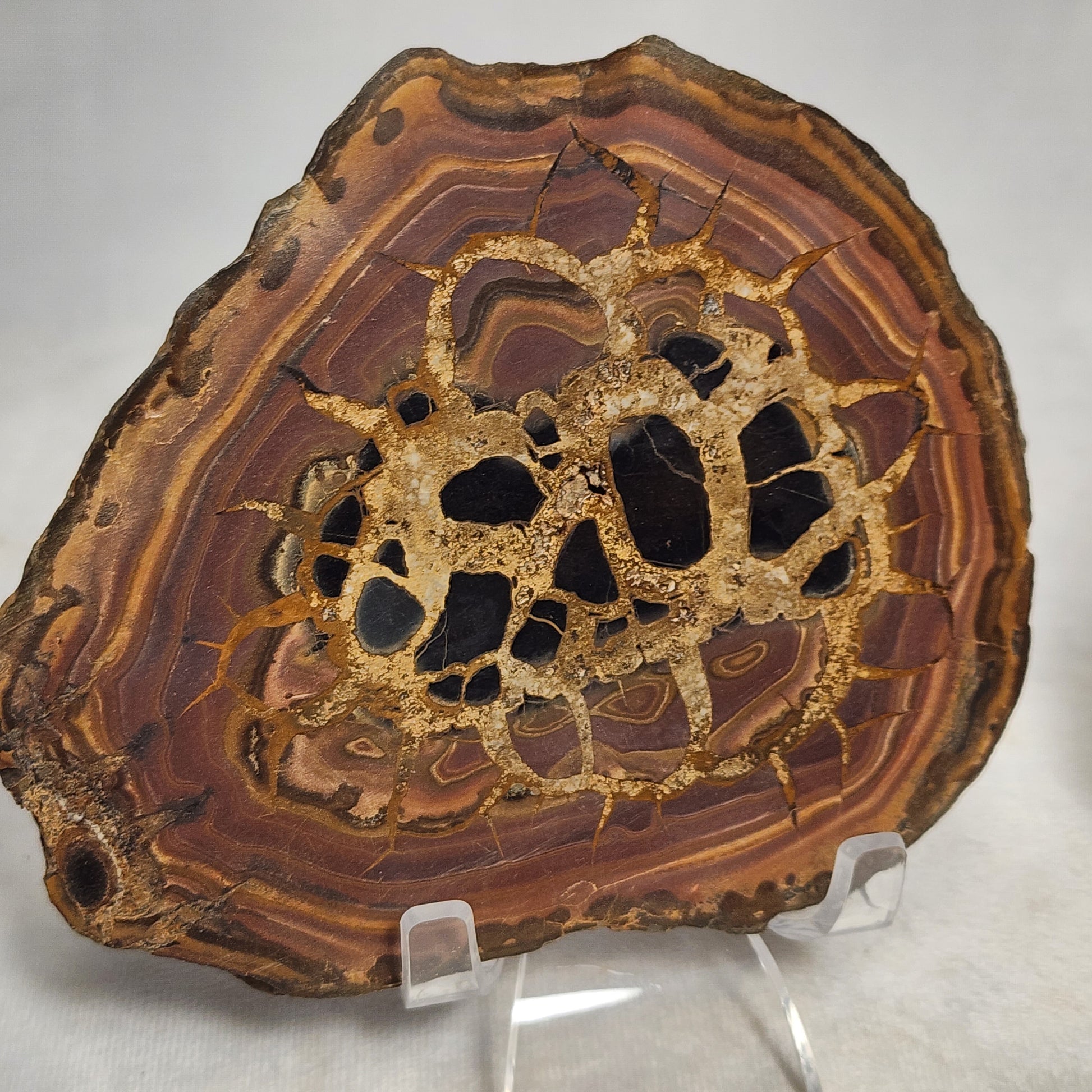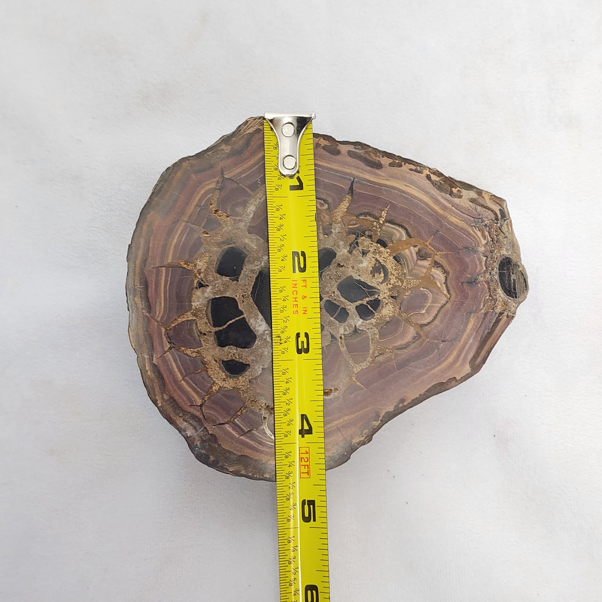 Split Polished Septarian Nodules make a very interesting display piece! Display them side by side for a great conversation starter! Pair with our Selenite Lamps, Aragonite bowls or even our Crinoids for a gorgeous display!