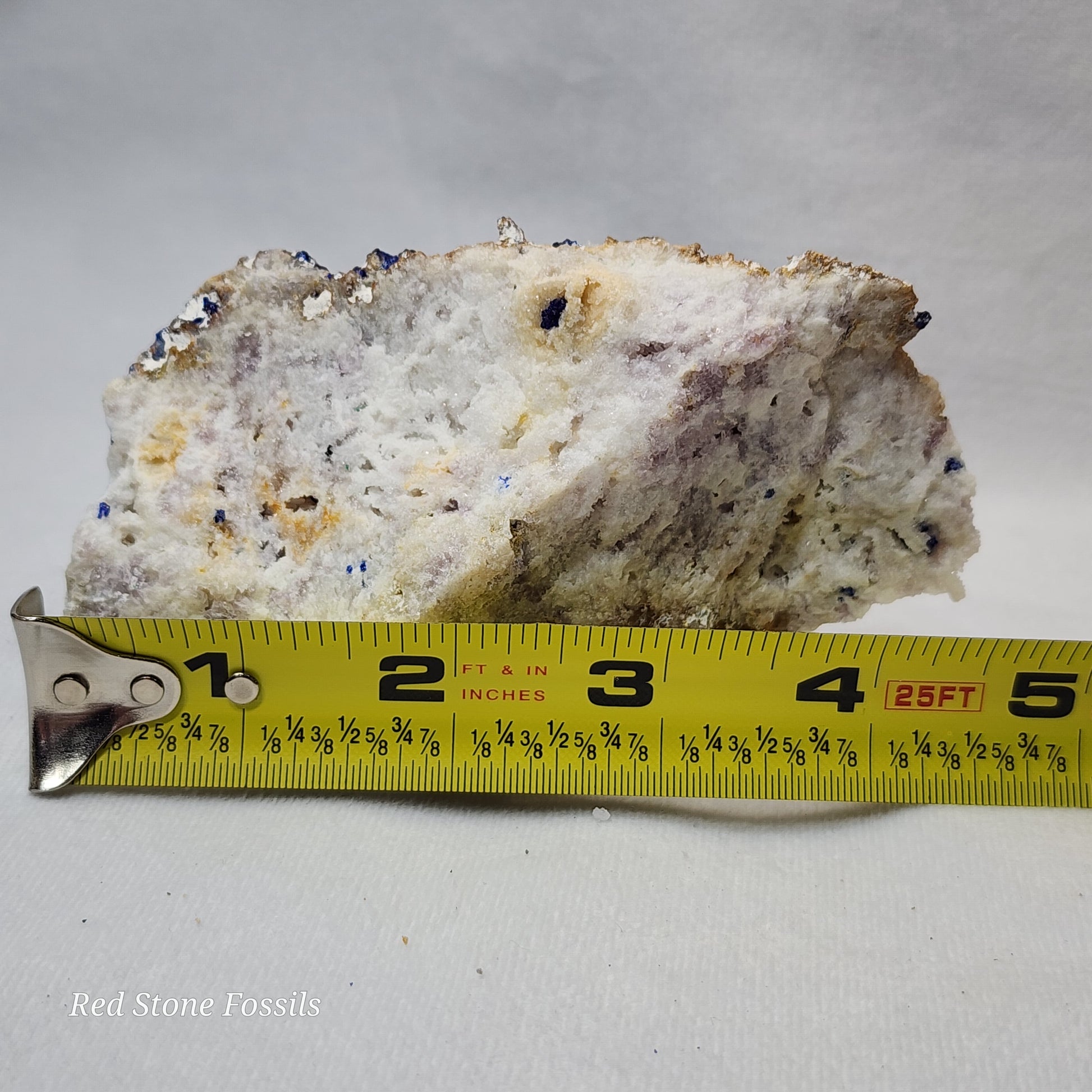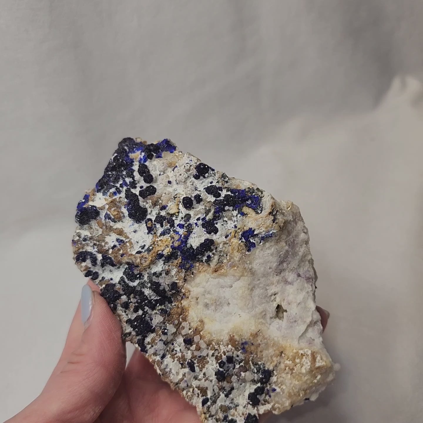 This particular specimen has gorgeous, sparkling blue crystals along with other minerals covering this piece. Every part of this specimen is stunning to behold! Pair this beauty with our Moroccan Sea Urchin for a show stopping display! (ask us for a bundle deal!)