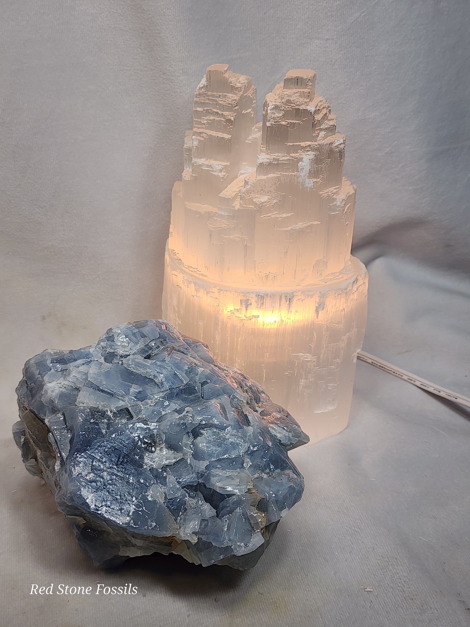 Each aspect is unique, with its natural texture and color variations that highlight the authentic charm. Whether displayed on a shelf alone or paired with our Selenite Lamp, this calcite offers both visual appeal and a calming scene.