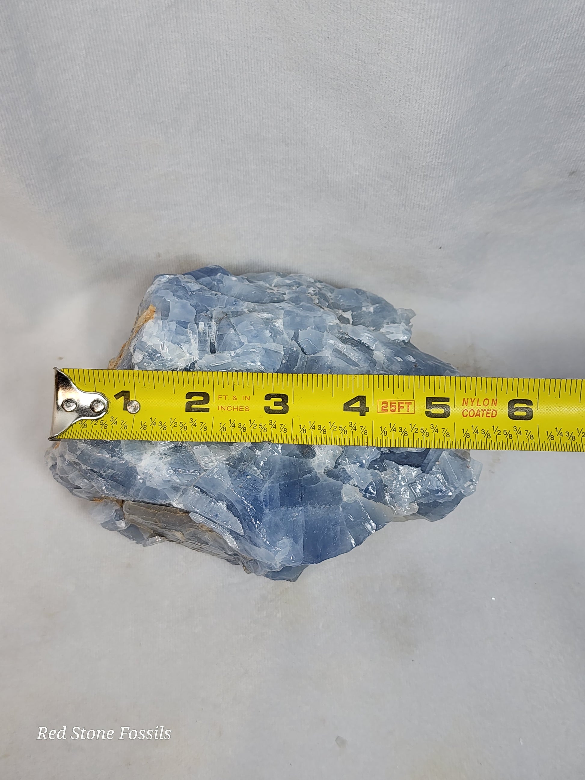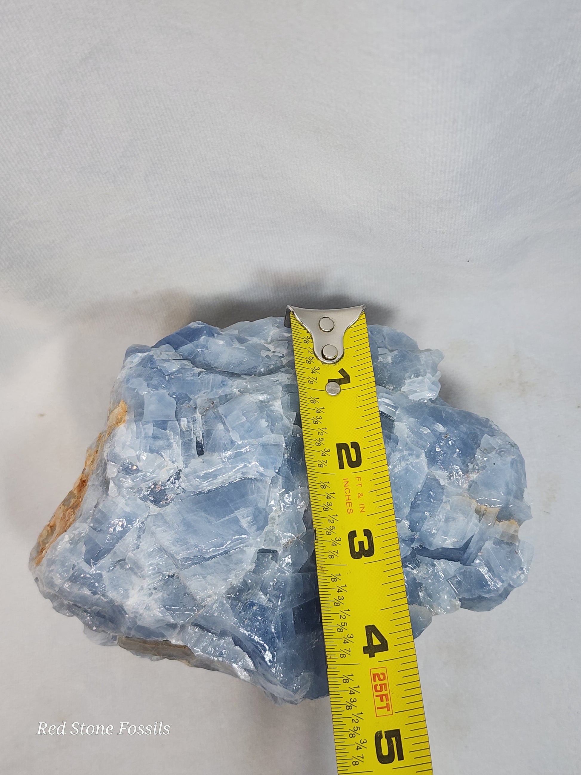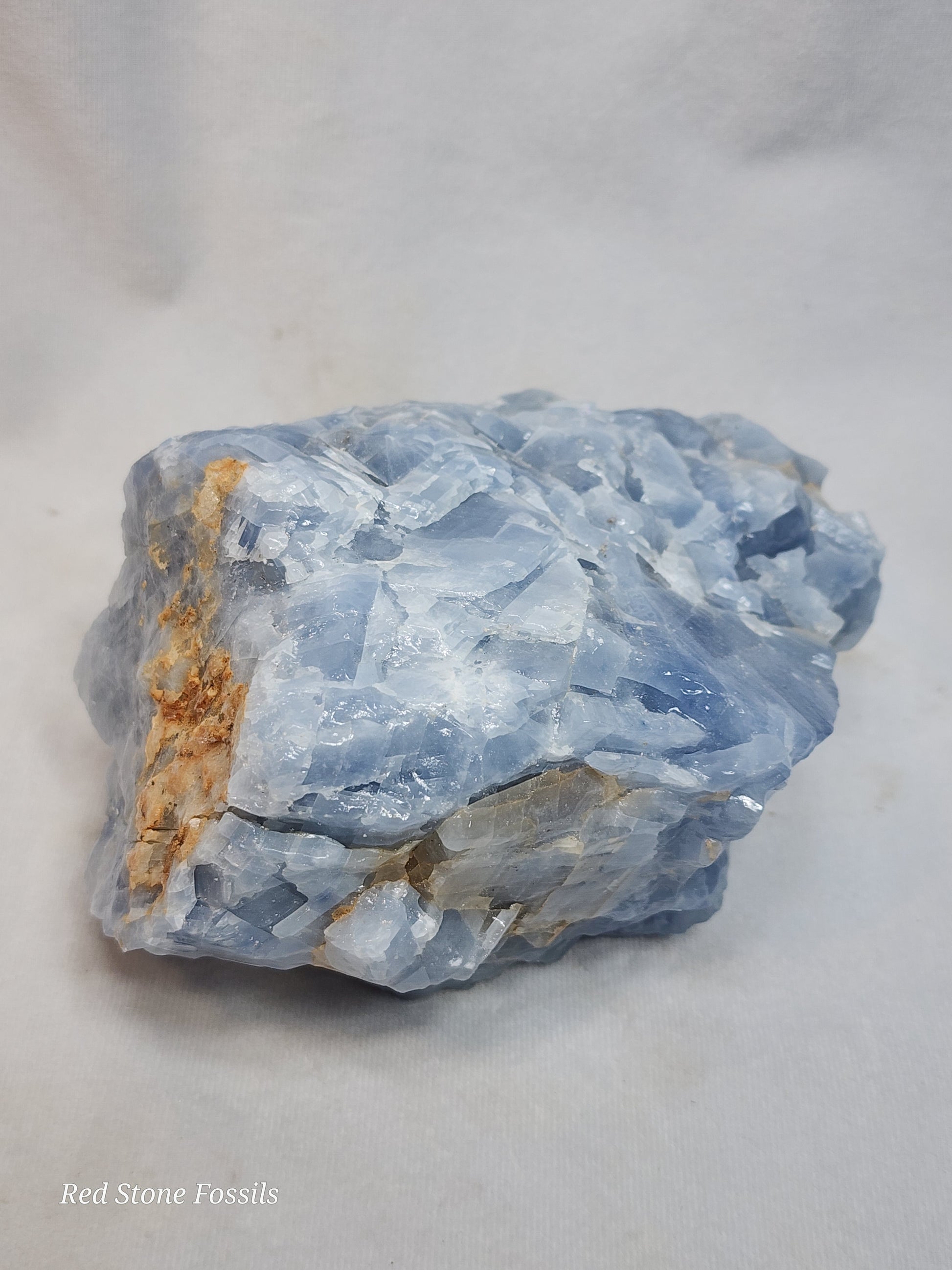 This striking blue calcite chunk showcases dreamy shades of soft sky blue to a deep blue and white with natural brown mineral inclusions and has a soothing, ocean-like quality that adds depth and warmth.