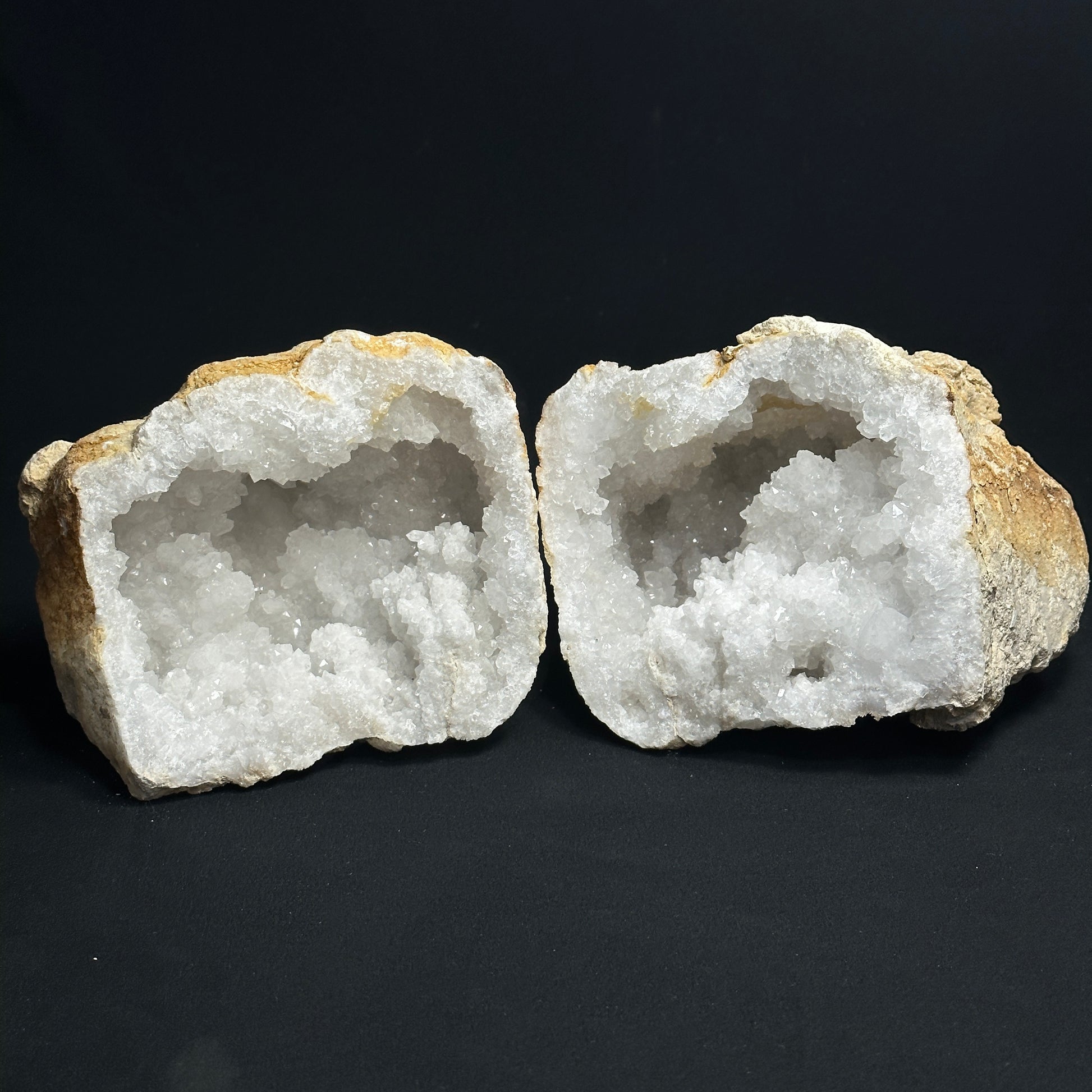 This gorgeous geode pair is split to show the sparkling crystals inside!