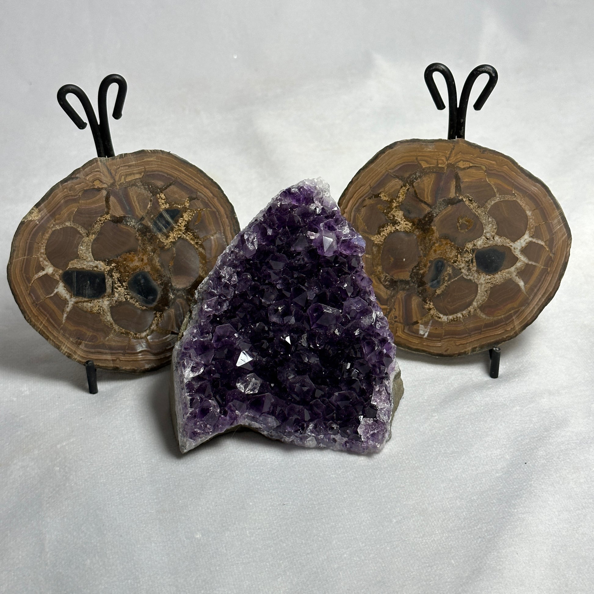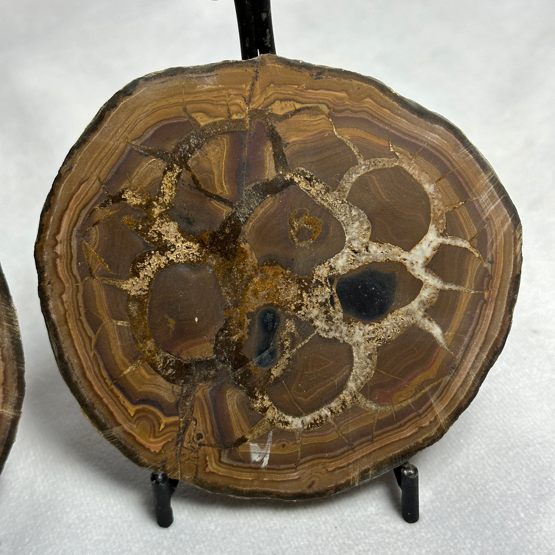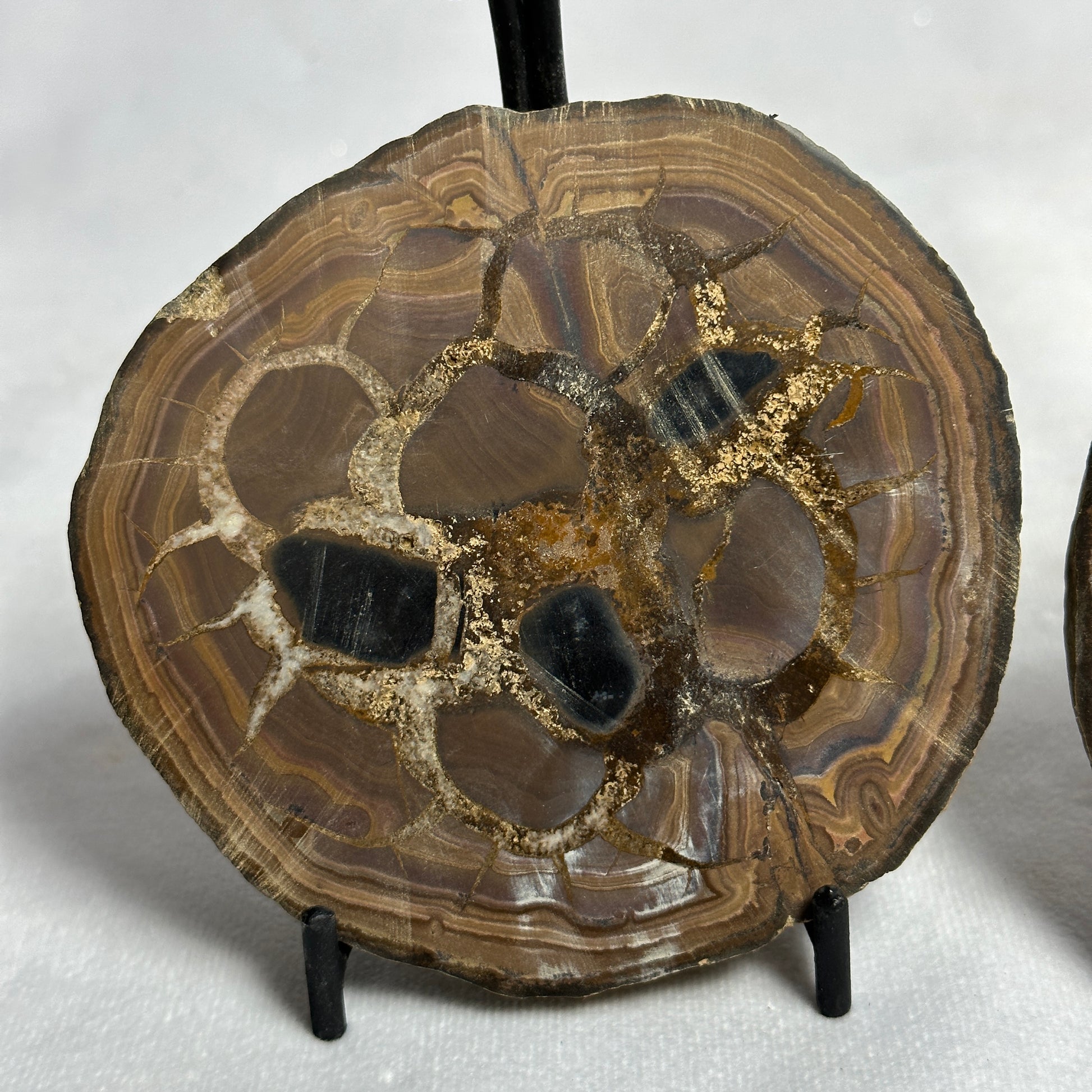 Split Polished Septarian Nodules make a very interesting display piece! Display them side by side for a great conversation starter! Pair with our Agate Spheres for a gorgeous display!