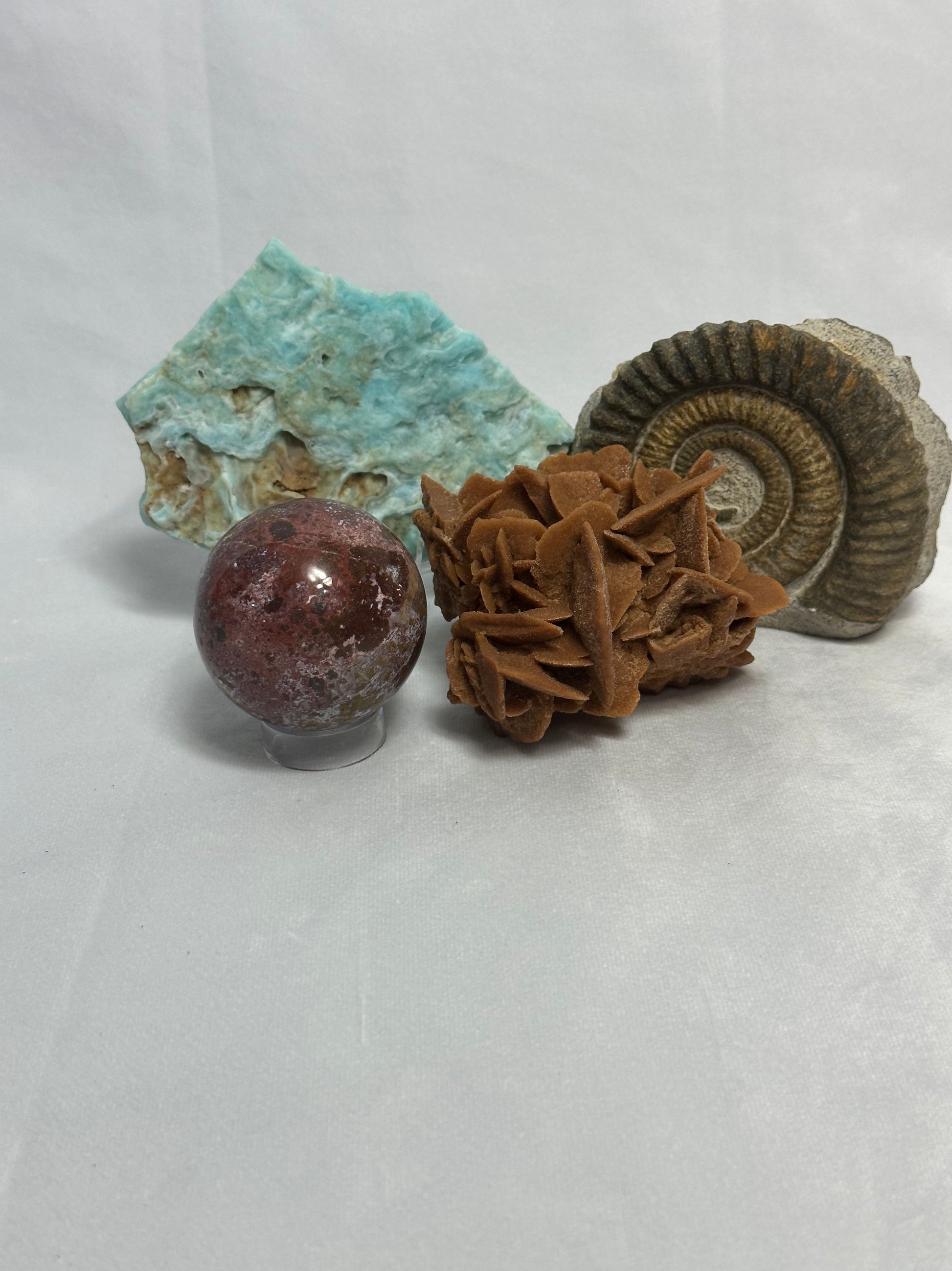 Desert Roses are a form of gypsum that, when sand particles become embedded in it form the rose shaped crystal "petals".