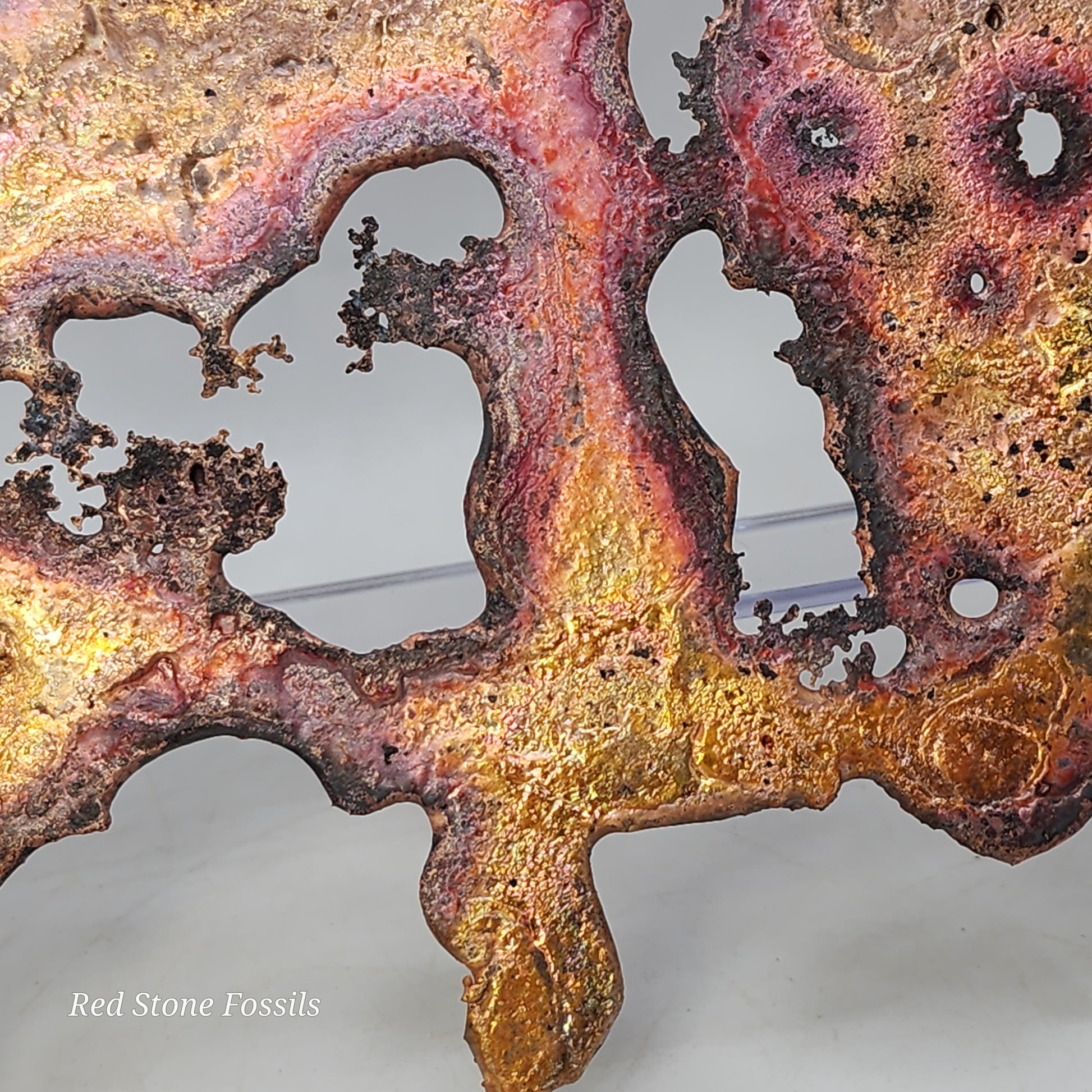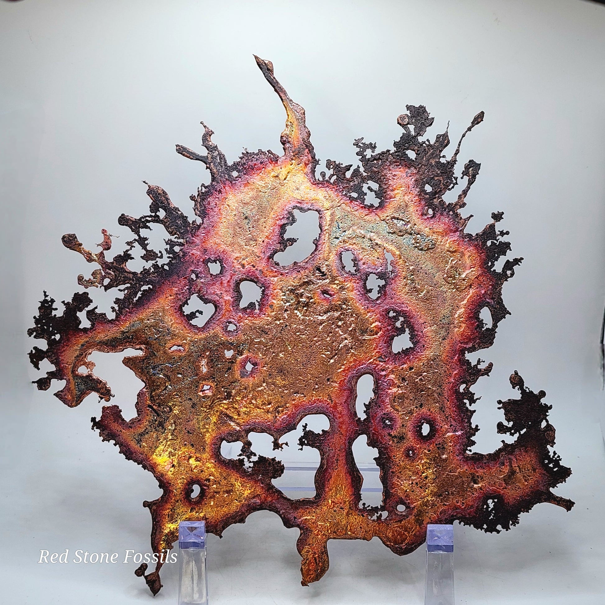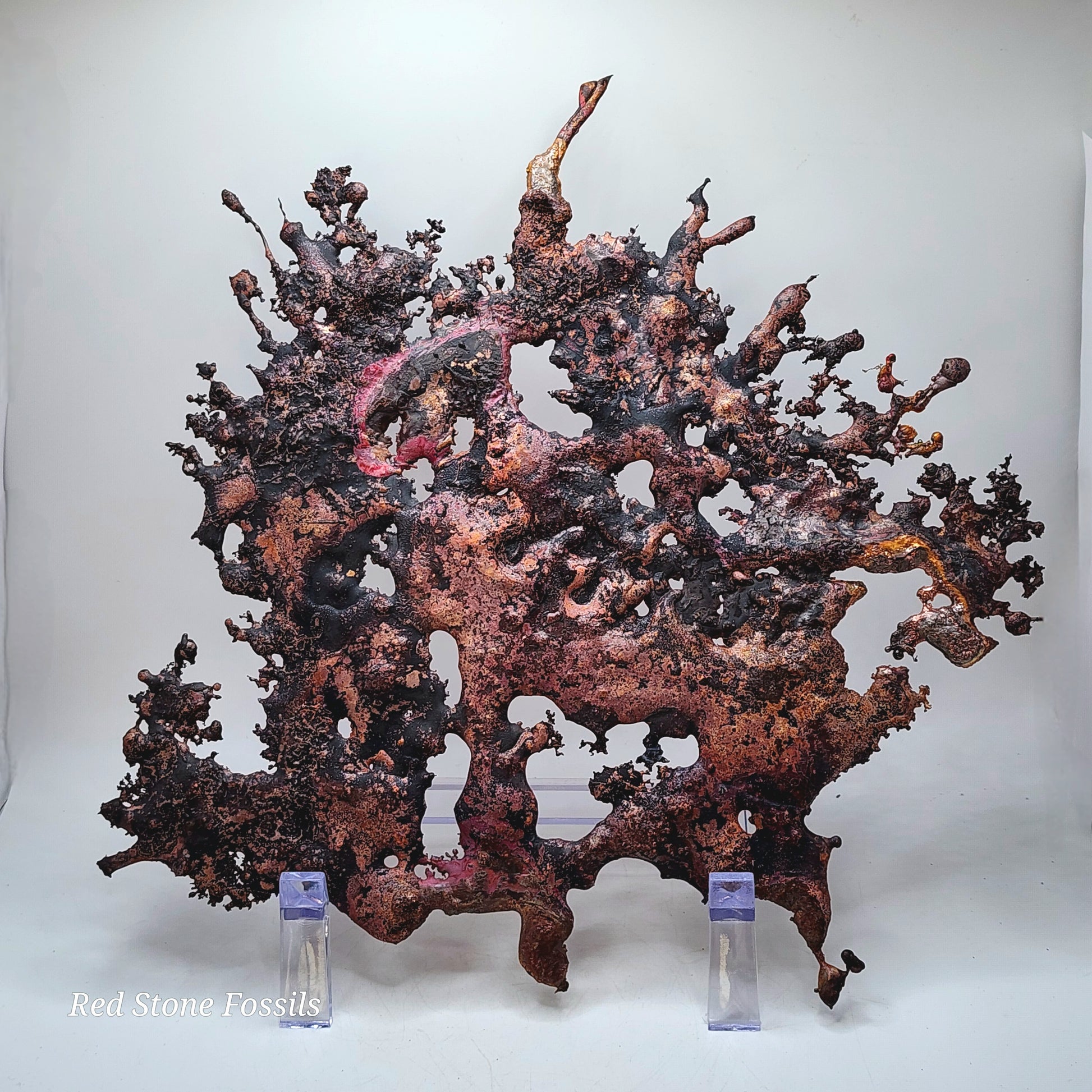 Splash Copper is a unique piece of art. It is pure and not painted! Look at the beautiful copper colors on both sides of this piece! The reds, golds, and brown natural coloring is eye catching from any corner of the room!