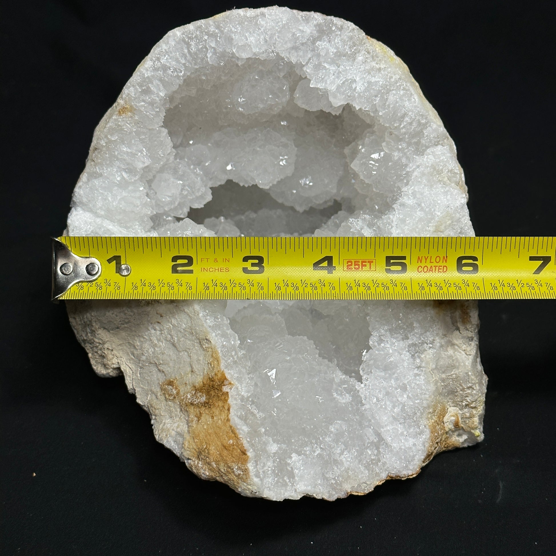 This gorgeous geode is split to show the sparkling crystals inside! This particular specimen has a very unique shape to it, making it more of an eye-catching piece!