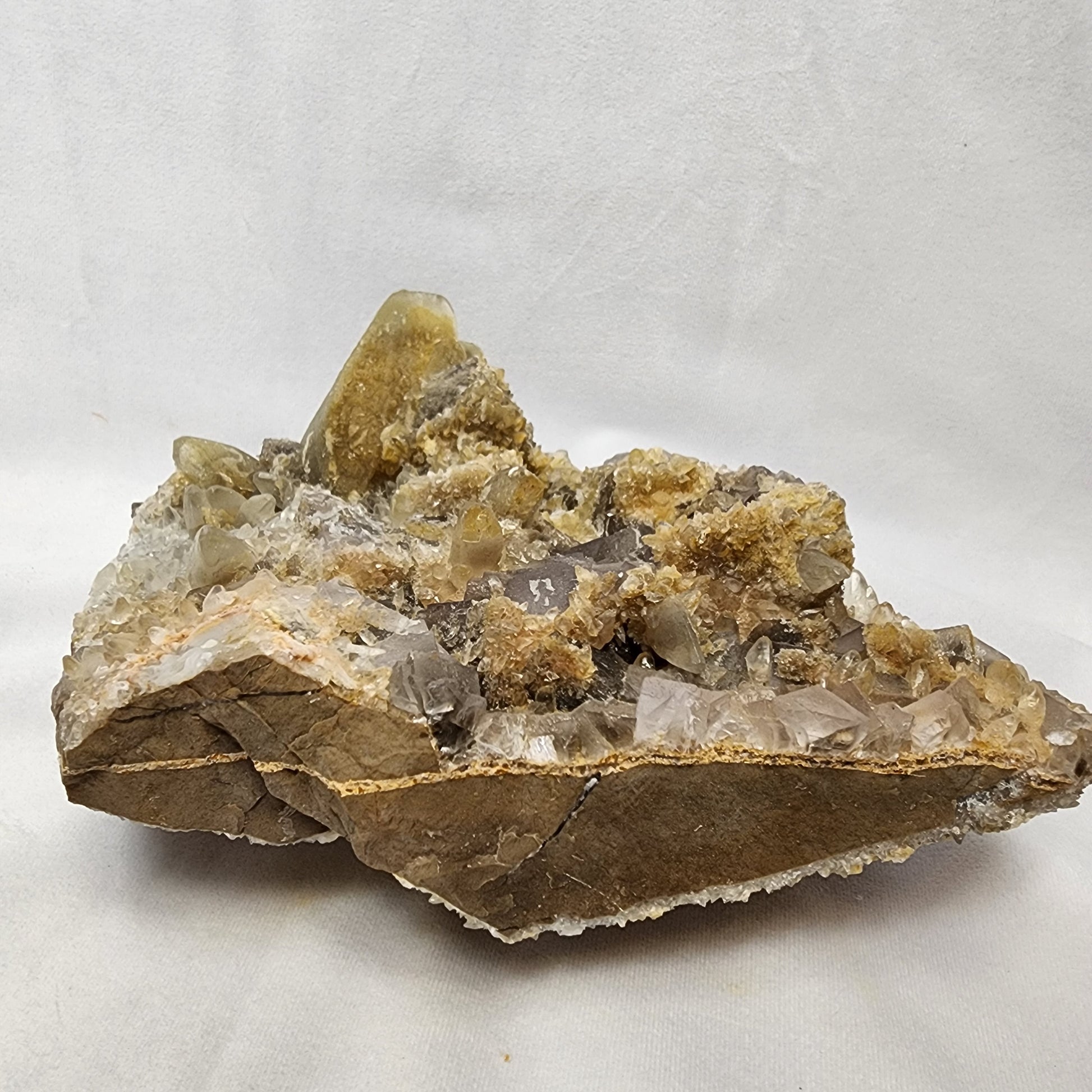 Dogtooth Calcite is named "Dogtooth" because of the sharp calcite looking like that of dogs teeth. This specimen has giant calcite pieces and tiny shards of calcite all around it!
