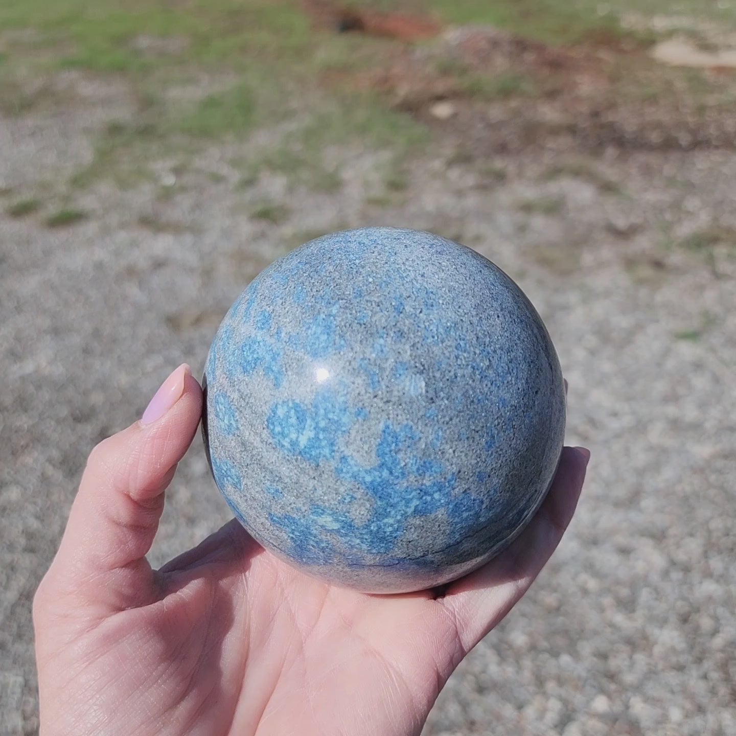 K2 Jasper is actually a type of Granite with visible azurite particles! The beautiful blue azurite "spots" are stunning on this sphere.