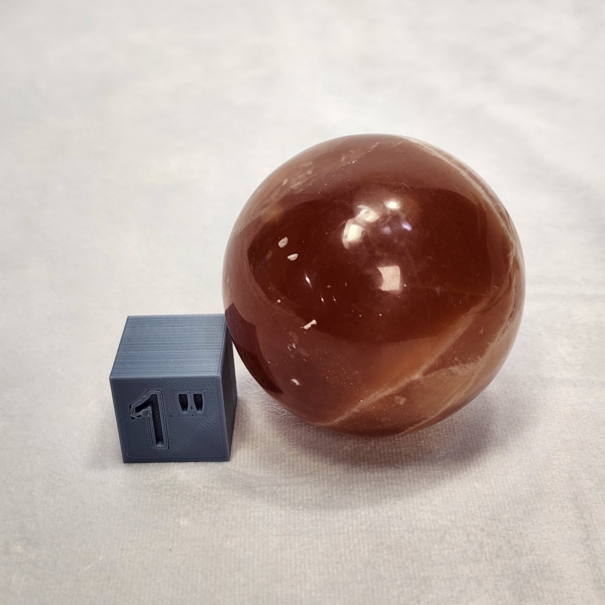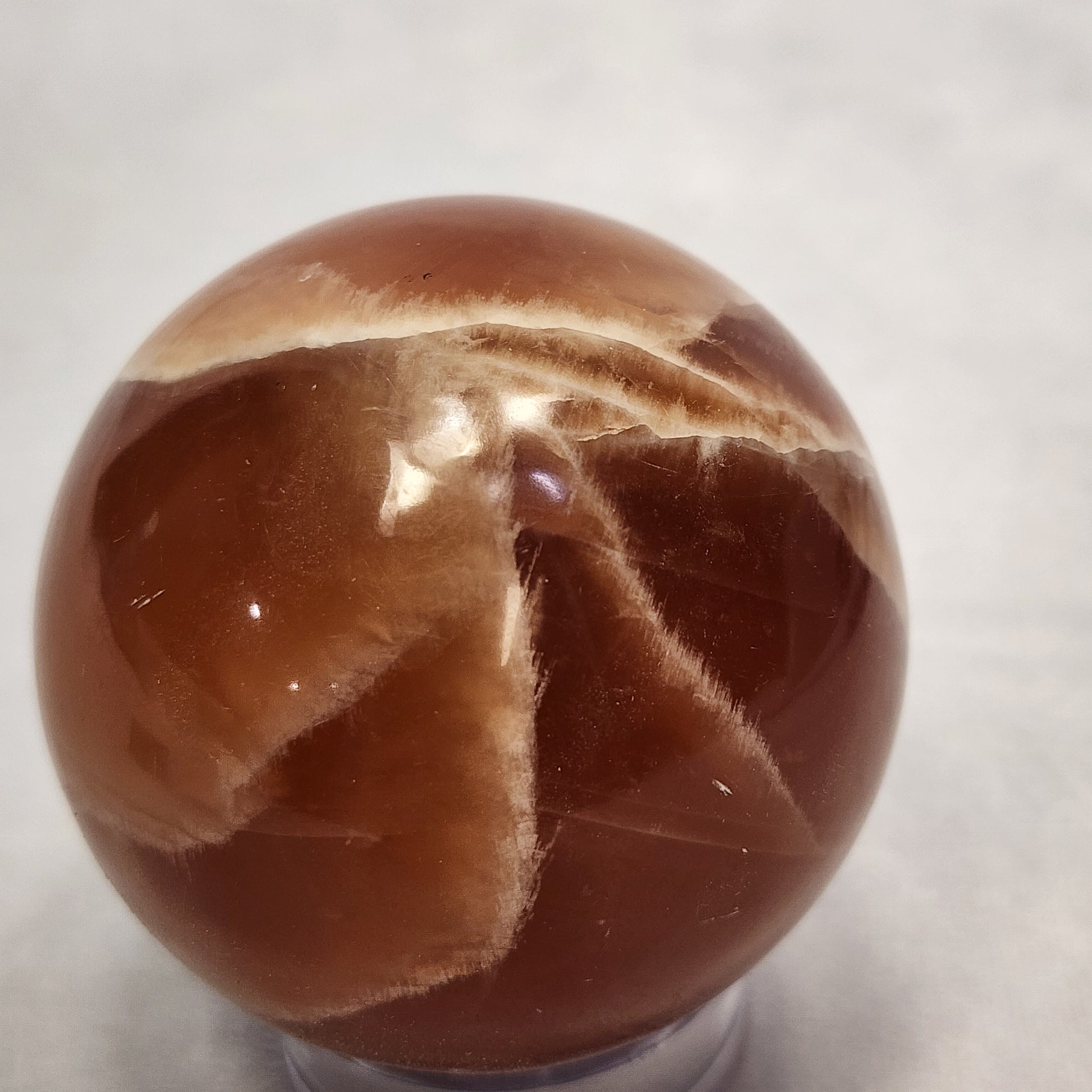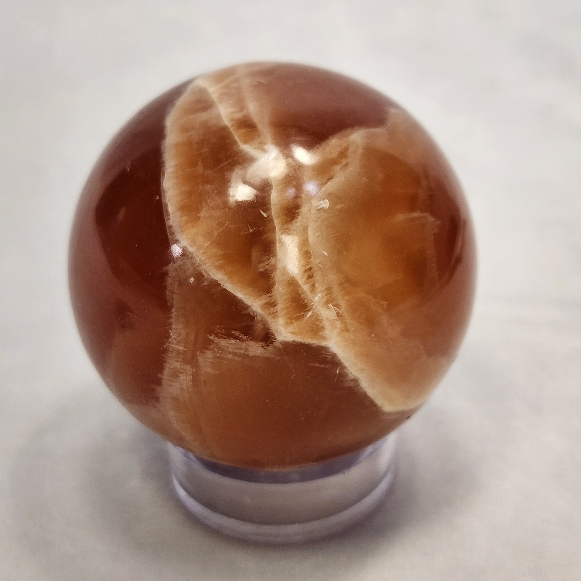 This Caramel Calcite Sphere has an orange and light brown color throughout the sphere giving it a caramel color that is perfect for any shelf of bookcase décor!