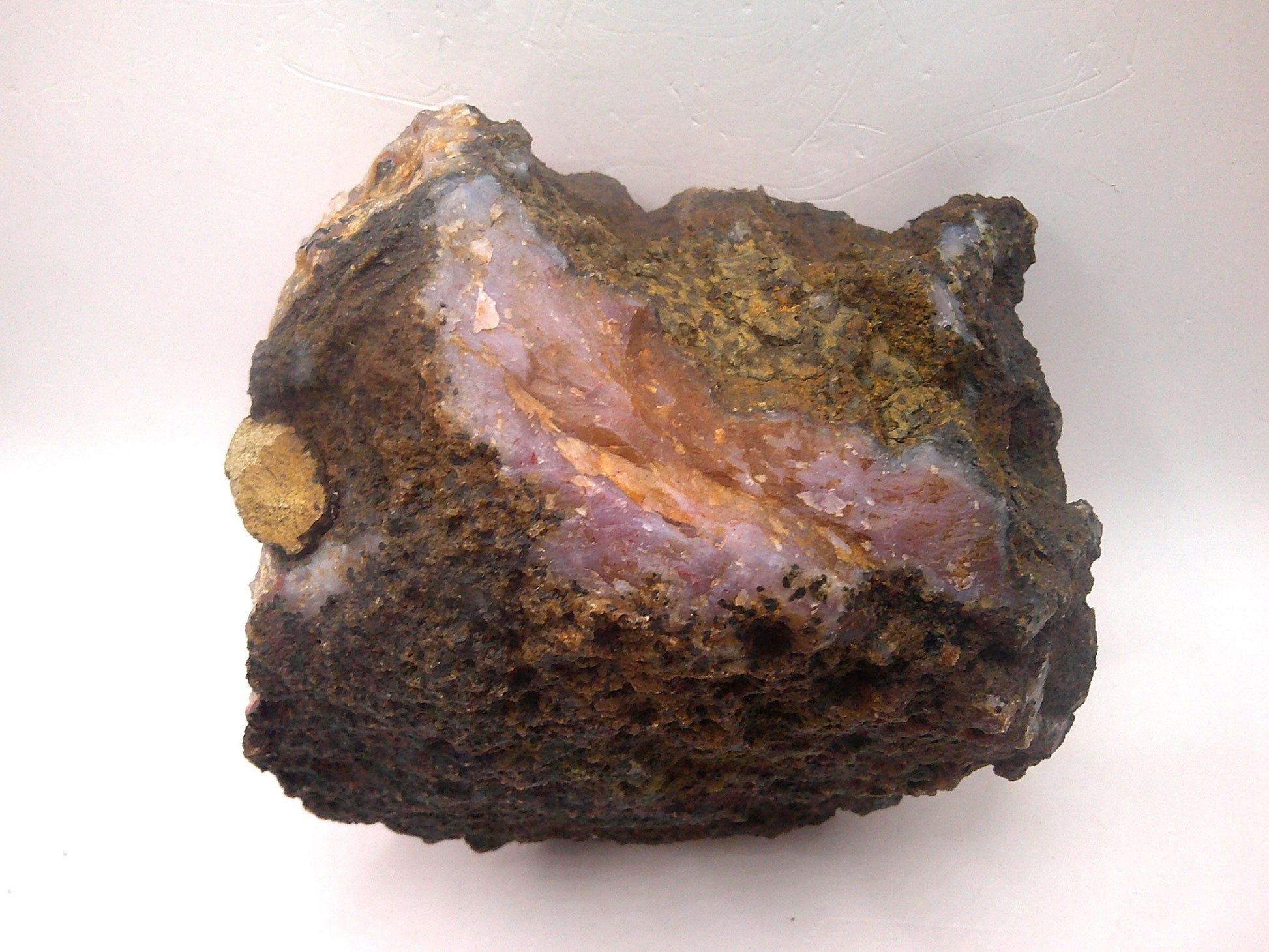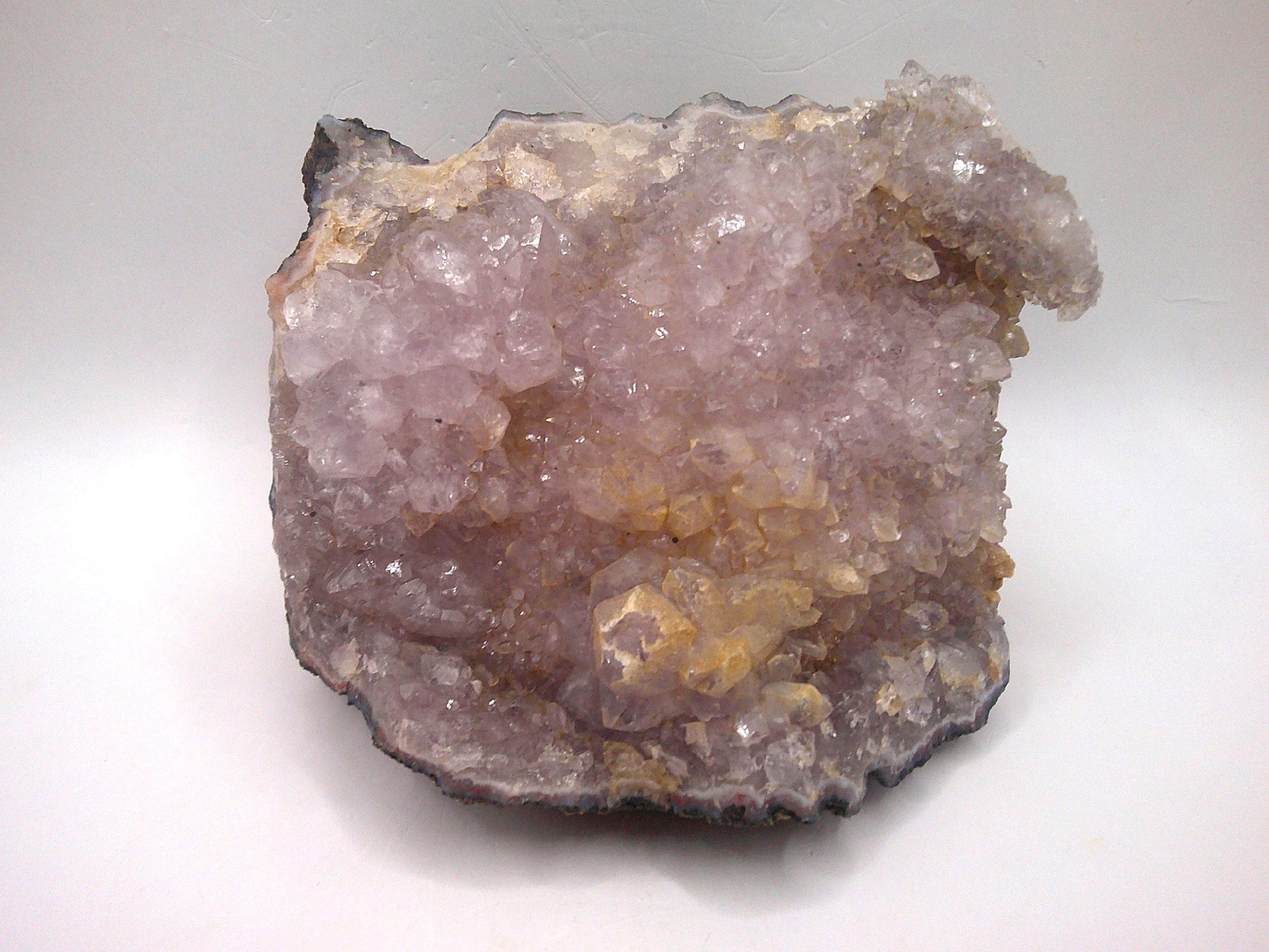 This is a quaint geode with soft purple and pink tones, perfect for a subtle addition of crystal in the home!