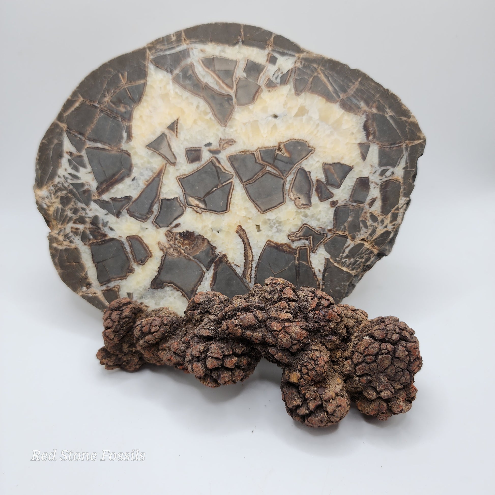 Coprolite looks great paired next to our Septarian Nodules! This specimen makes a great addition to your collection, a funny gift for someone, or as a teaching tool.