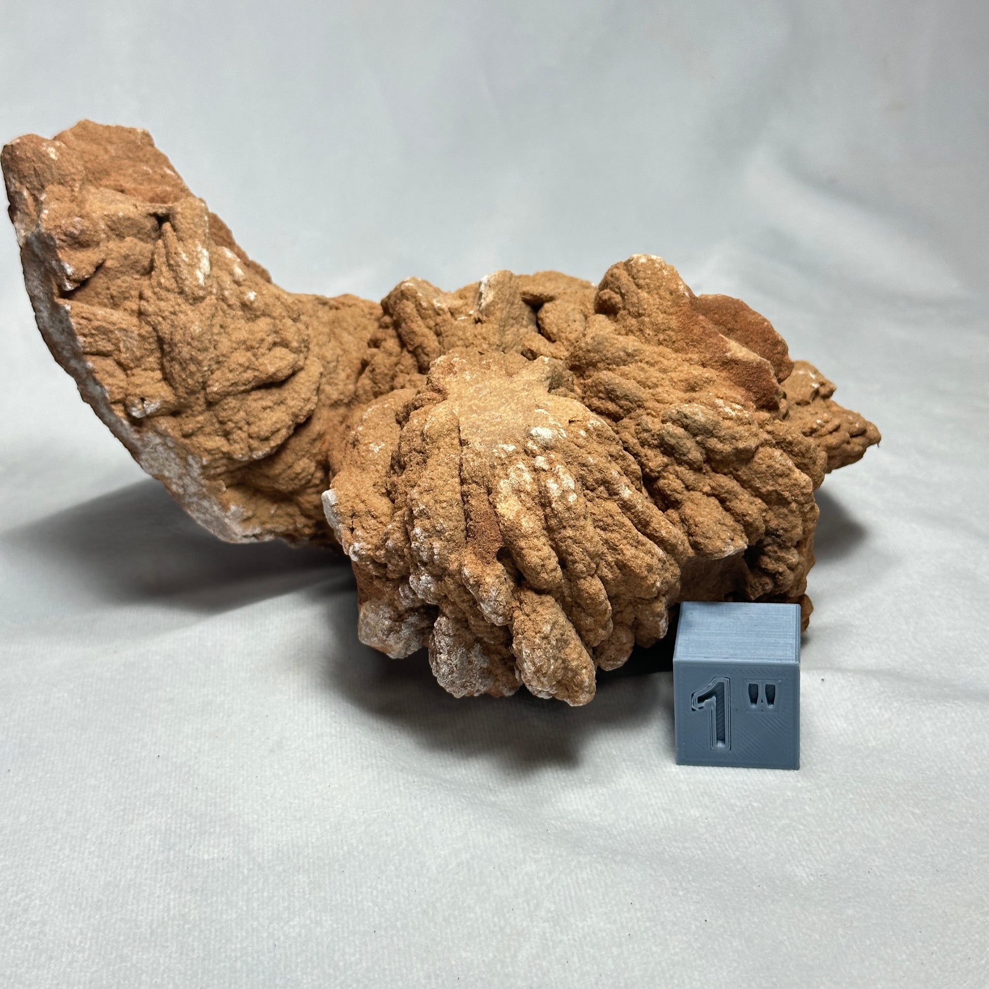 This is one of Oklahoma's Barite Rosette, or better known as the "Rose Rock". Rose rocks are composed of the mineral, "Barite"! The beautiful dusty red coloring and crystal "blades" give this rock it's name because it resembles that of a rose. The crystal blades can form in various sizes and directions, each rose rock is very different and unique. Some are found in clusters and others are single.