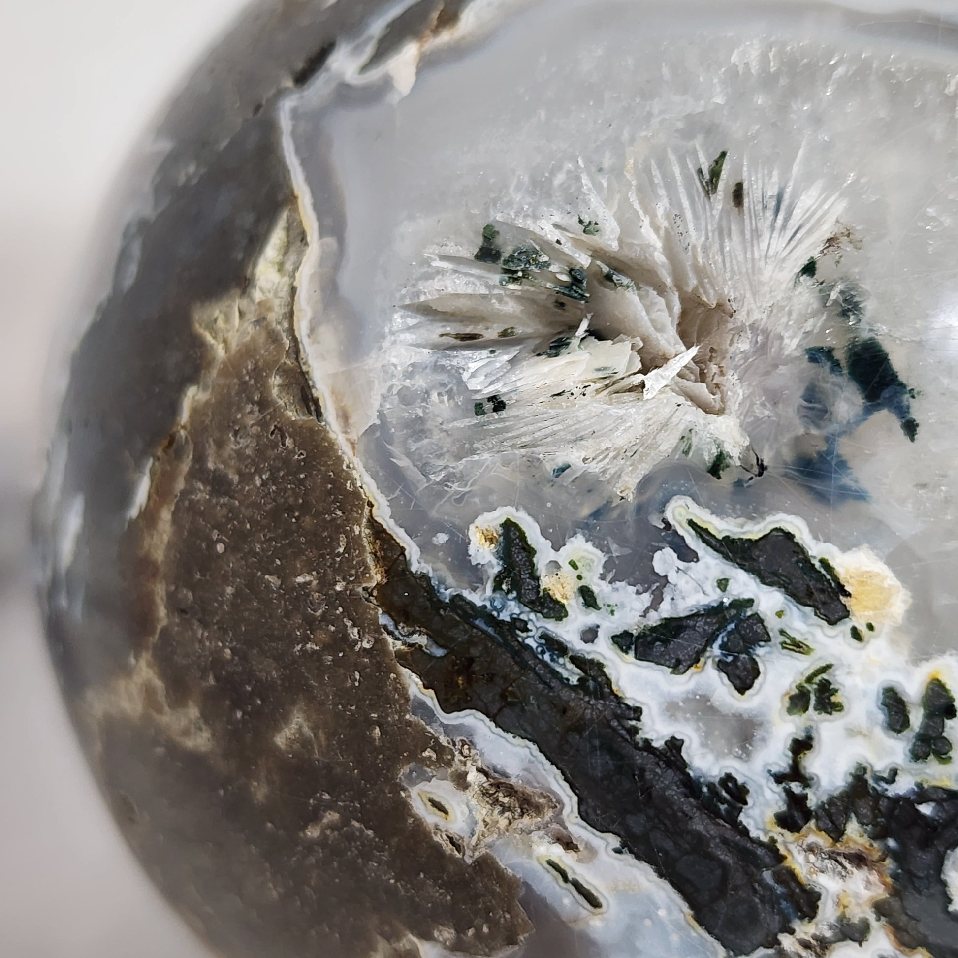Crystal Coved Moss Agate Sphere