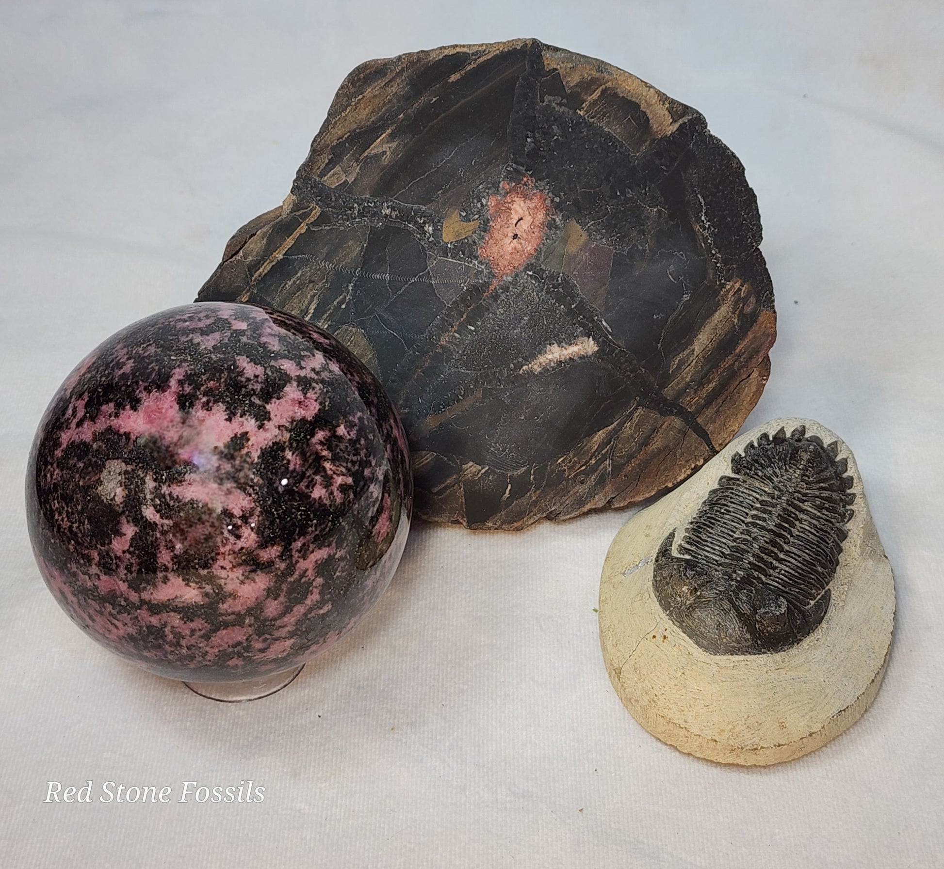 Septarian nodules are classified as a rock made up of different minerals - calcite, aragonite and limestone. This listing is for the singular polished nodule that is pictured. Pair with our Rhodonite Sphere and trilobites for an amazing display piece that will catch the eye of anyone passing by!