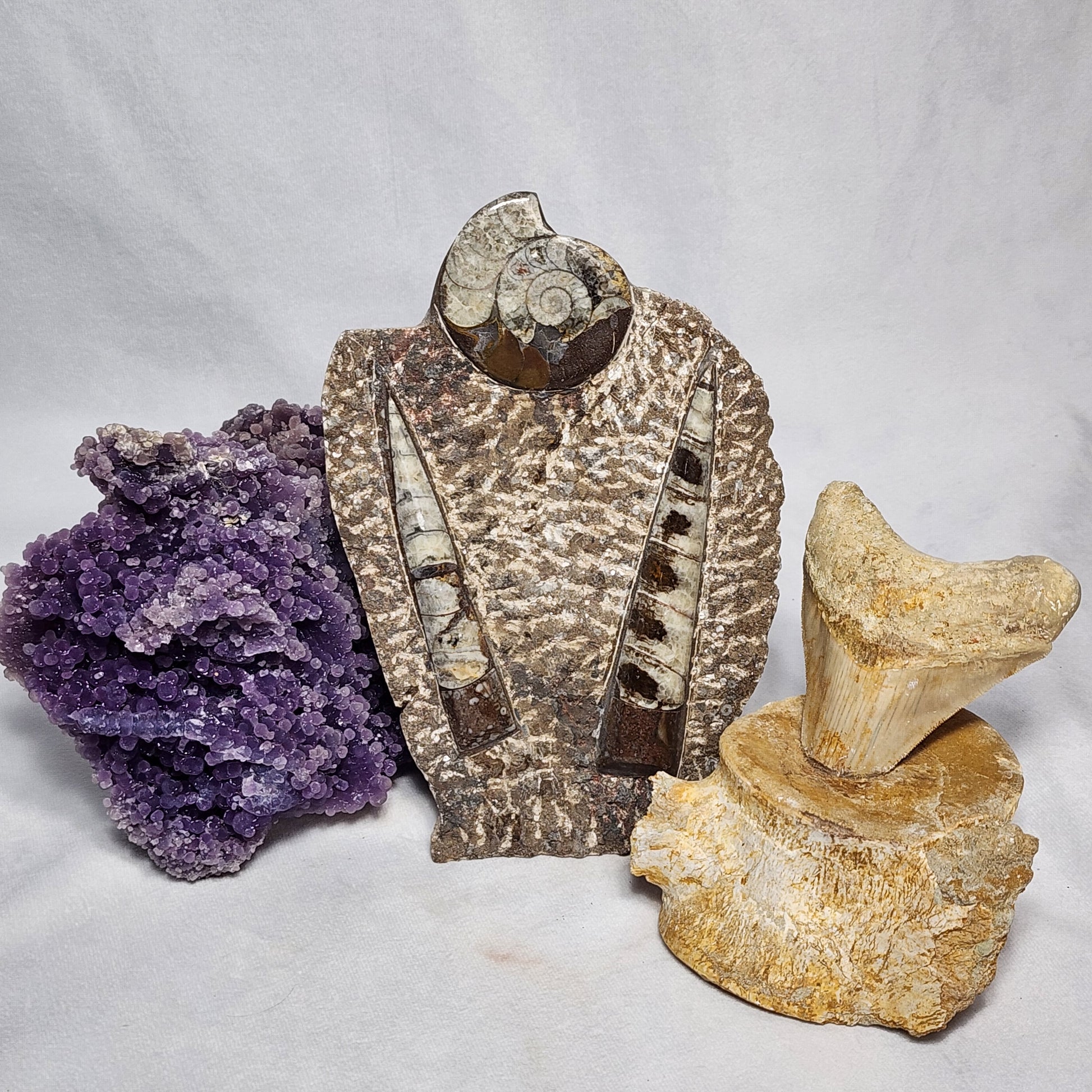 The cut base on this piece helps it to display on it's own or to pair with our Grape Agate and Splash Copper! What a perfect gift for the fossil lover in your life or to add to your collection!