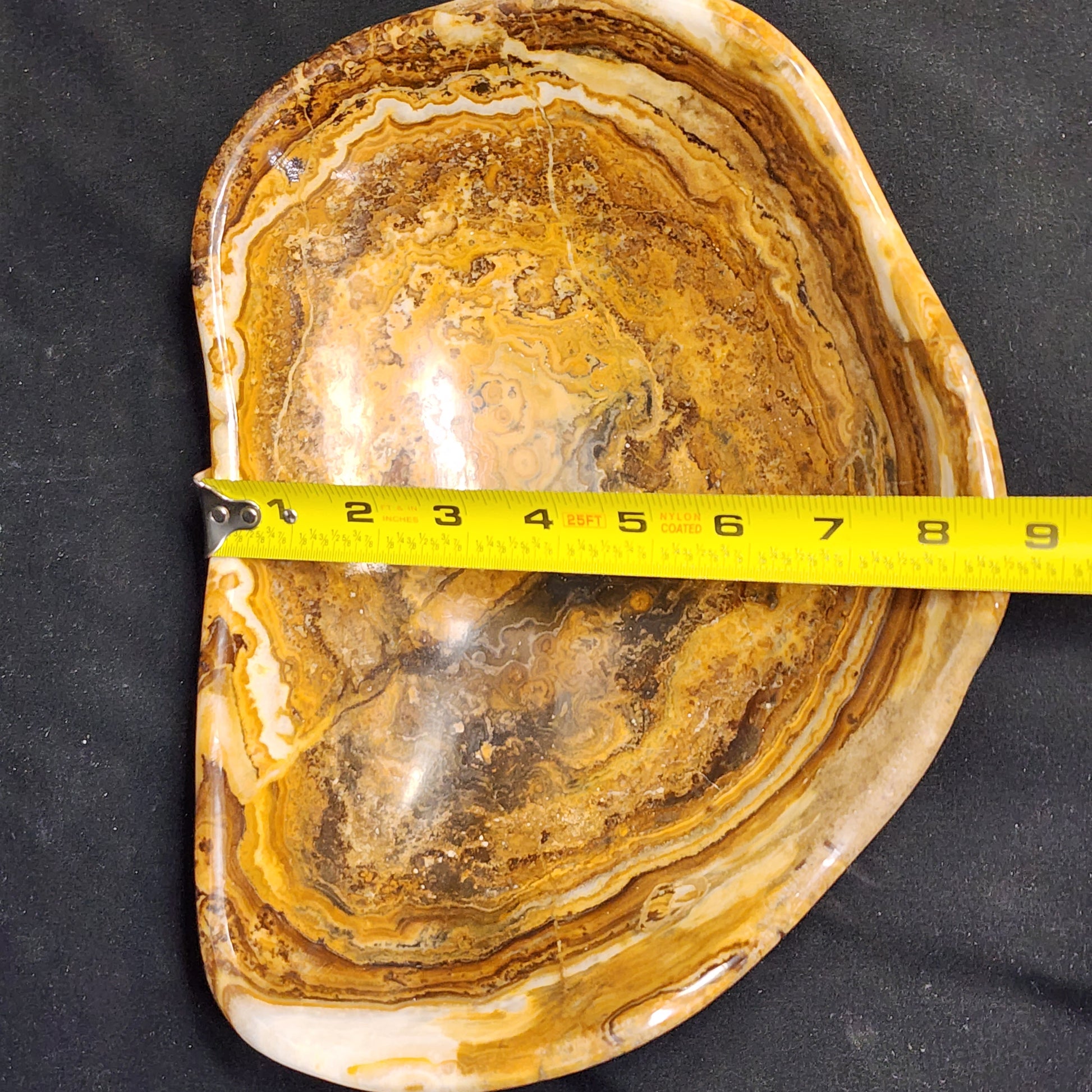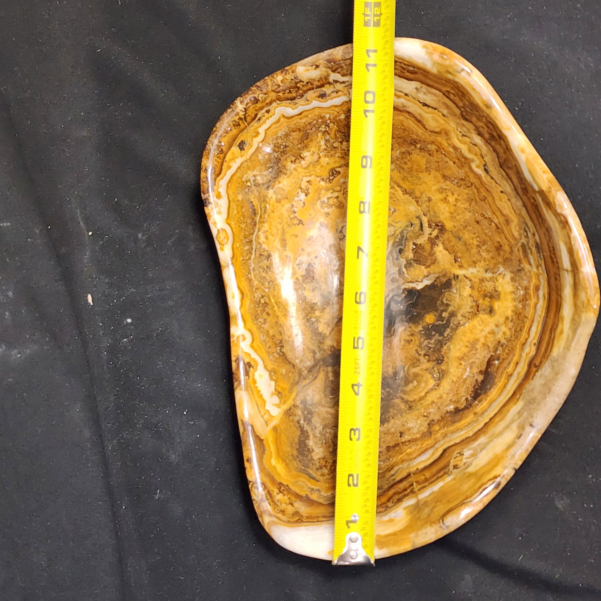 This particular piece has beautiful dark brown swirls with deep curved corners on the bowl. Pair with our Grape Agates or Selenite Sphere for a beautiful piece of table décor!