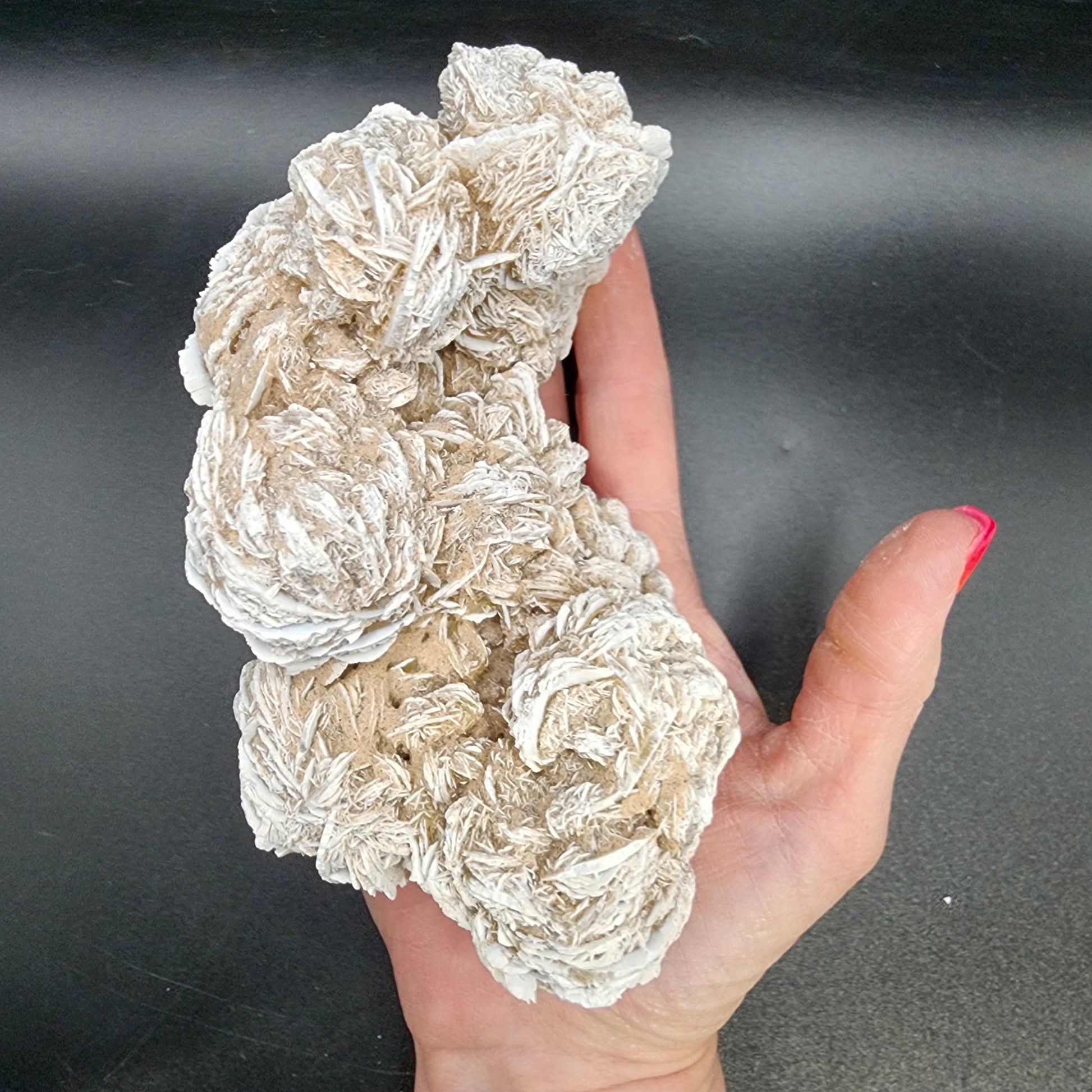 A desert rose is an intricate rose-like formation of crystal clusters of gypsum or baryte, which include abundant sand grains which make it a stunning sculpture for the home! Display this in any room to add a subtle soft touch of beauty. Pair with our Grape Agates or Purple Amethyst for an absolutely gorgeous display piece!