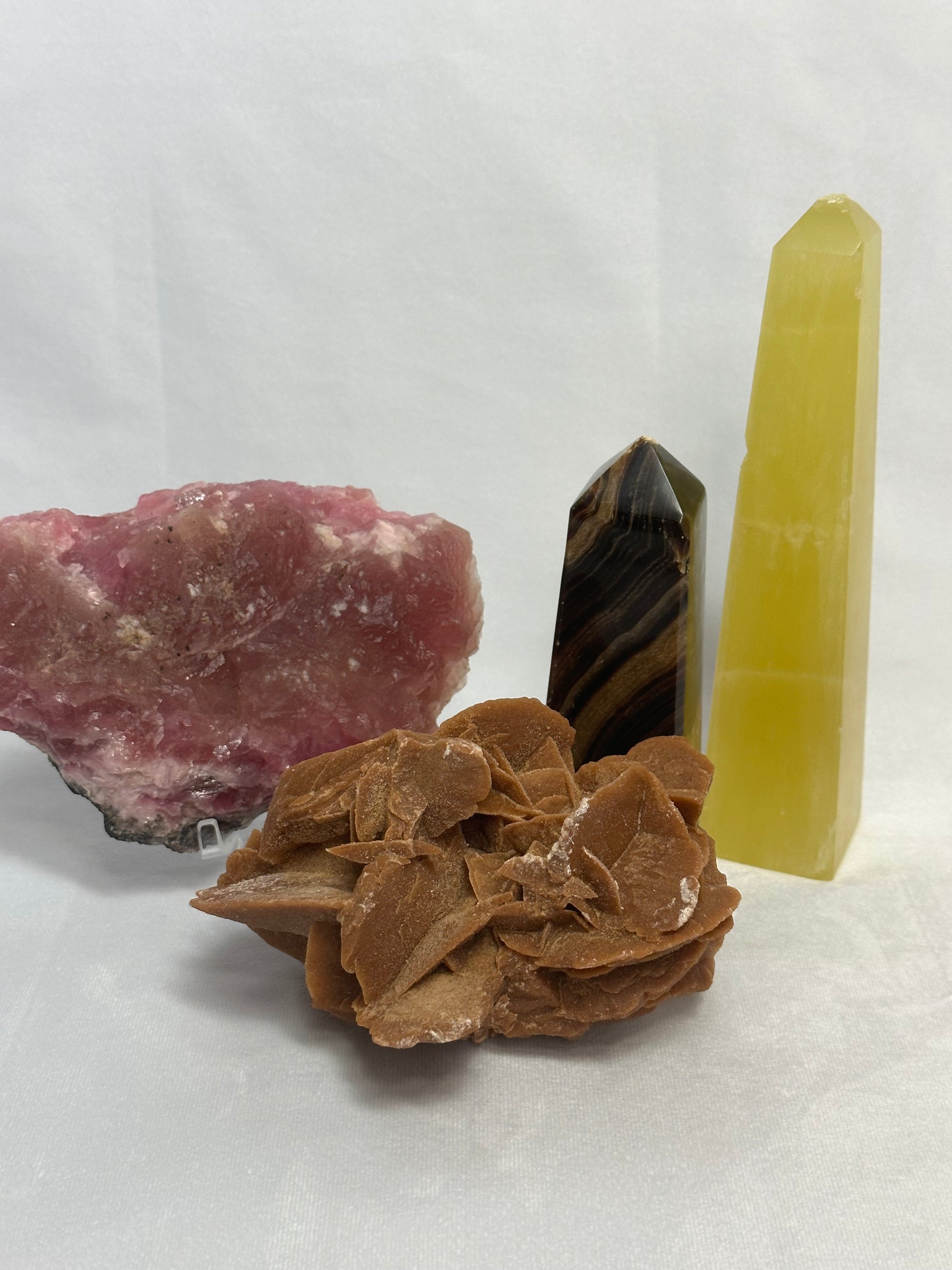 Desert Roses are a form of gypsum that, when sand particles become embedded in it form the rose shaped crystal "petals".