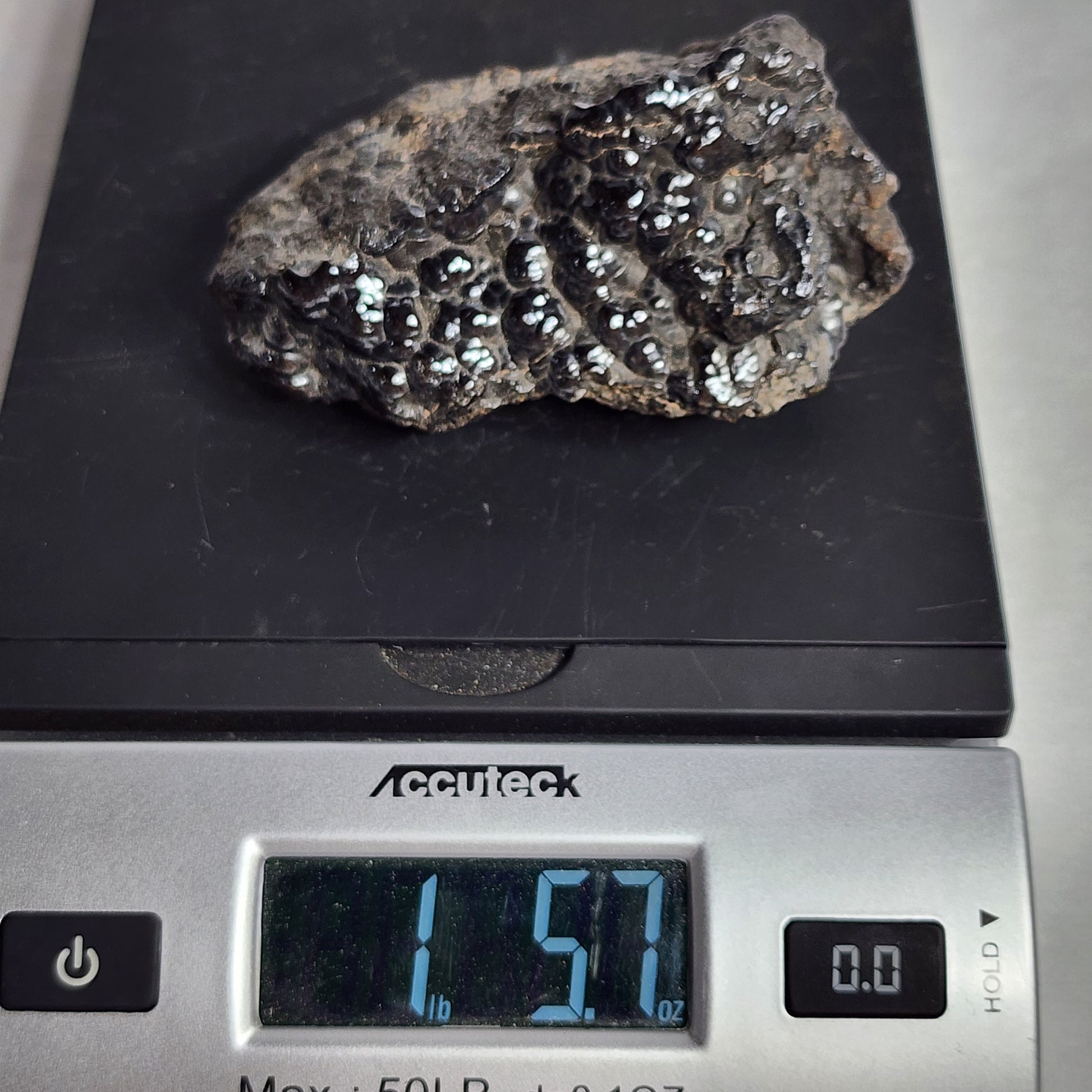 Botryoidal Hematite is a dense iron oxide with lots of weight to it! All Hematite will have streaks of red, which shows in small crevices all around this particular specimen!