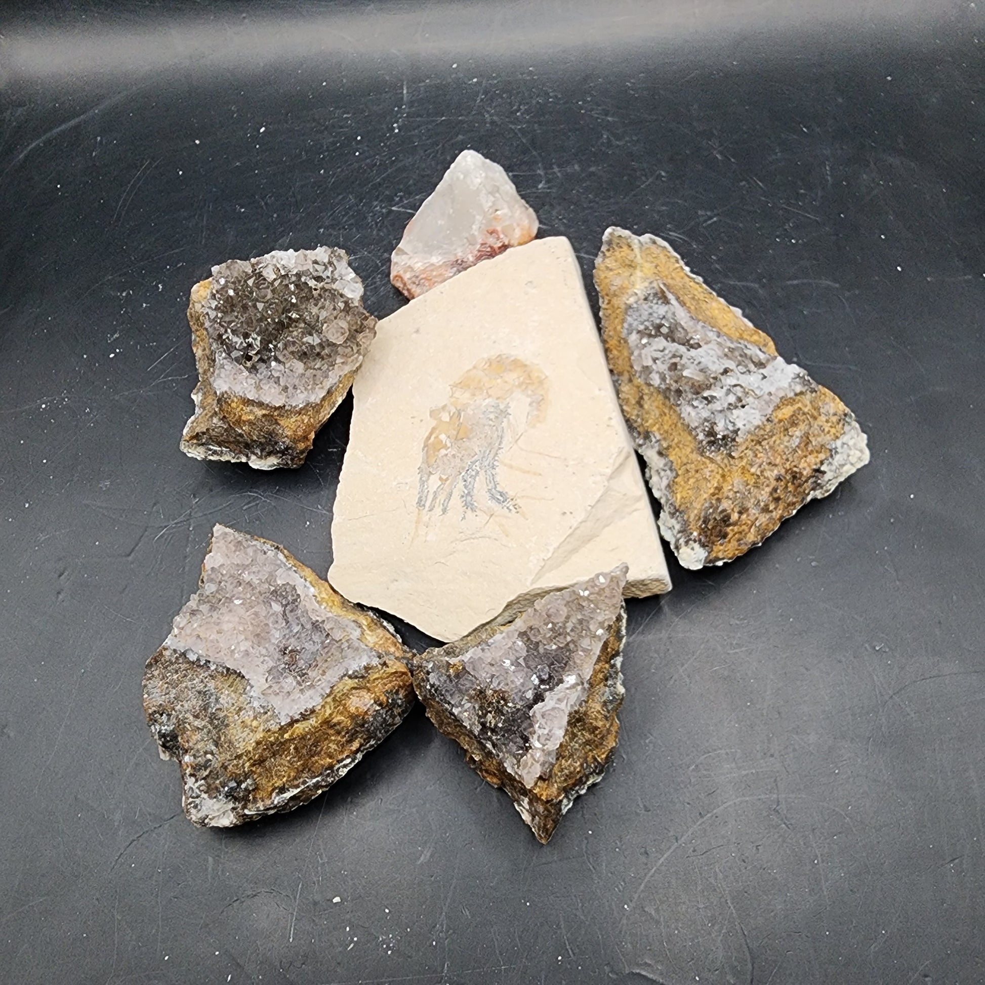 Very nice, authentic Lebanese fossil shrimp that combines well with our geode and calcite fragments!