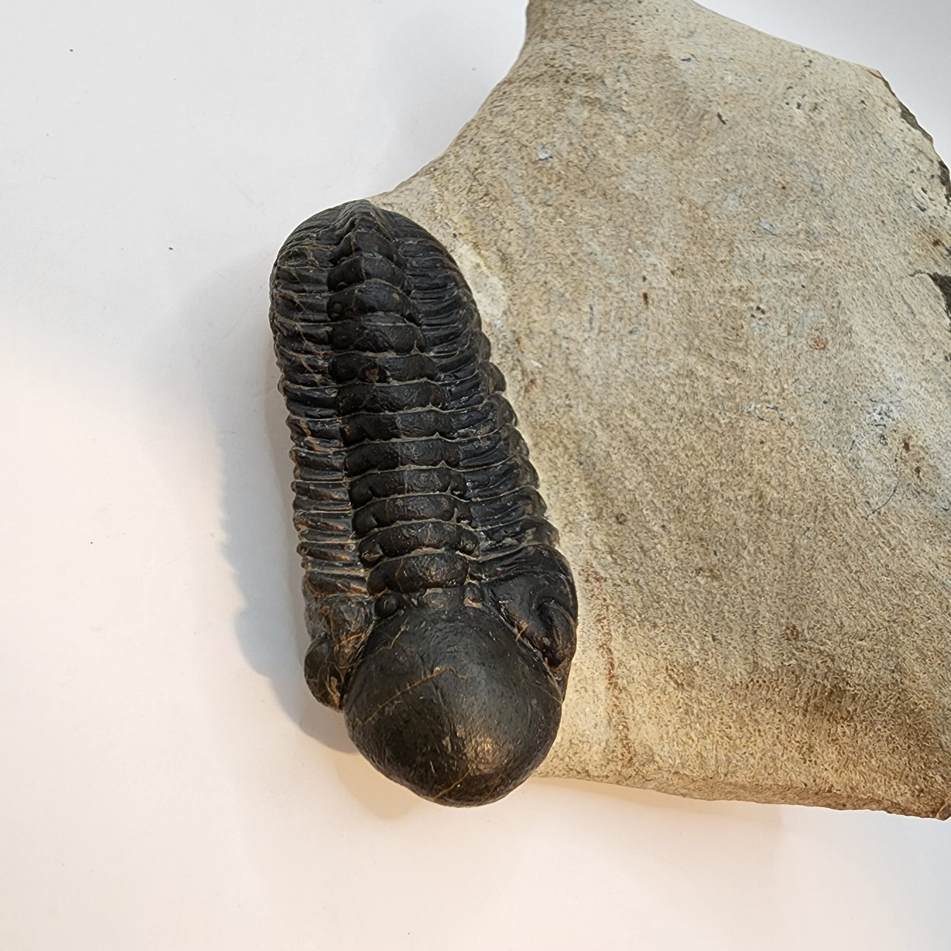 Note: If hairline cracks are visible in matrix or on trilobite, it is from splitting and re-adhering rocks at point of discovery (mining process). This is strong evidence of the authenticity of the specimen.
