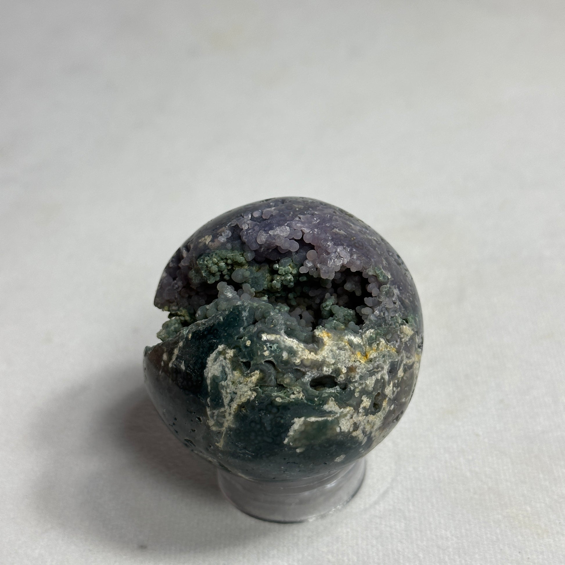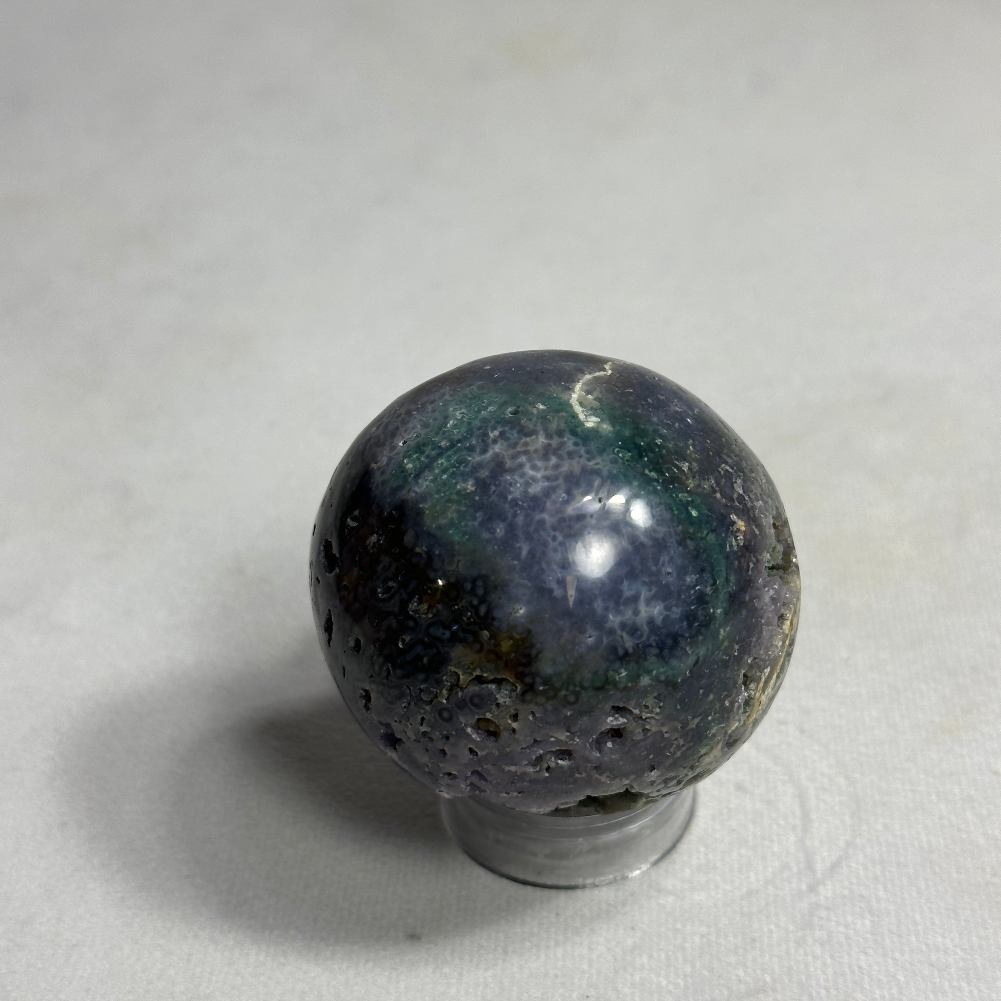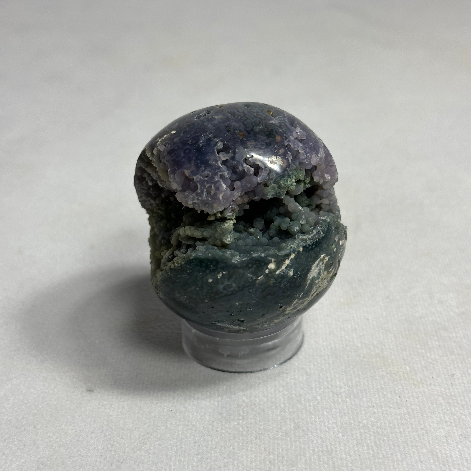 This Grape Agate has been polished and shaped into a Sphere making it a beautiful addition to your collection. Pair with our Ammonites and Agate Spheres for a unique shelf or bookcase décor!