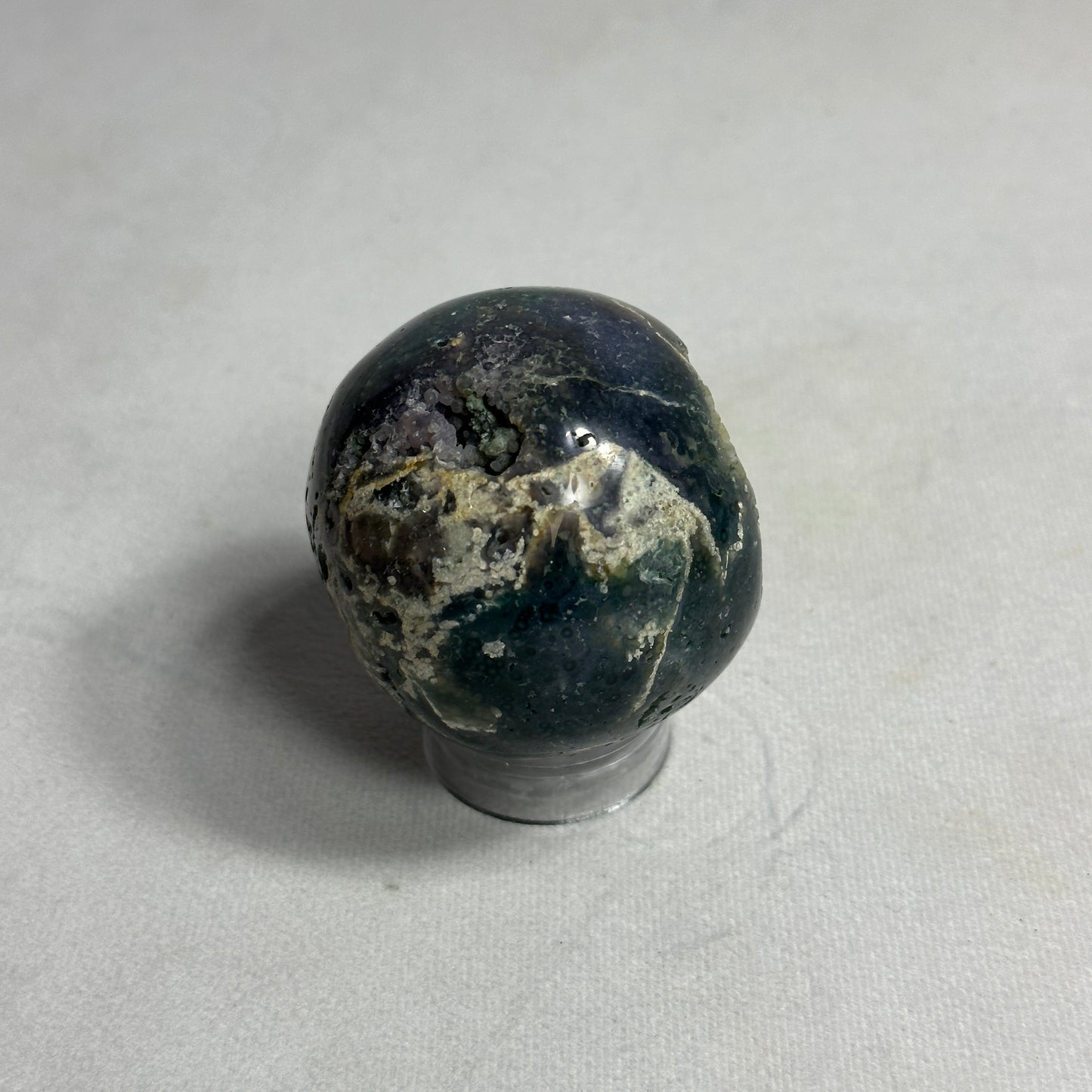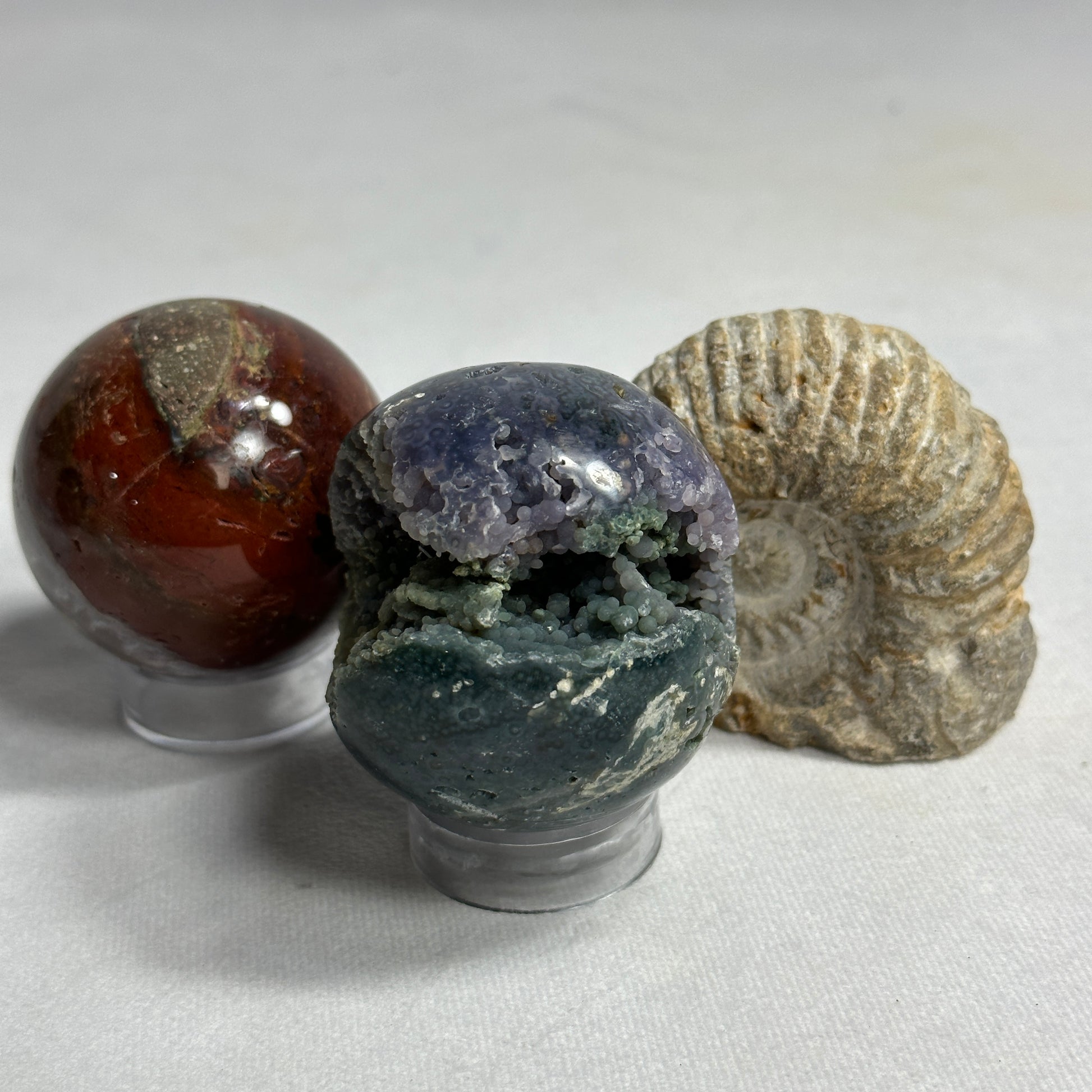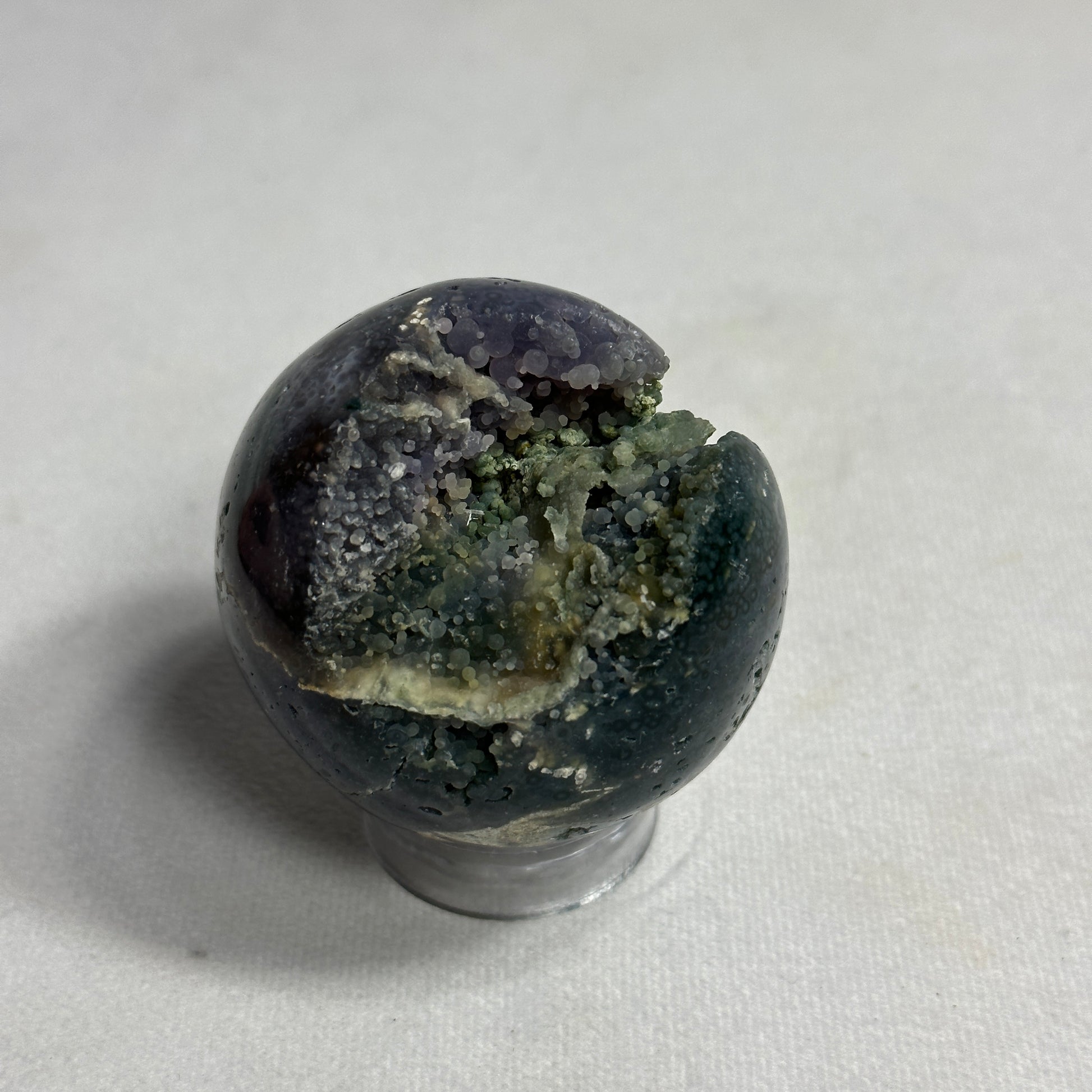 This Grape Agate has been polished and shaped into a Sphere making it a beautiful addition to your collection. Pair with our Ammonites and Agate Spheres for a unique shelf or bookcase décor!