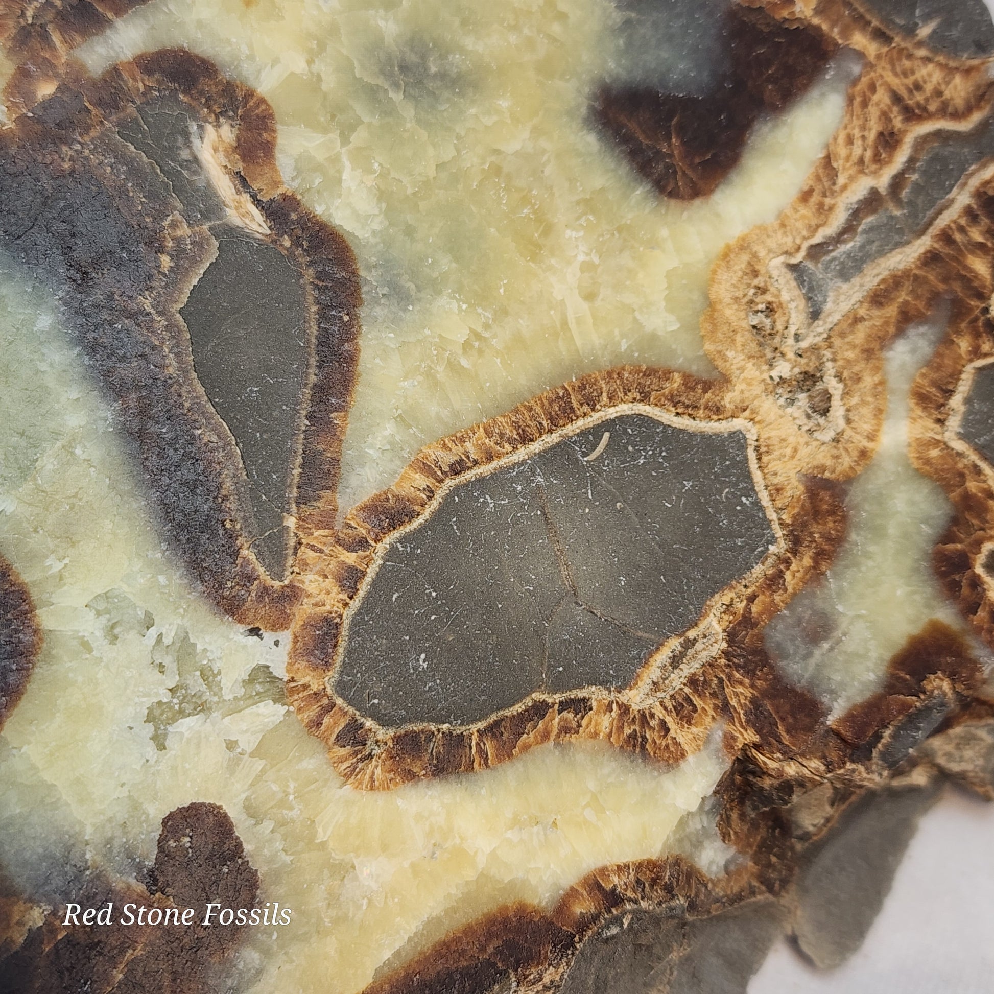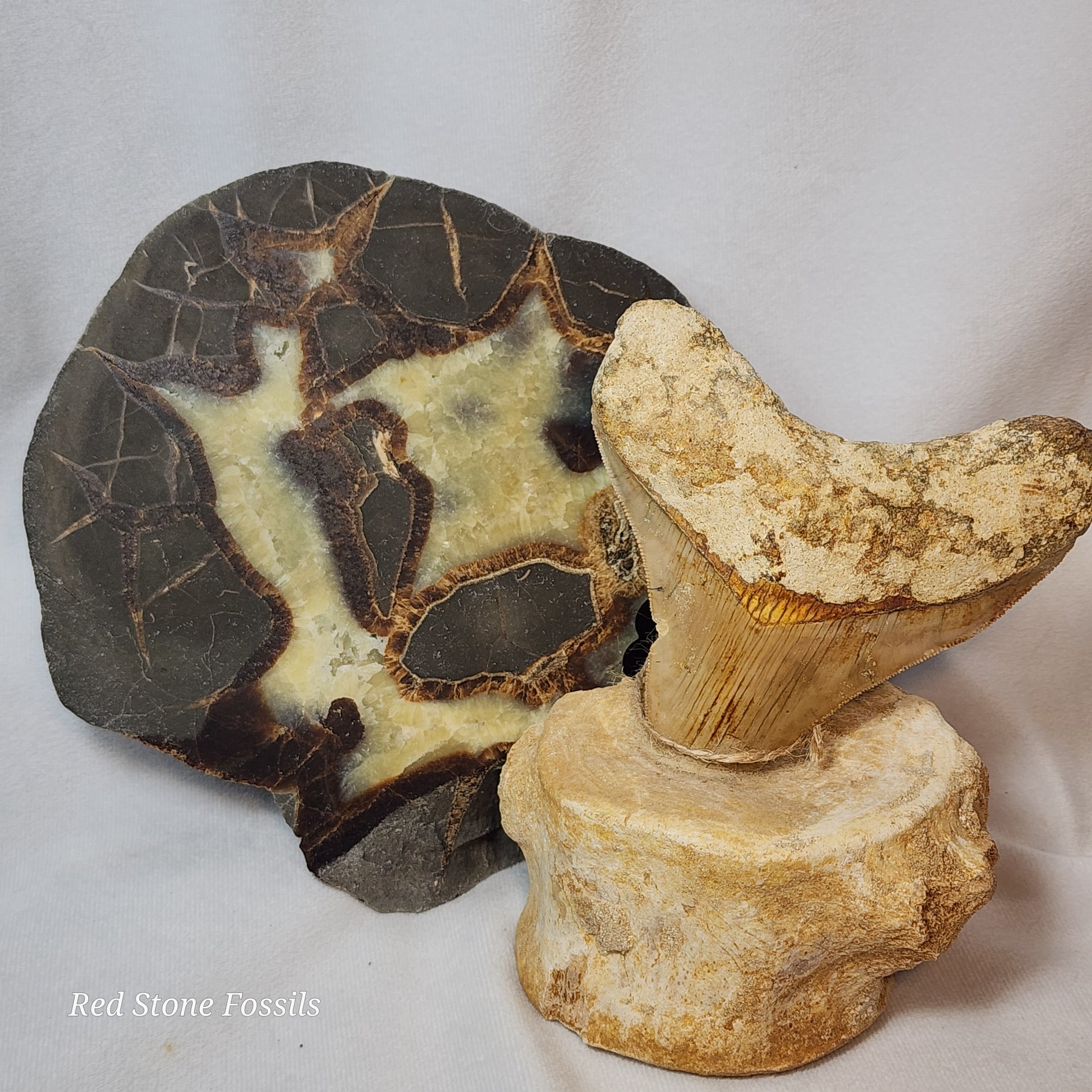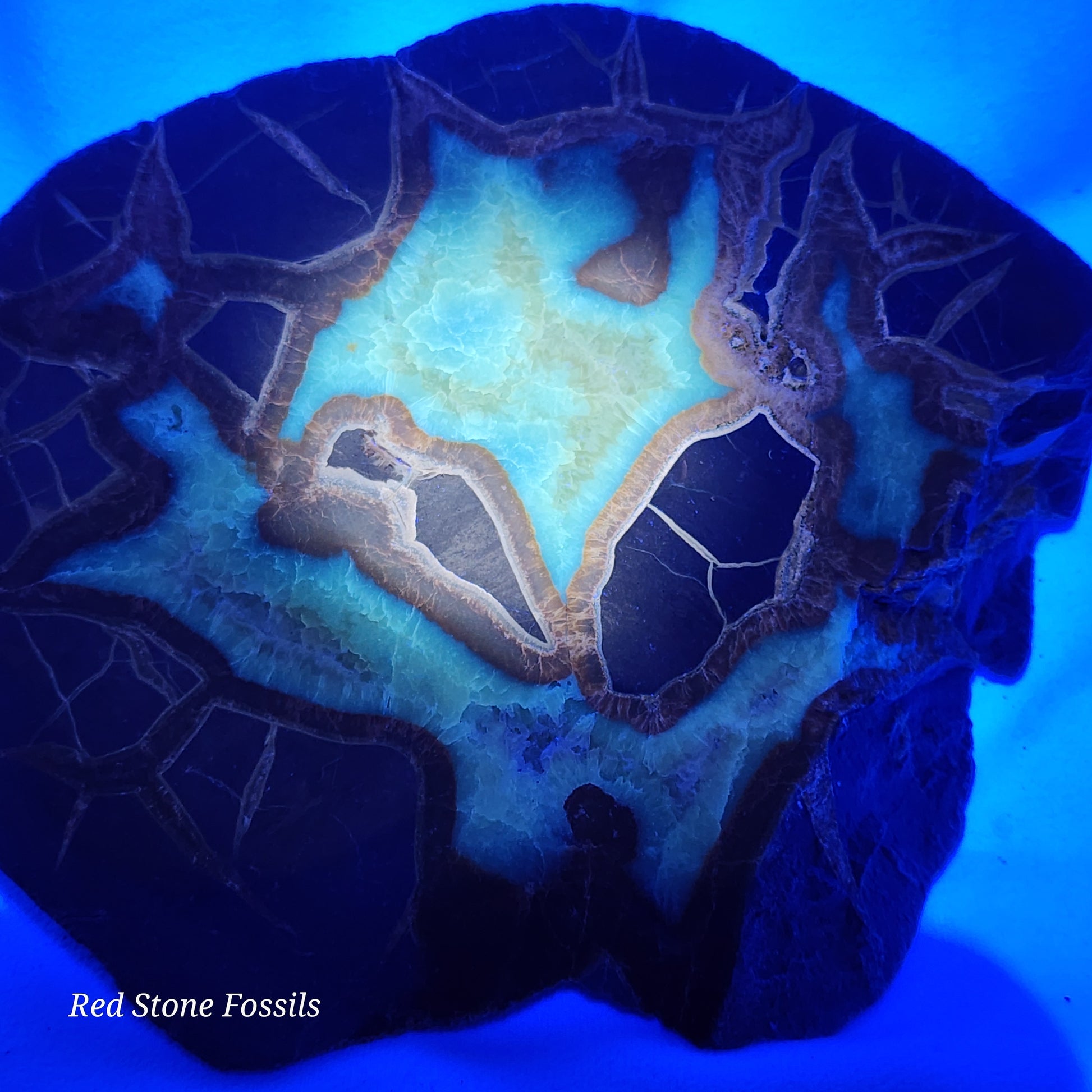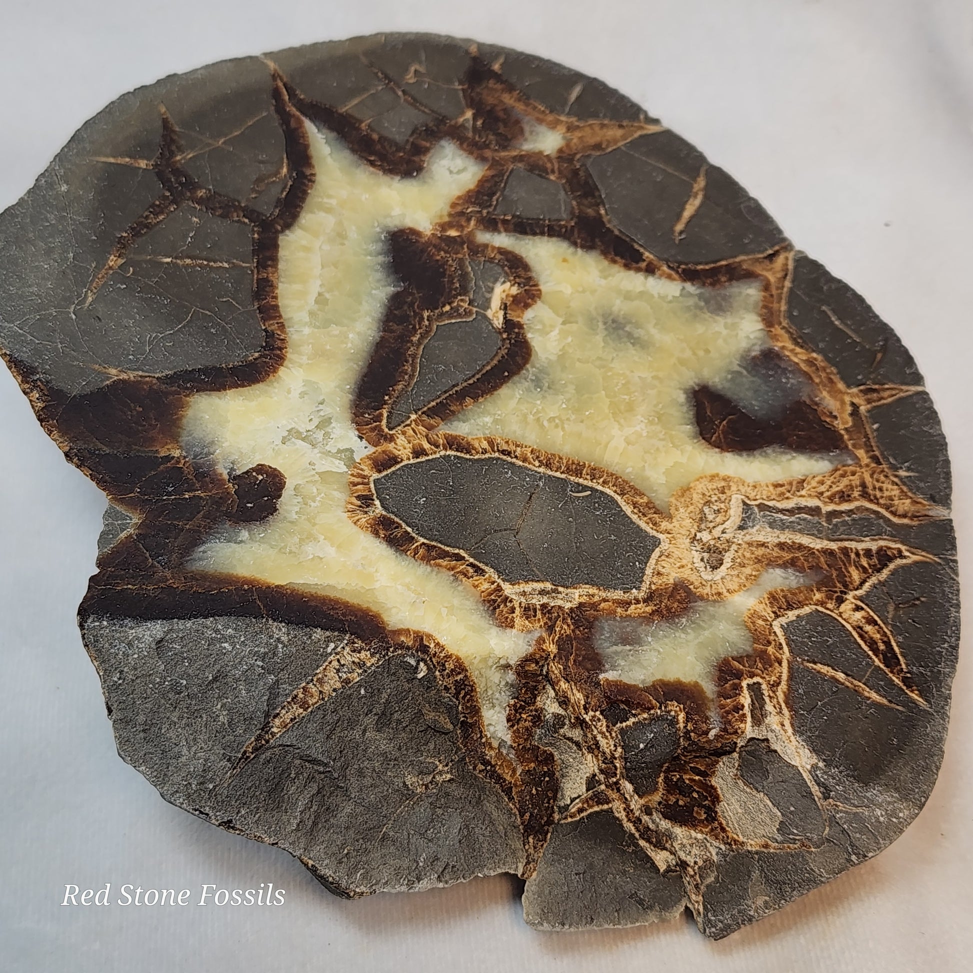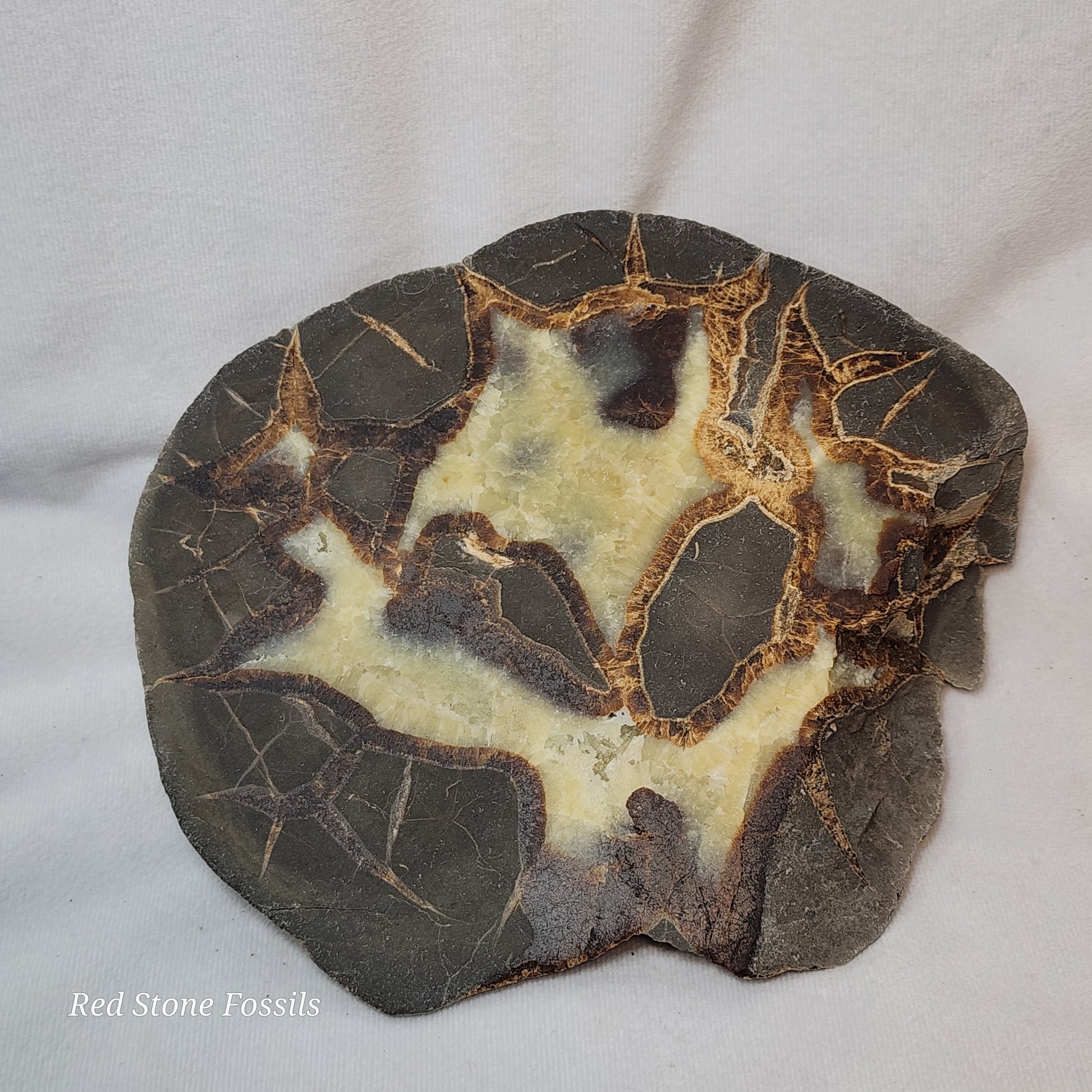 Septarian nodules are classified as a rock made up of different minerals - calcite, aragonite and limestone. This listing is for the singular polished nodule that is pictured. Pair with our Predator and Prey for an amazing display piece!