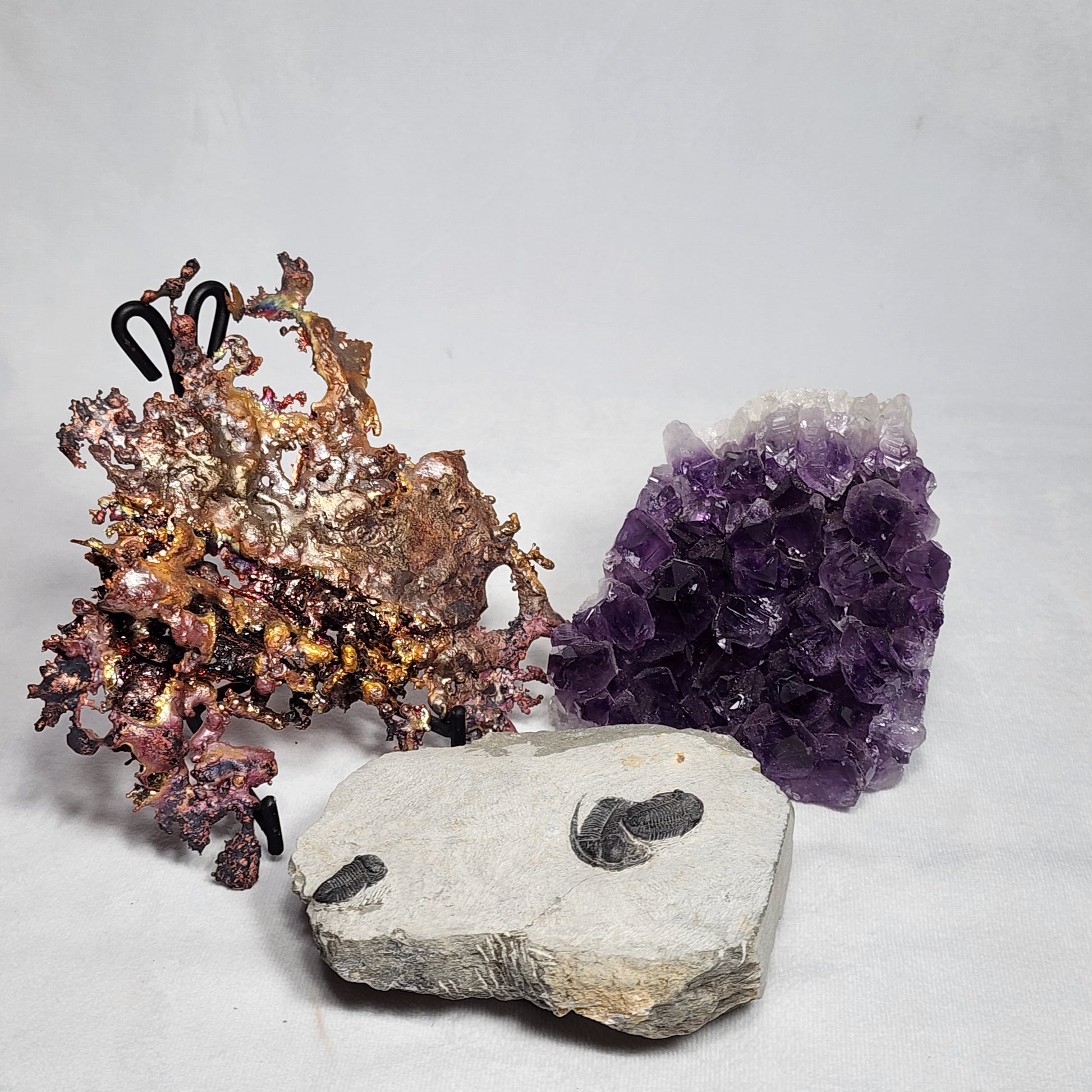 This beautiful specimen from Morocco is an authentic triple trilobite in matrix! There are two species of trilobites on this stunning specimen the "Proetus" and "Dalejeproetus". This piece will make a fantastic addition to any collection! Pair with our Anetoceras Heteromorph Ammonite and Amethyst for that extra special look!