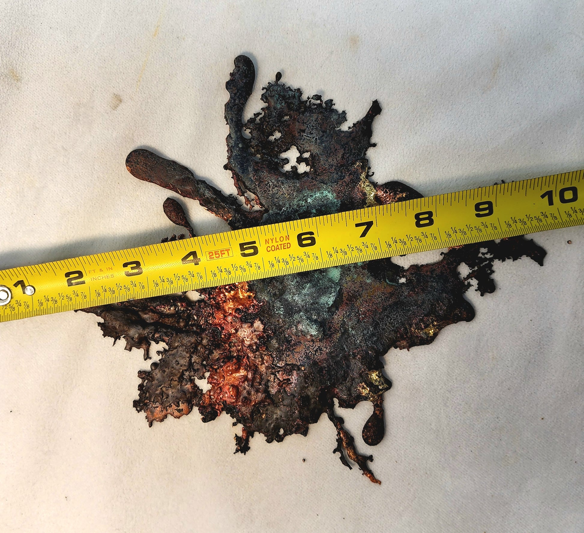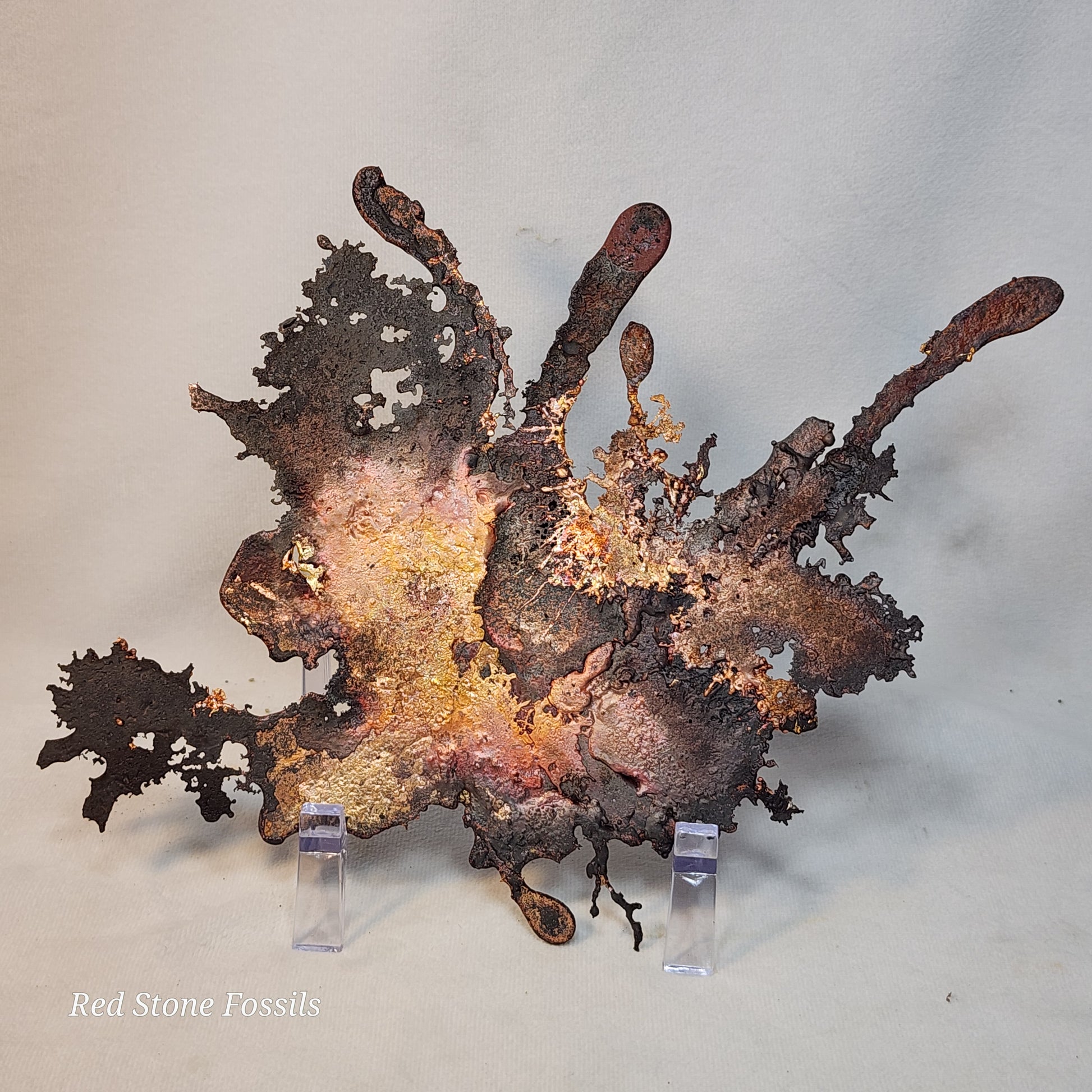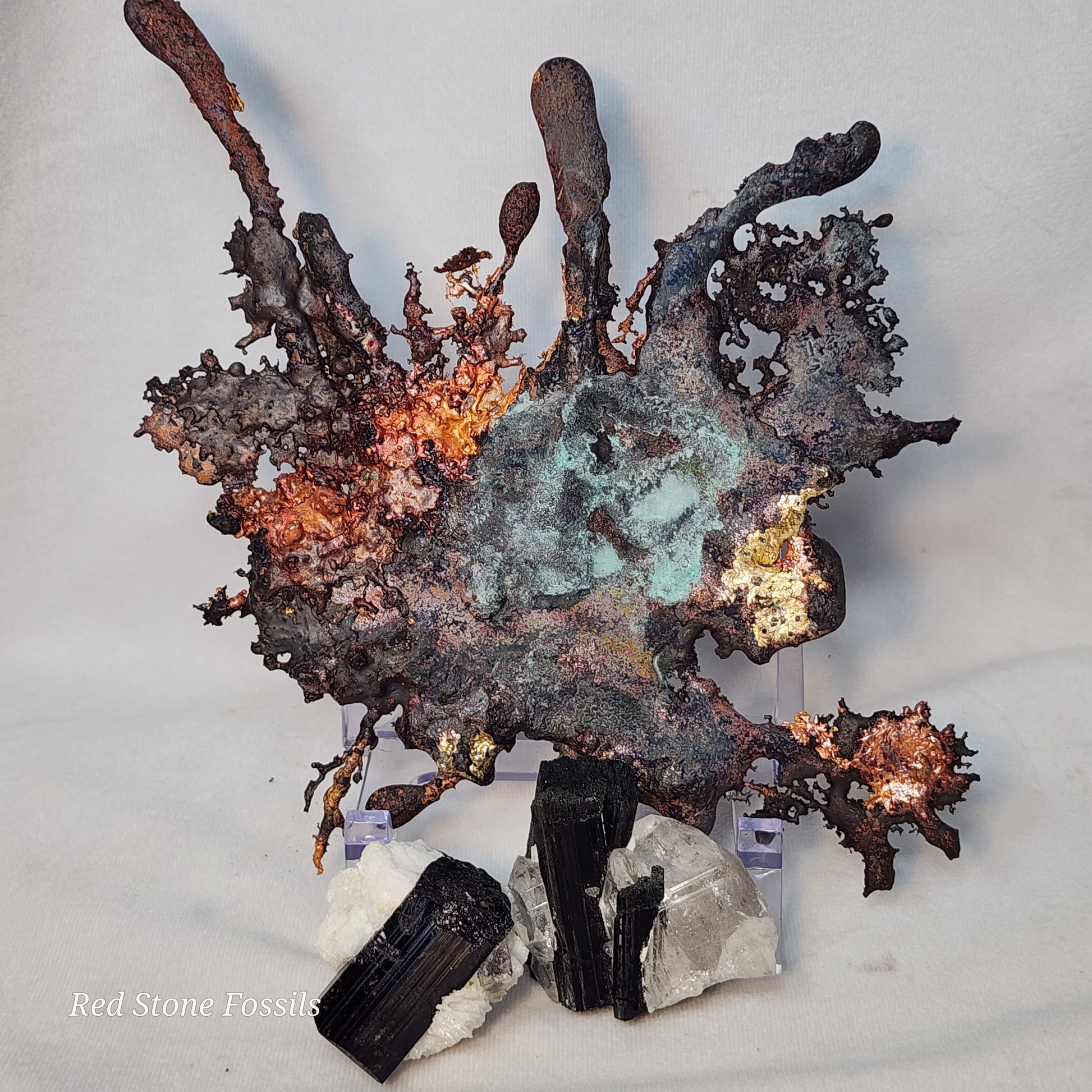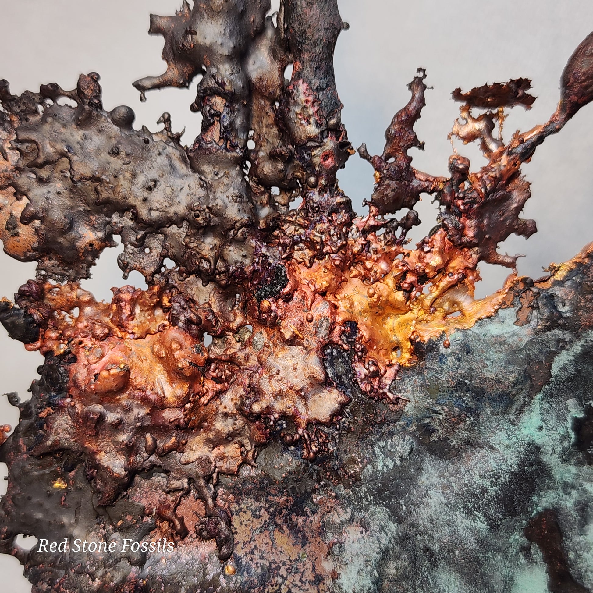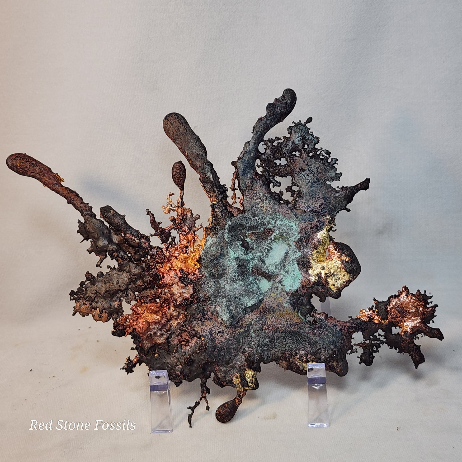 Splash Copper is a unique piece of art. It is pure and not painted! Look at the beautiful patina, the bright red, orange and yellow on both sides of this specimen!