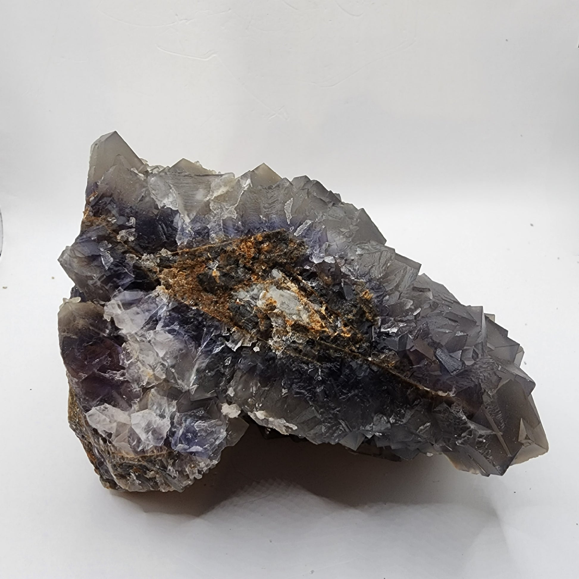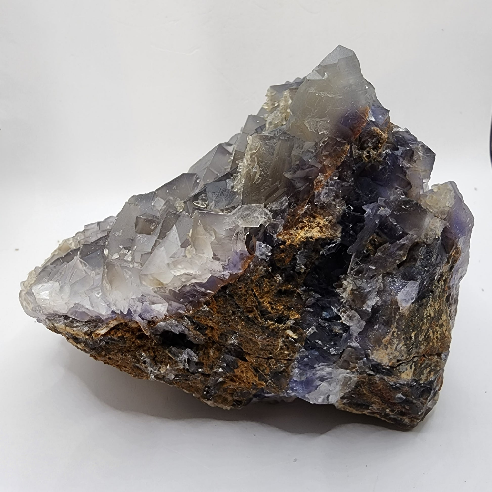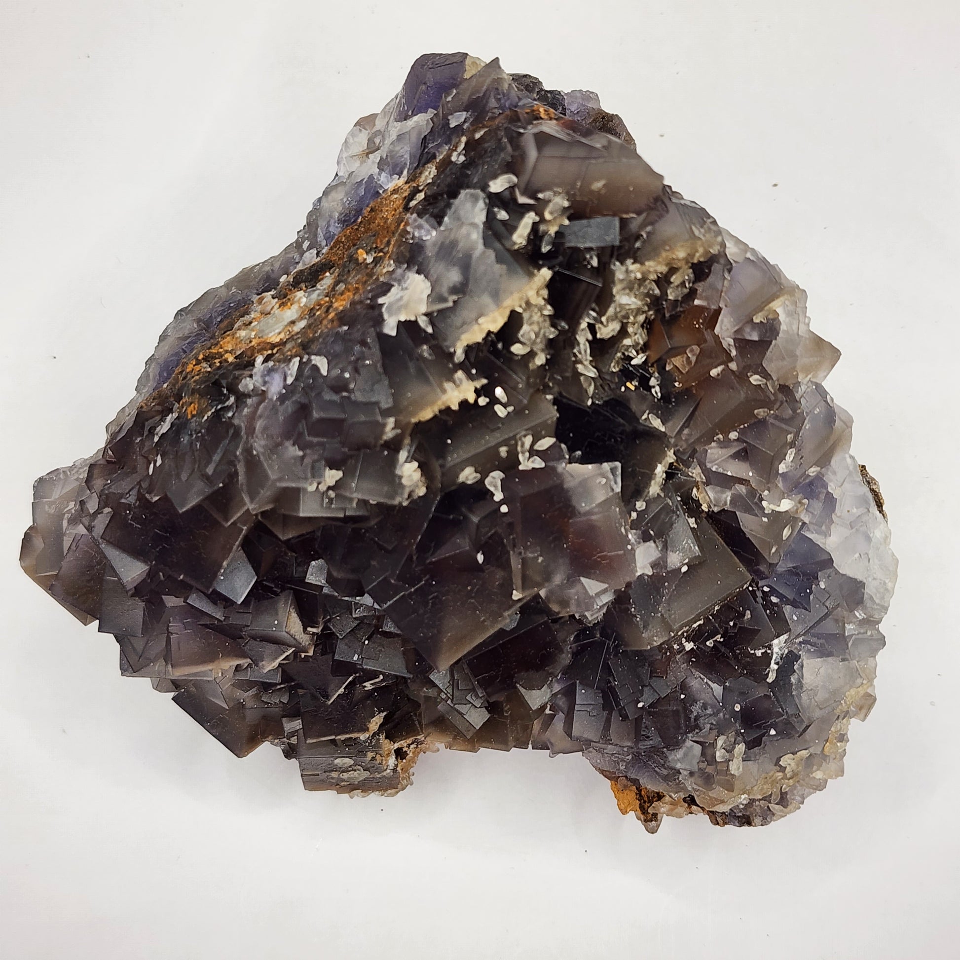 This is a gorgeous Fluorite specimen with calcite, just look at the deep purple cubes surrounding it.