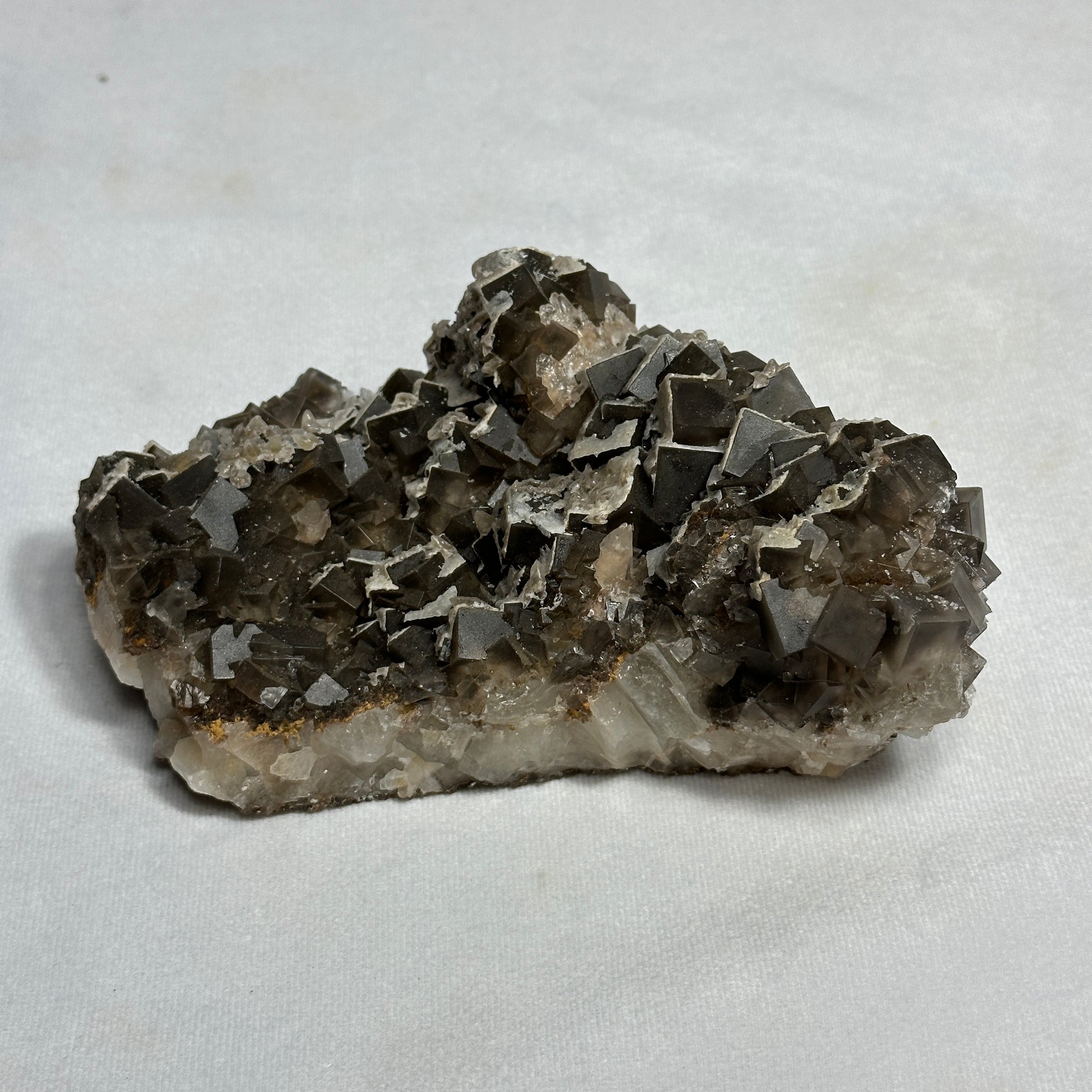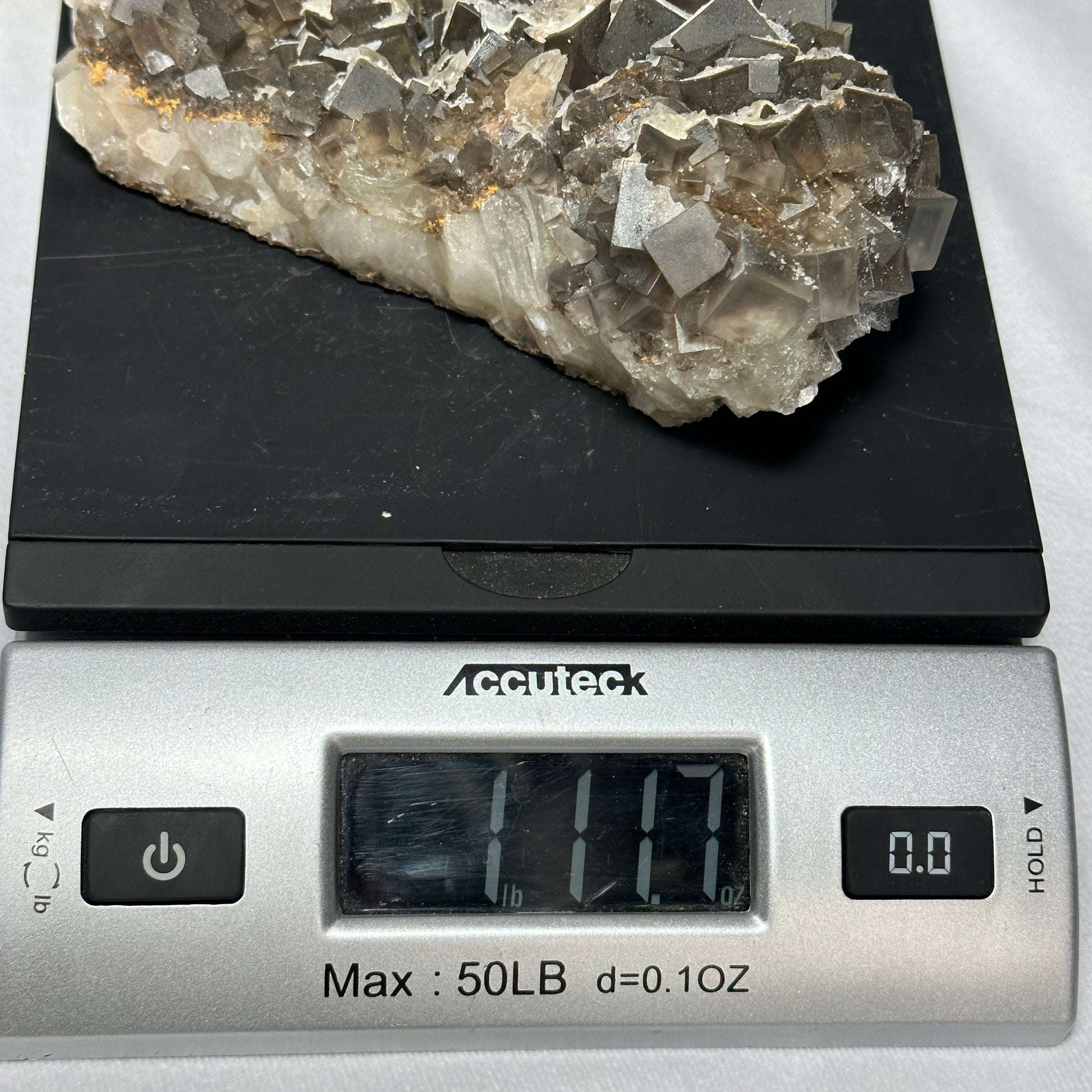 This Fluorite specimen is remarkable! It has many gray cubed layers as well as small Dogtooth Calcite around it!