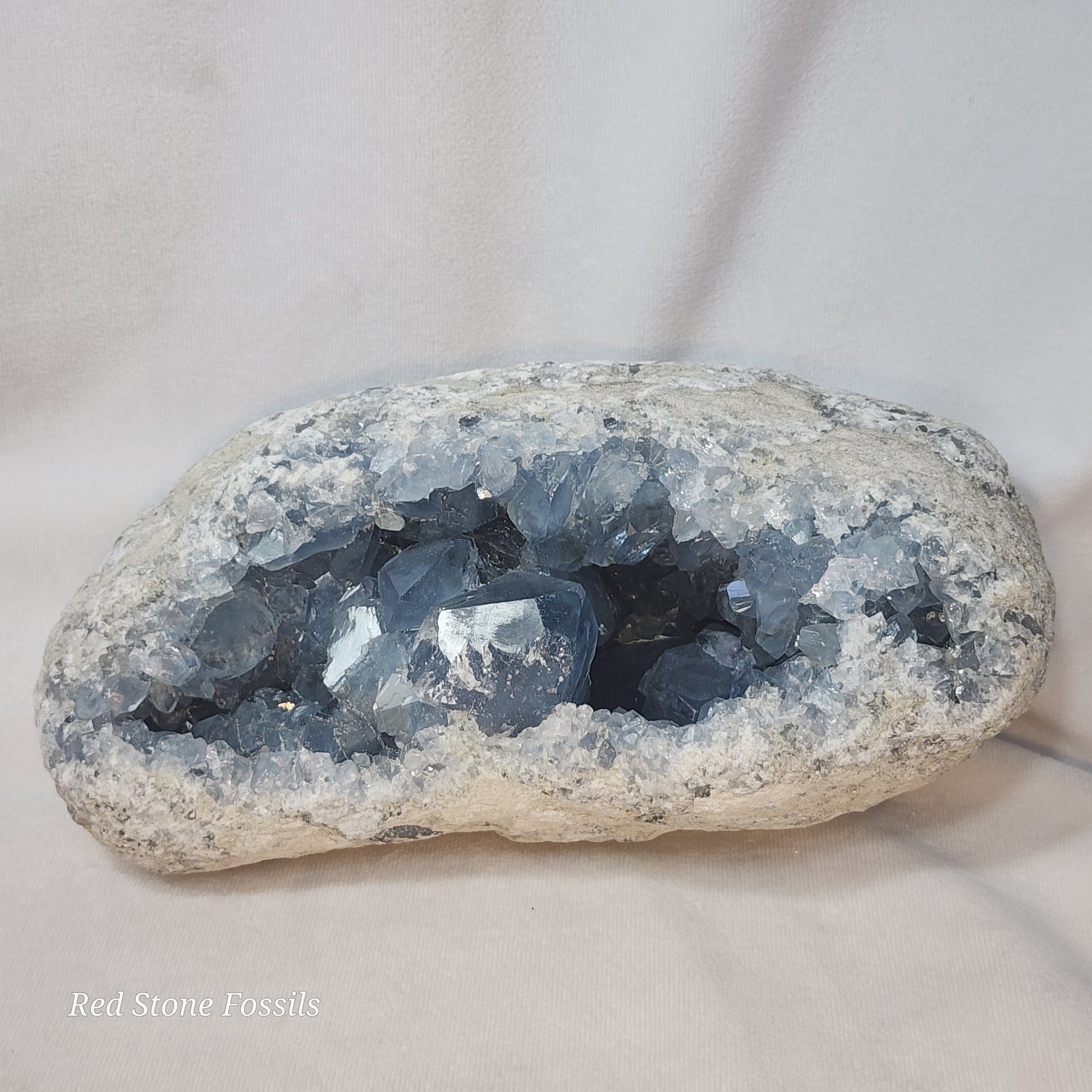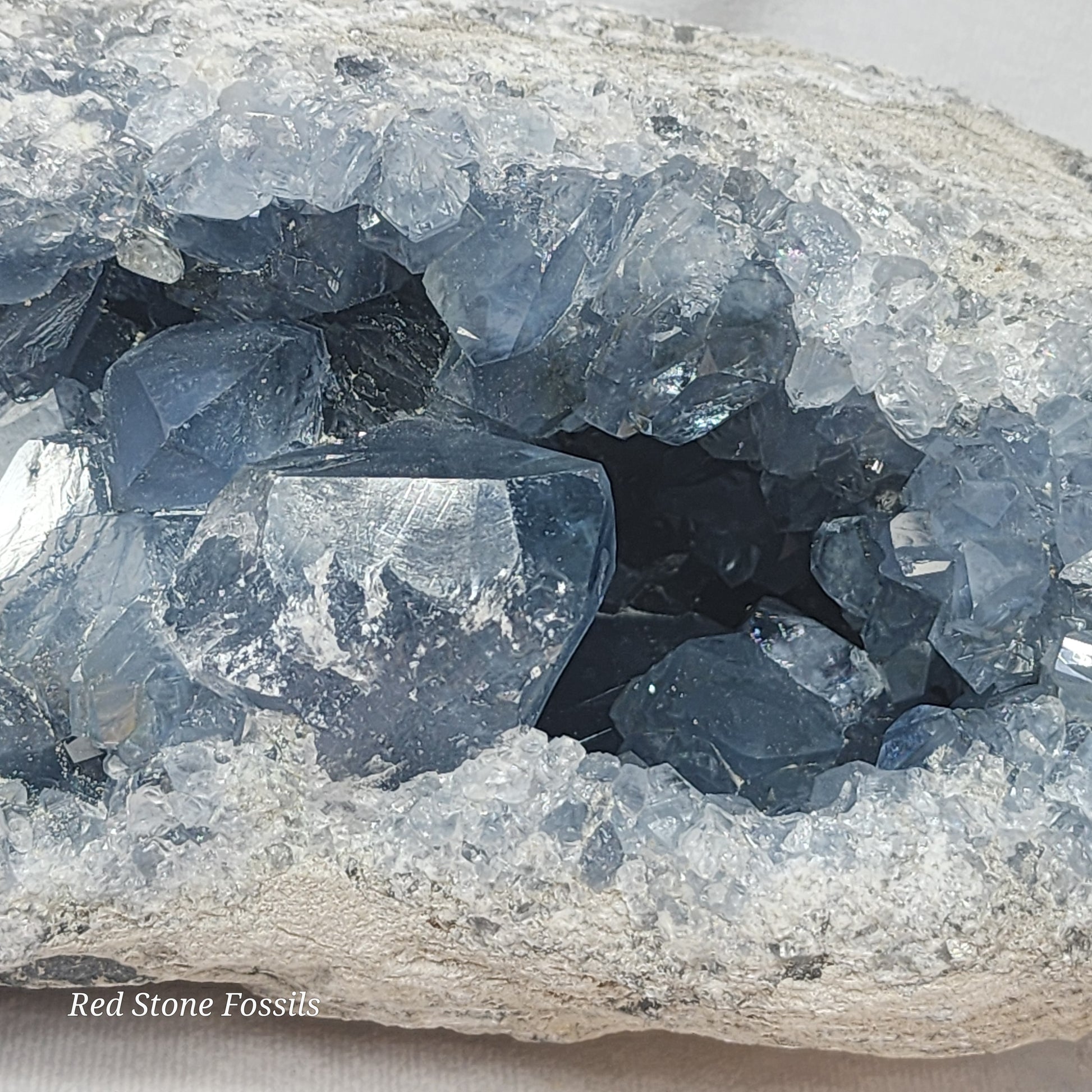 What a beautiful specimen of Blue Celestite! The sky blue crystals look almost like glass!
