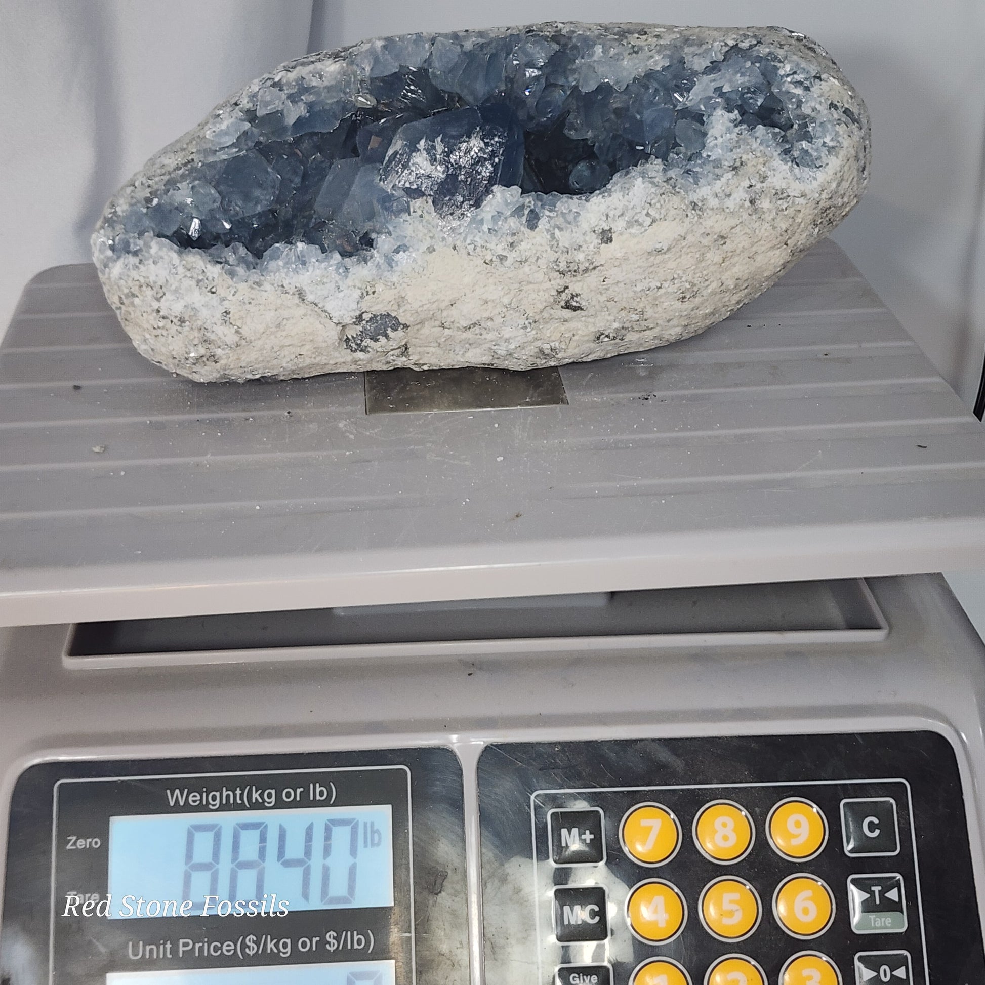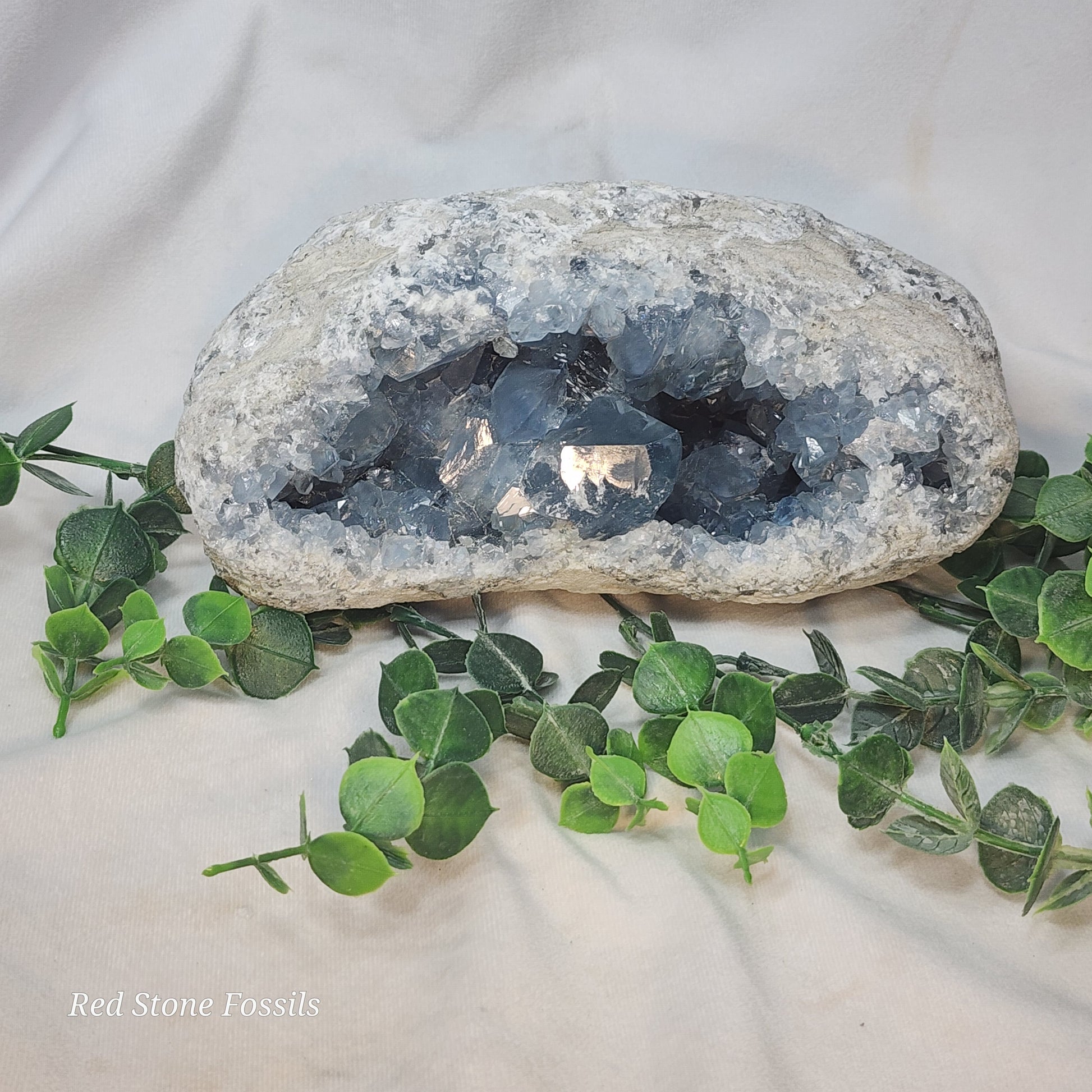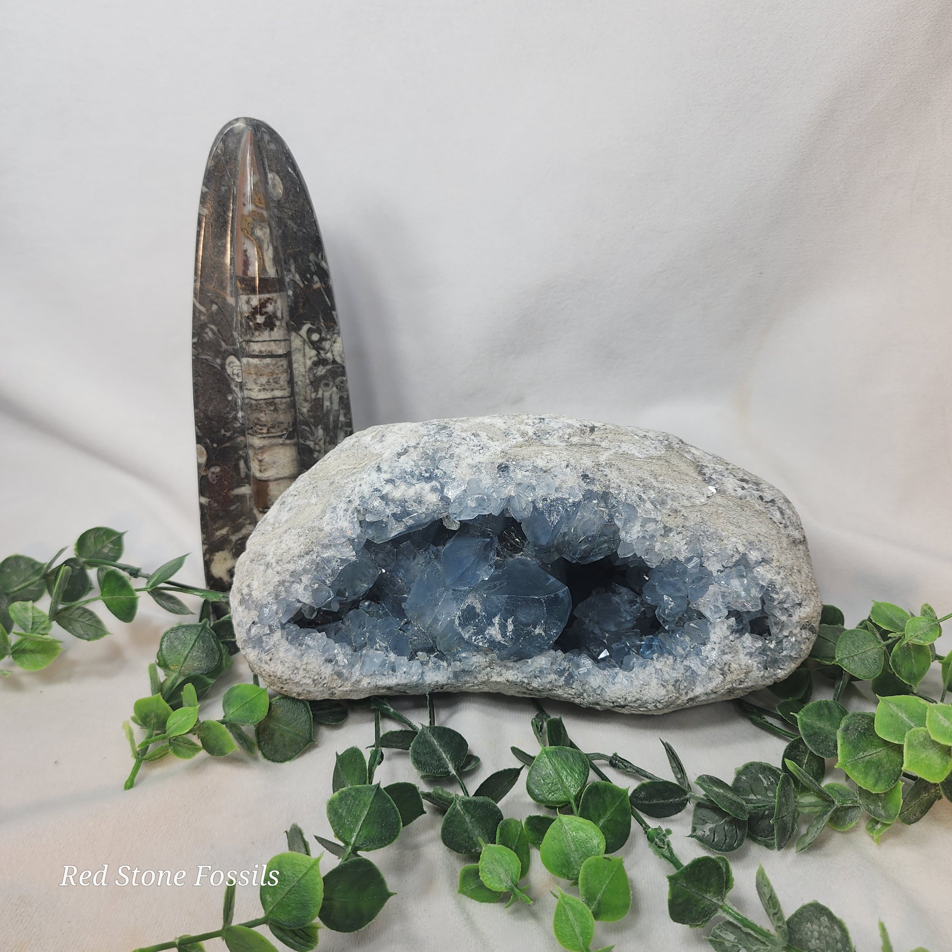 Although the Blue Celestite looks spectacular alone, it also pairs well with our Orthoceras Singles!