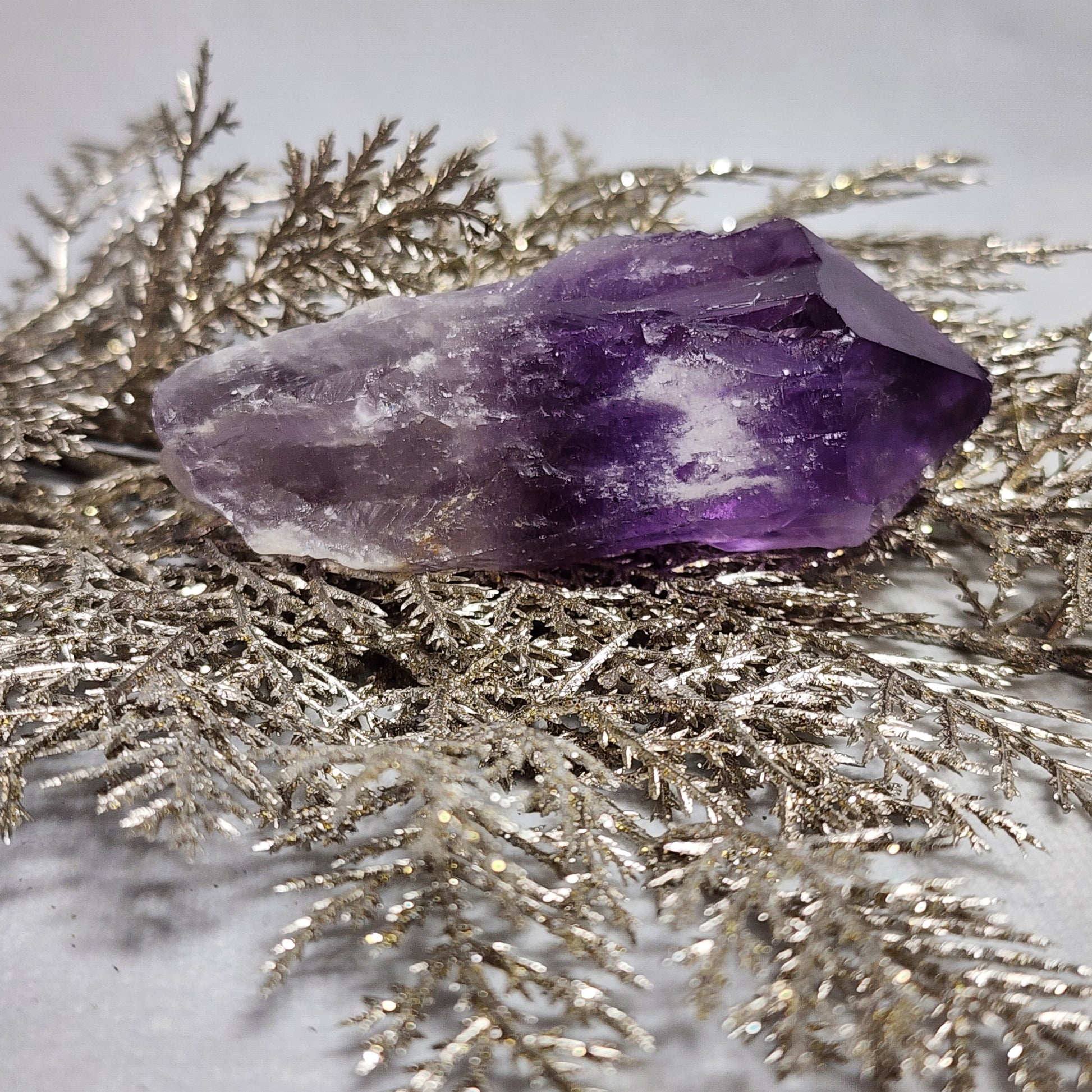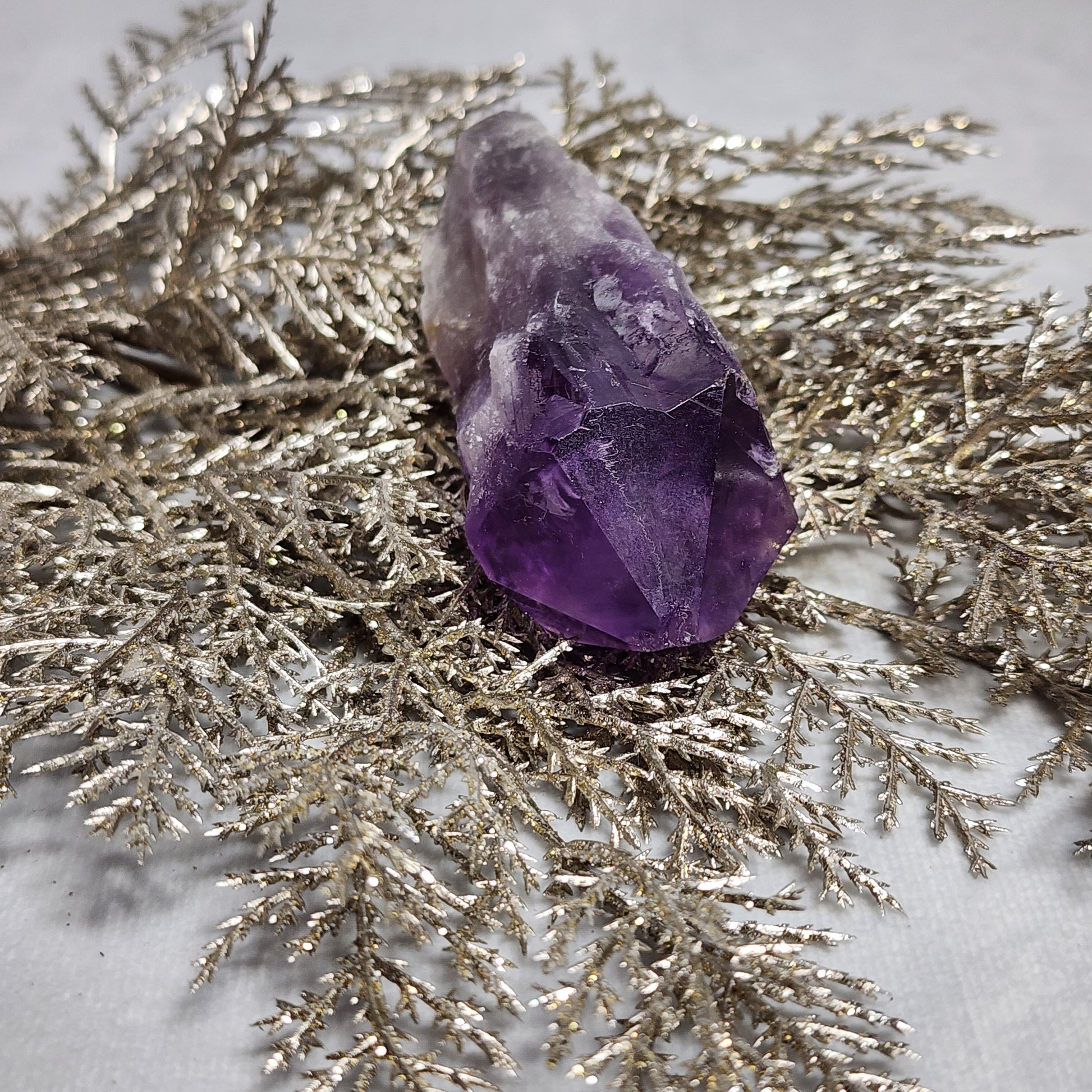 The Amethyst wand also pairs nicely with our Quartz clusters, Bumblebee Jasper Towers, or Calcite Spheres.