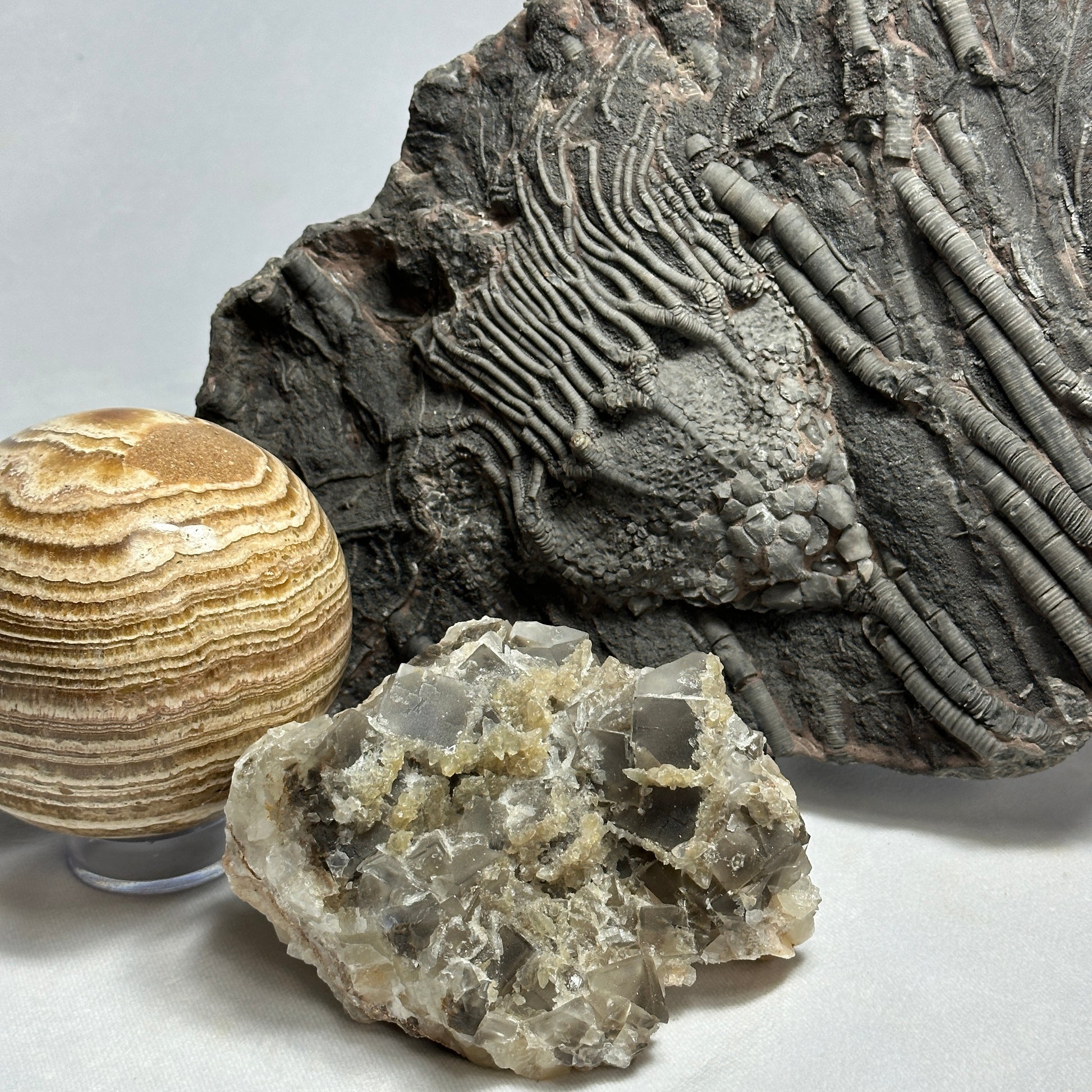 This piece pairs great with our Aragonite Sphere and Crinoid Plate, making a grand statement display in any room!