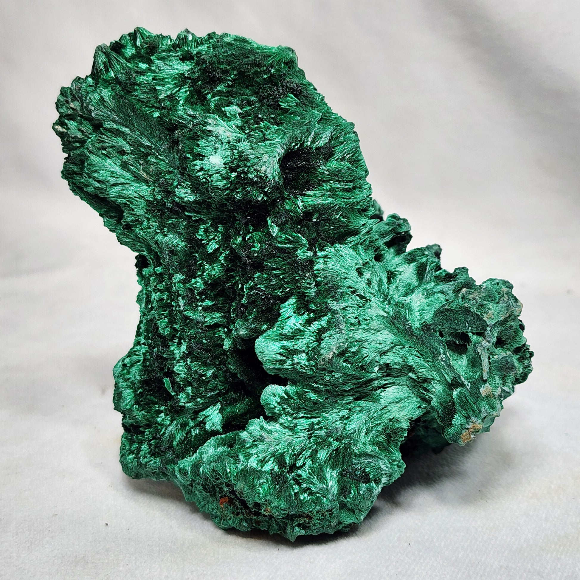 Gorgeous Fibrous Malachite! This specimen is raw and has a shiny, velvet appearance upon its natural grass green color!