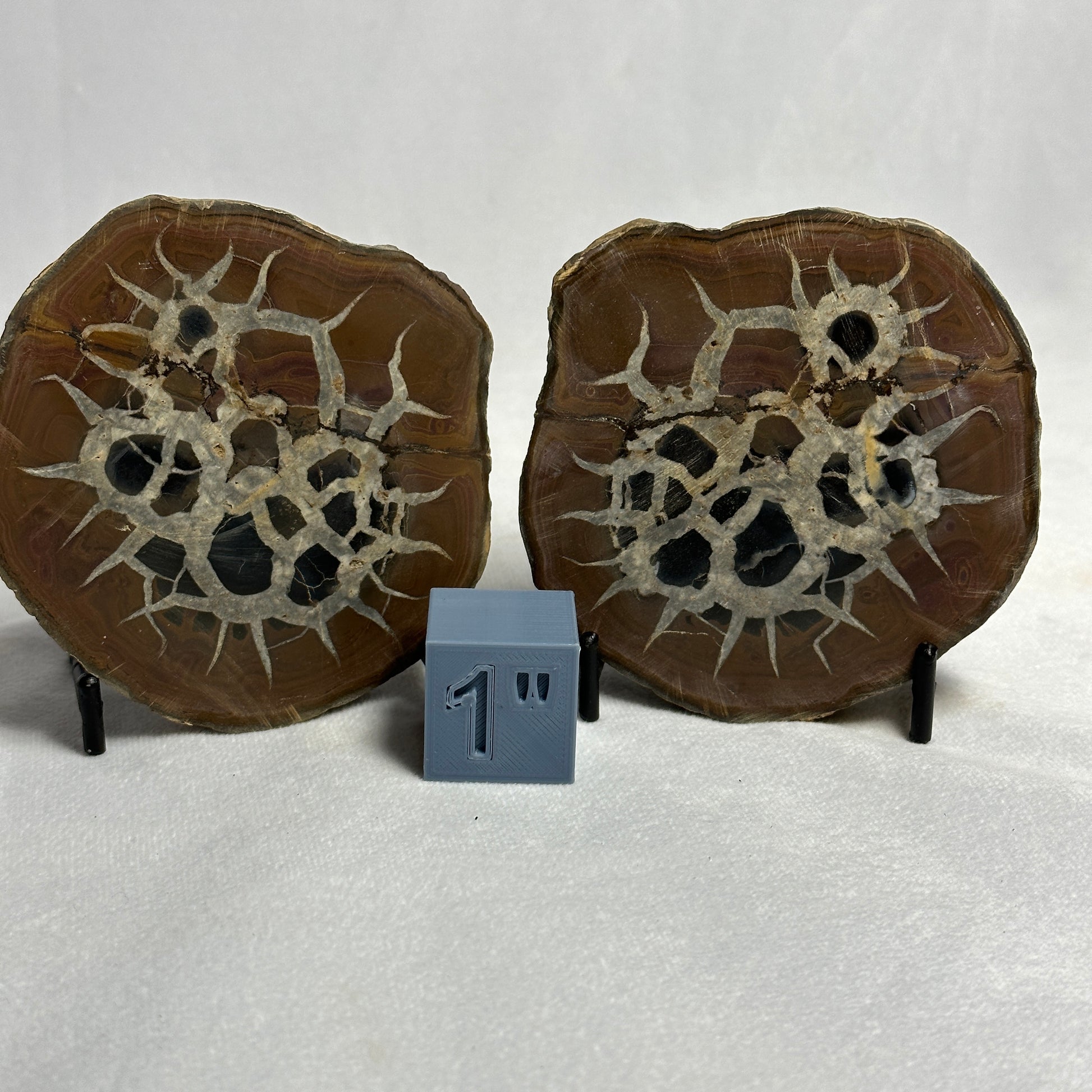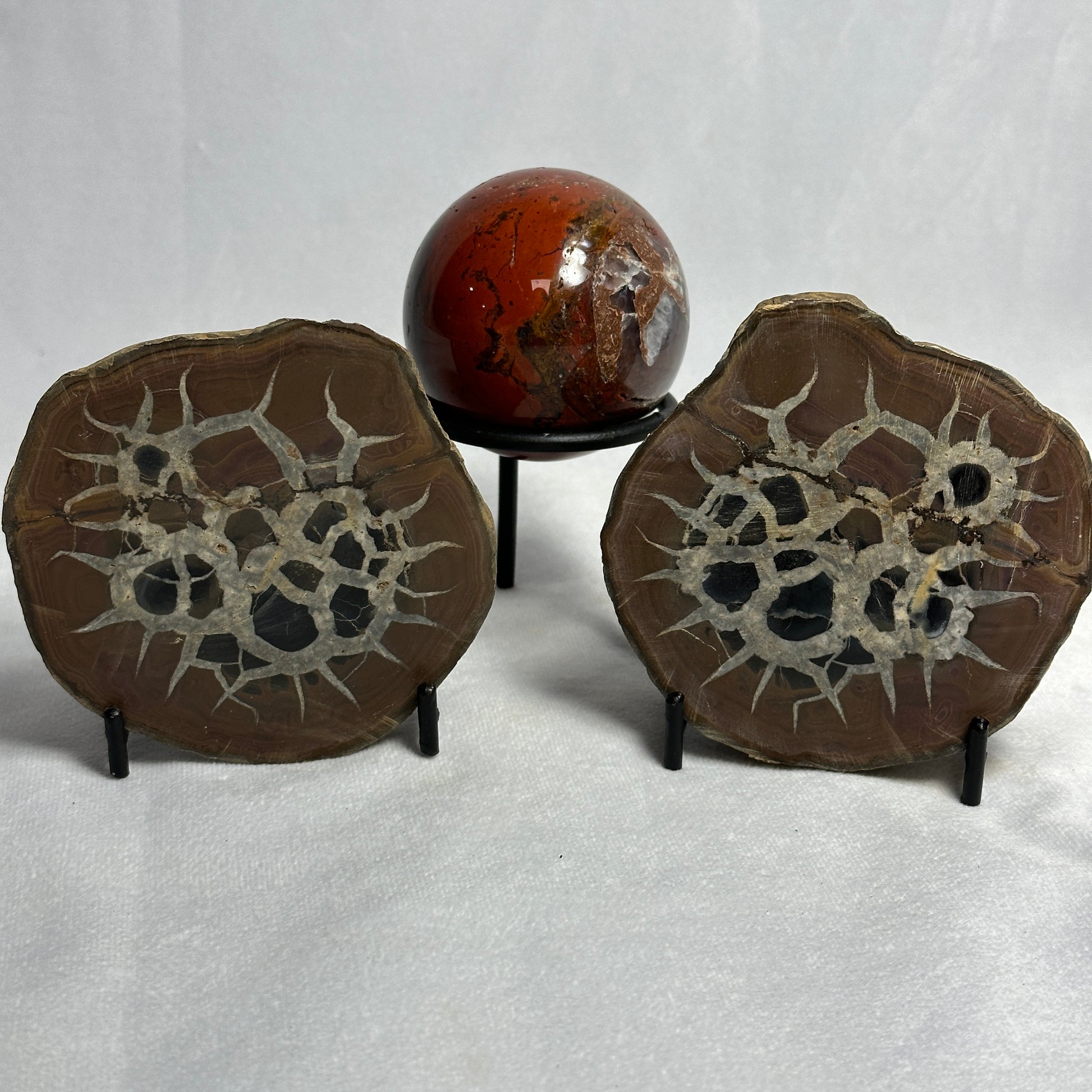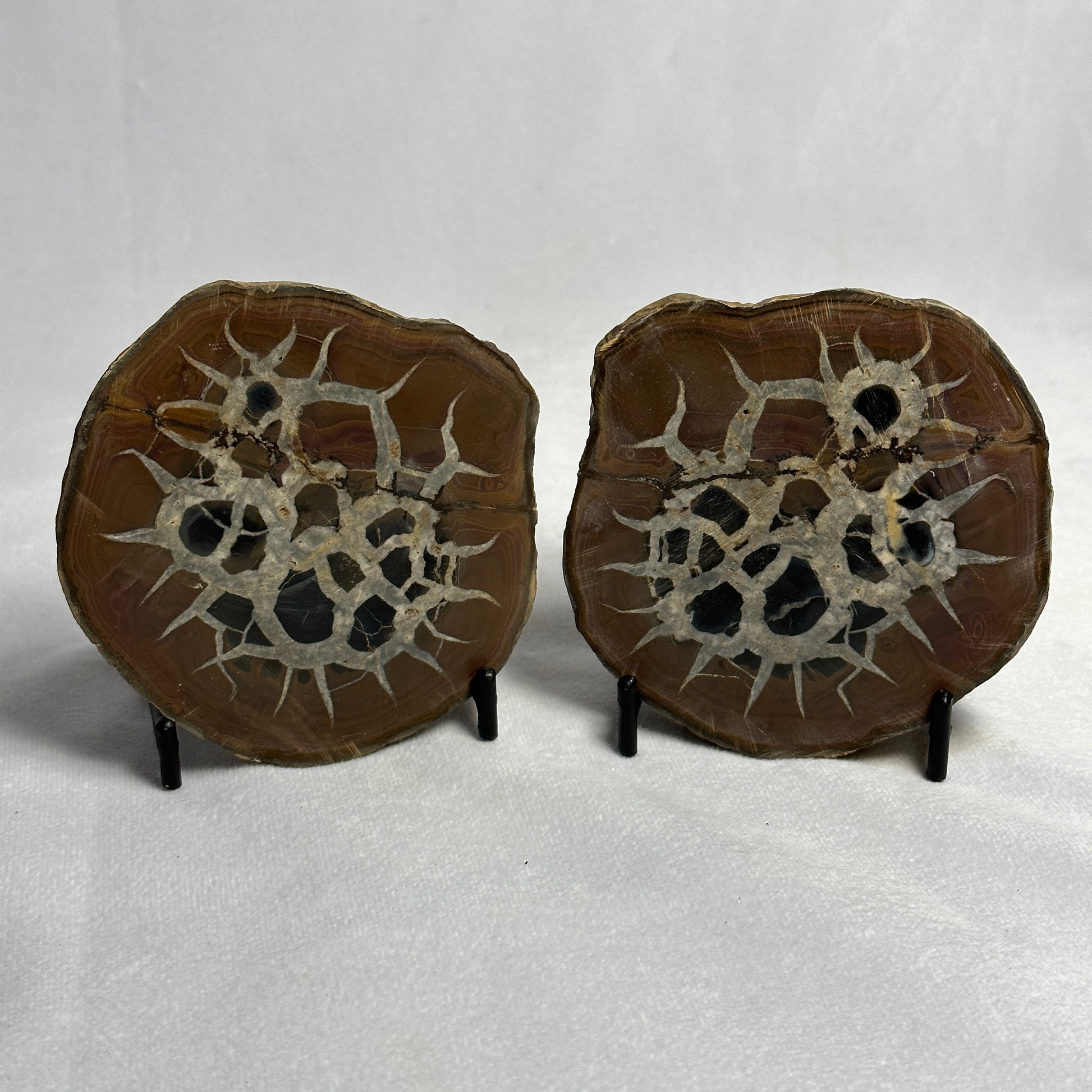 Split Polished Septarian Nodules make a very interesting display piece! Display them side by side for a great conversation starter! Pair with our Agate Spheres for a gorgeous display!