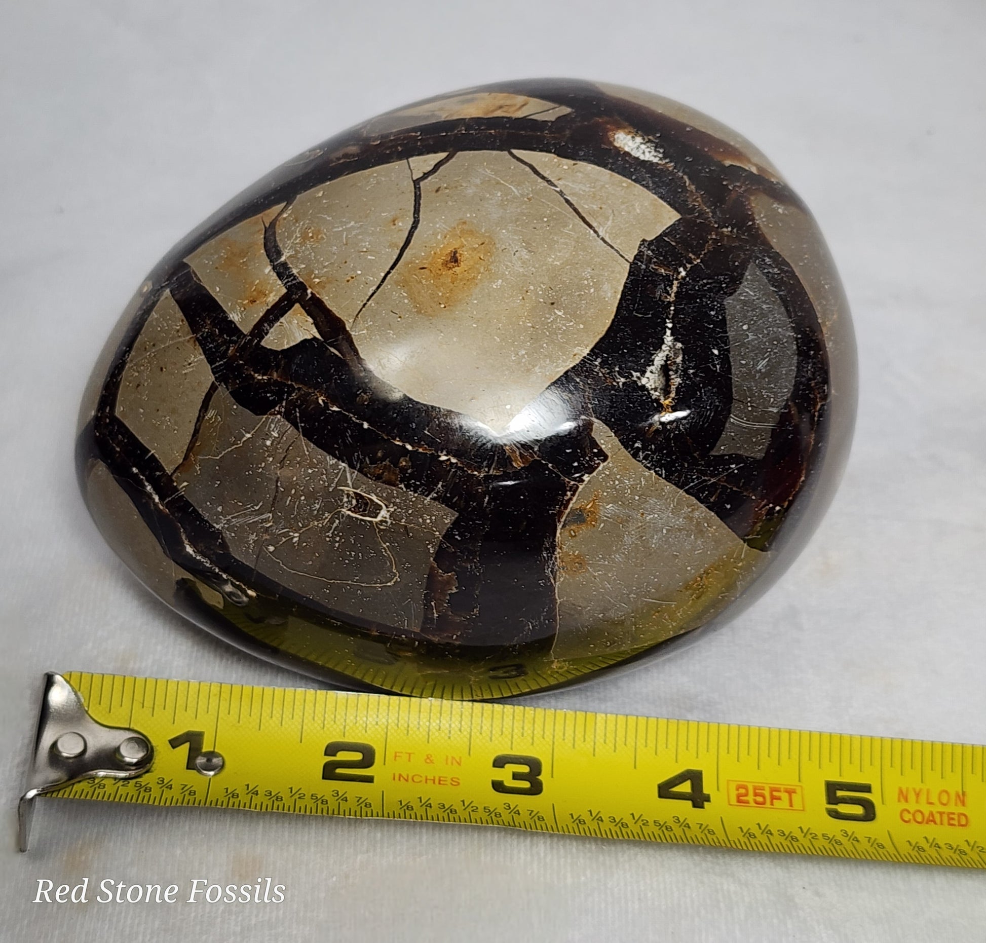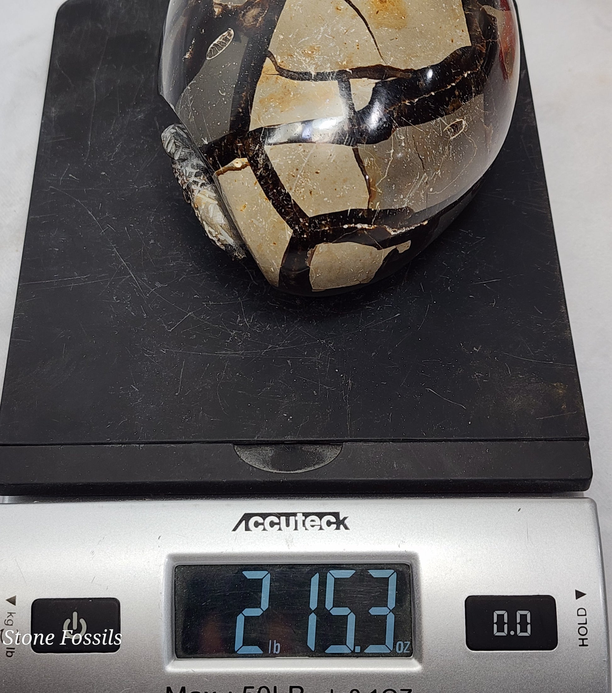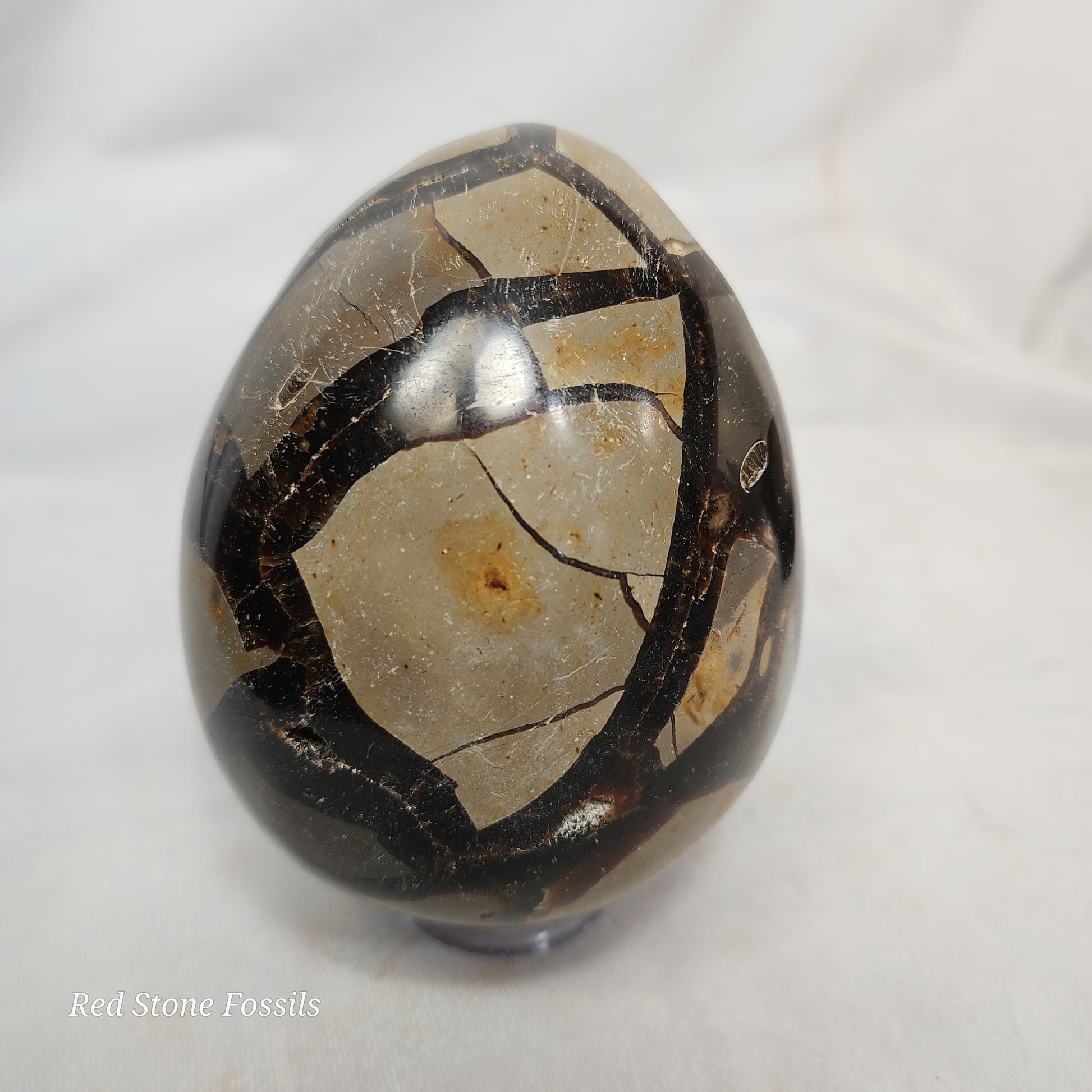 Fascinating hand carved Septarian Egg from Madagascar! Septarian eggs are Septarian nodules that have been carved and polished. The natural pattern of the Septarian looks like dragon skin, hence where the name "Dragon Egg" comes from.