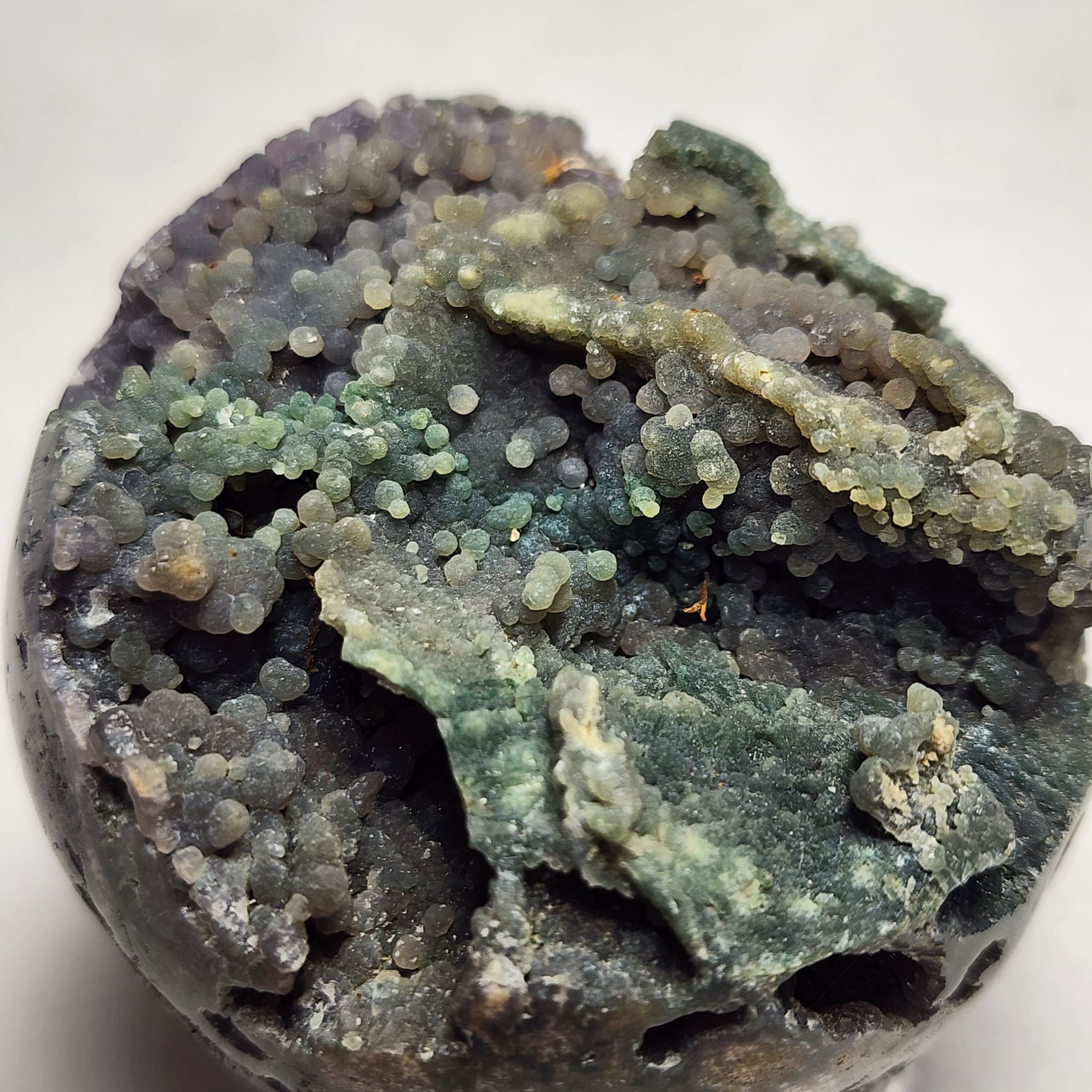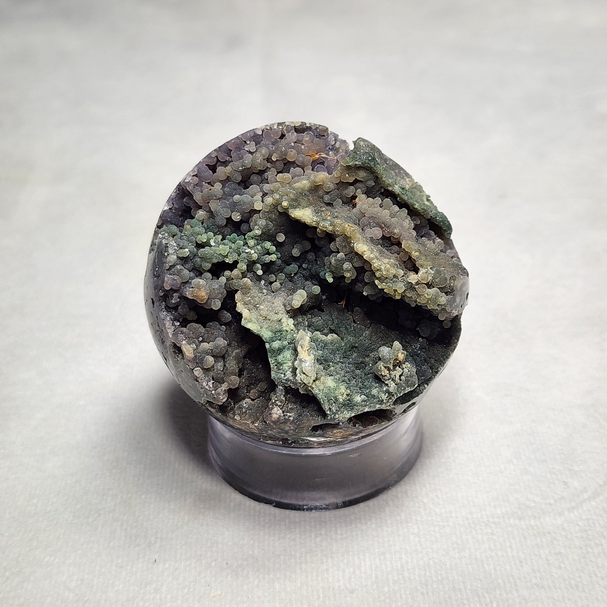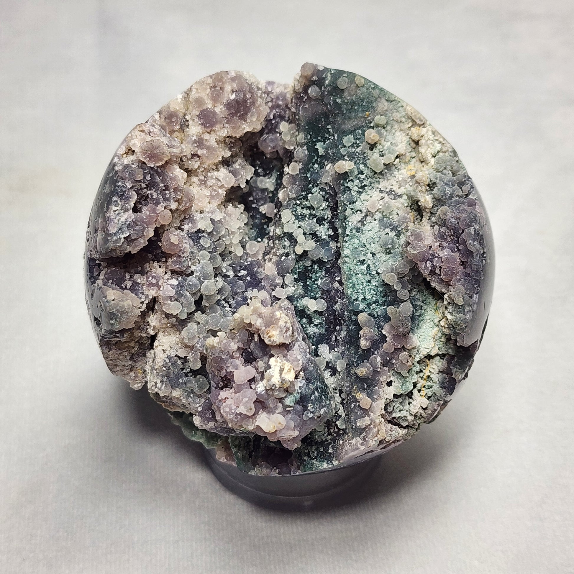 This specific Grape Agate Sphere has beautiful shades of purple and green all throughout!