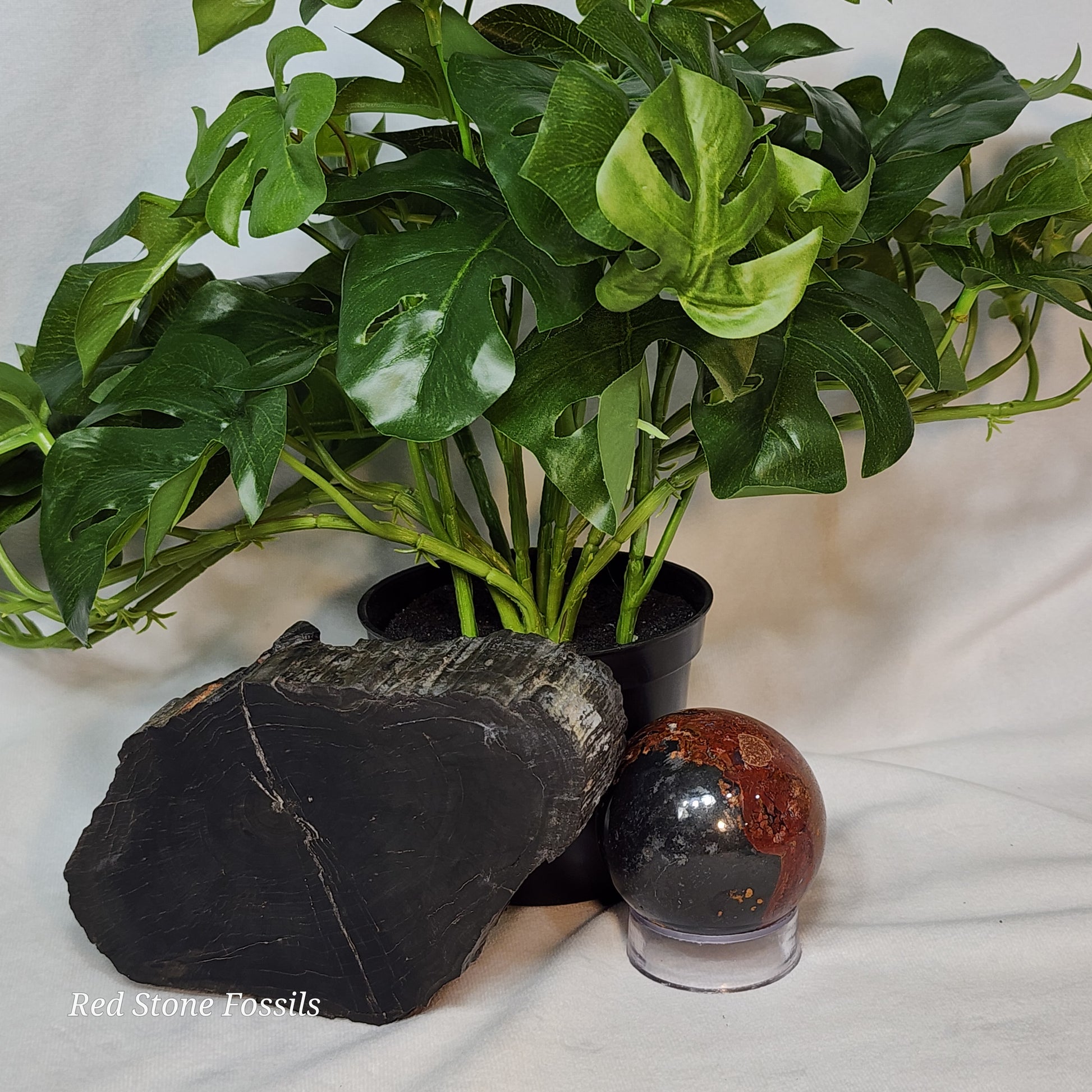 The size of this slab sits perfectly by itself or pair with some greenery and our Moss Agate Sphere for a breathtaking way to bring the stunning outdoors inside!