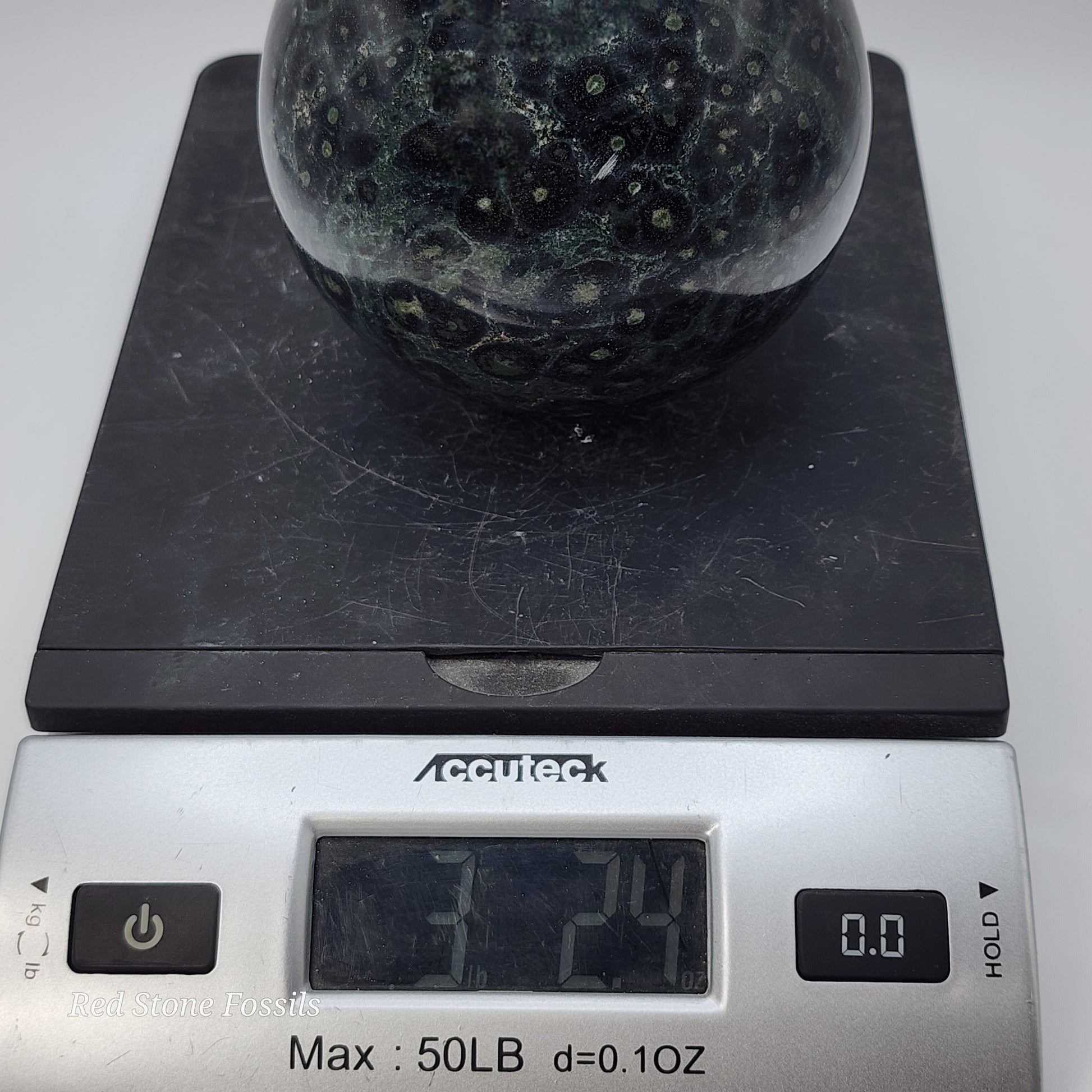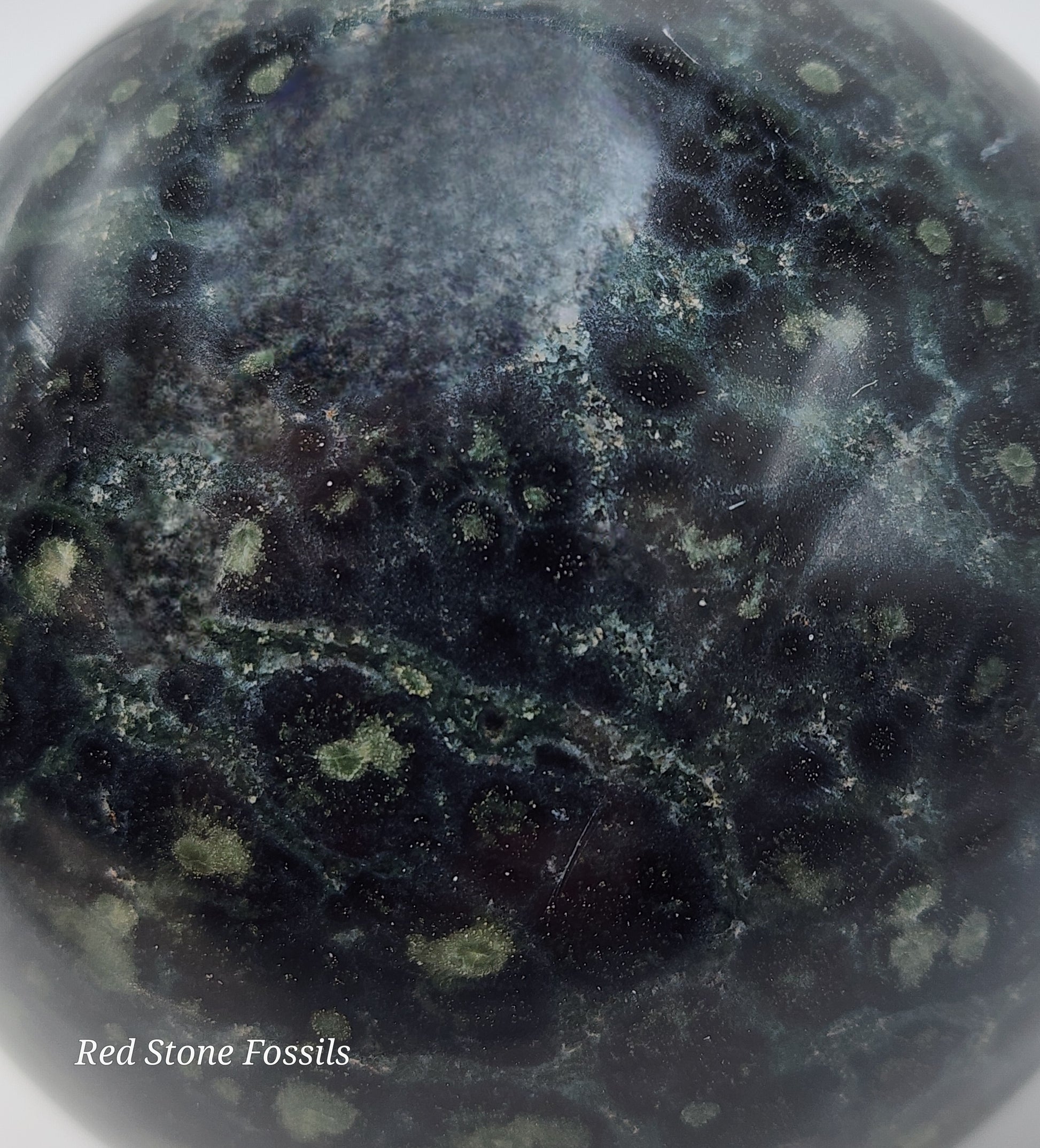 Kambaba Jasper is an amazing green volcanic stone that is found in Madagascar and has unique, irregularly shaped swirls of black and green all around it!