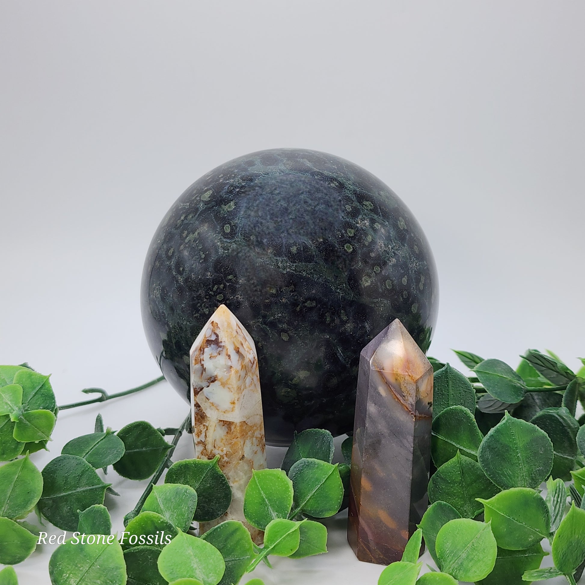 This particular specimen is a Kambaba Jasper Sphere that will fit perfectly on the desk or entry table! Pair with our towers for a great display!