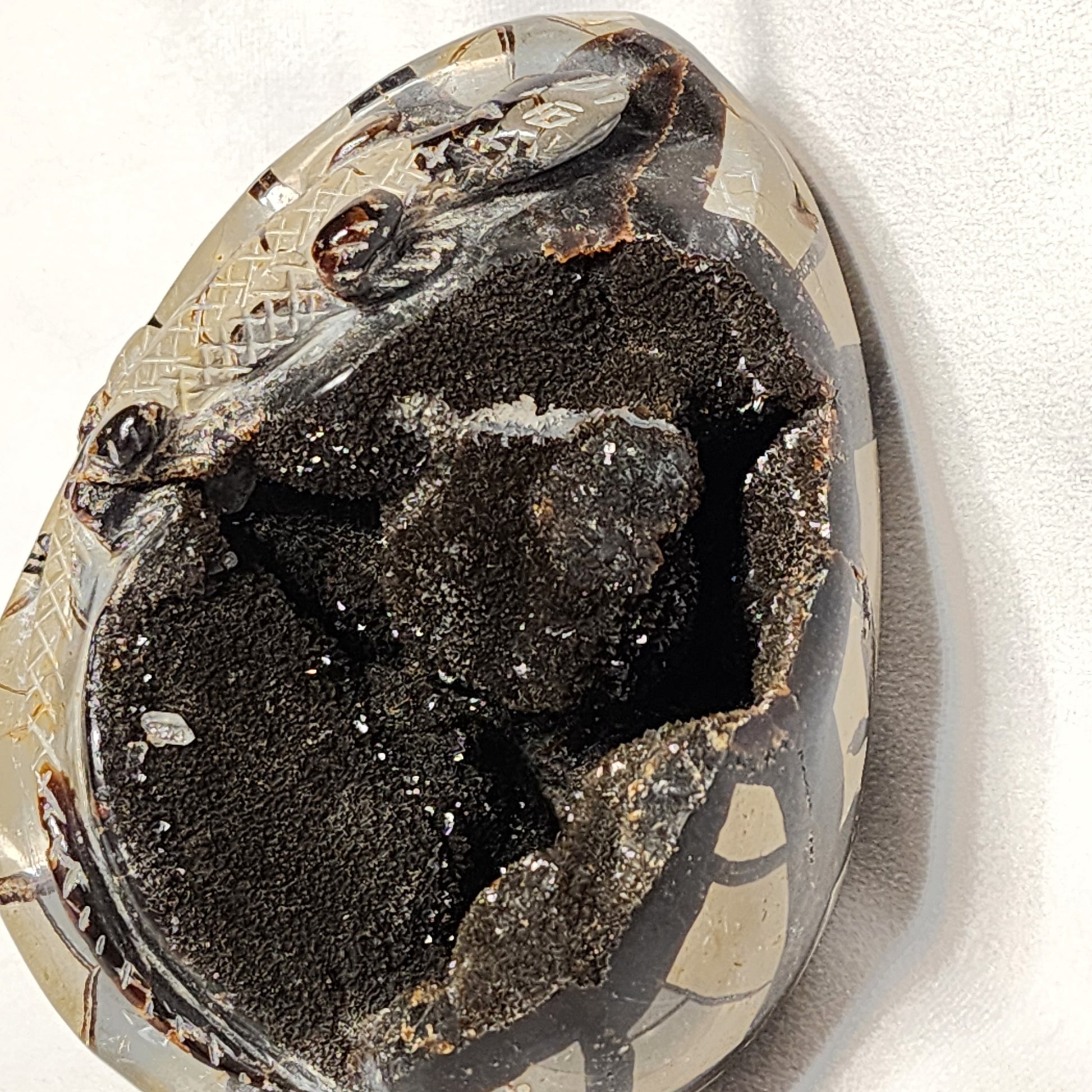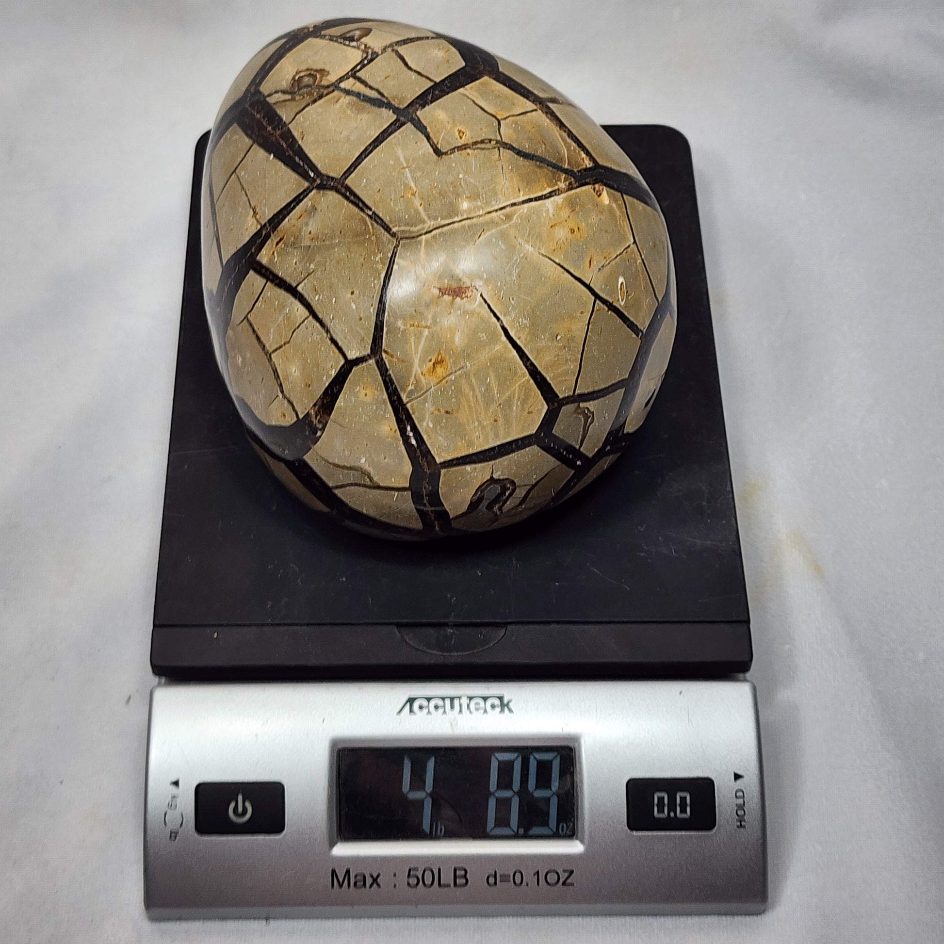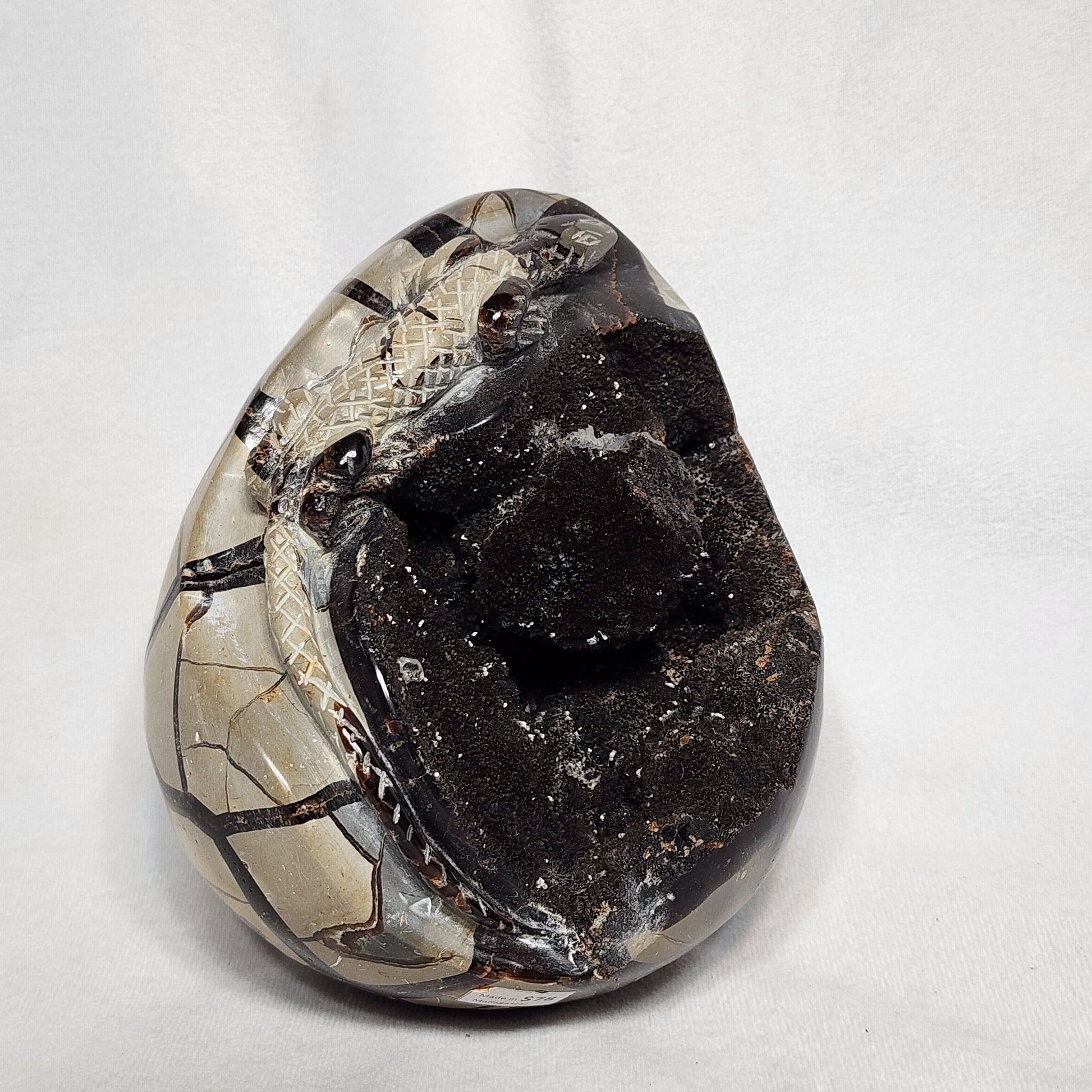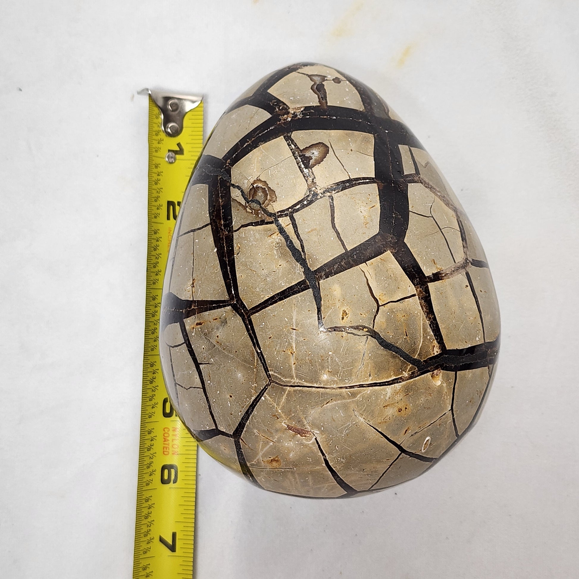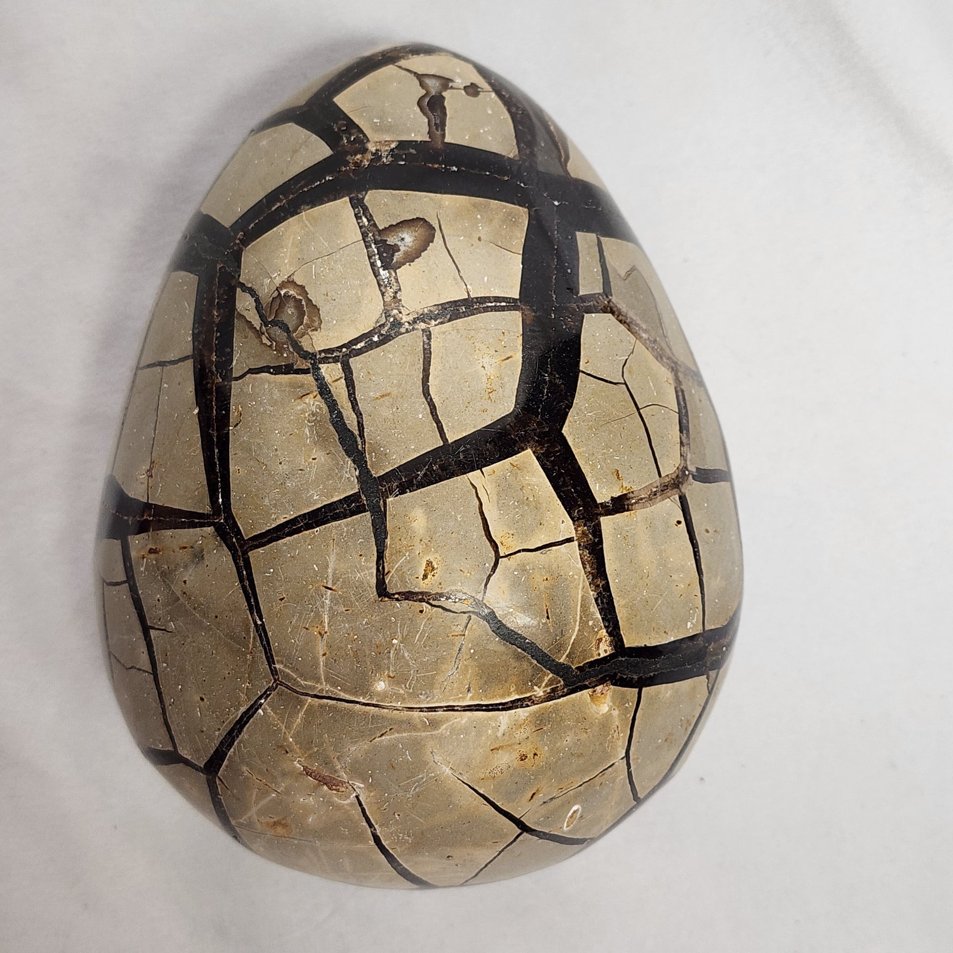 Fascinating hand carved Septarian Egg from Madagascar! Septarian eggs are Septarian nodules that have been carved and polished. The natural pattern of the Septarian looks like dragon skin, hence where the name "Dragon Egg" comes from.
